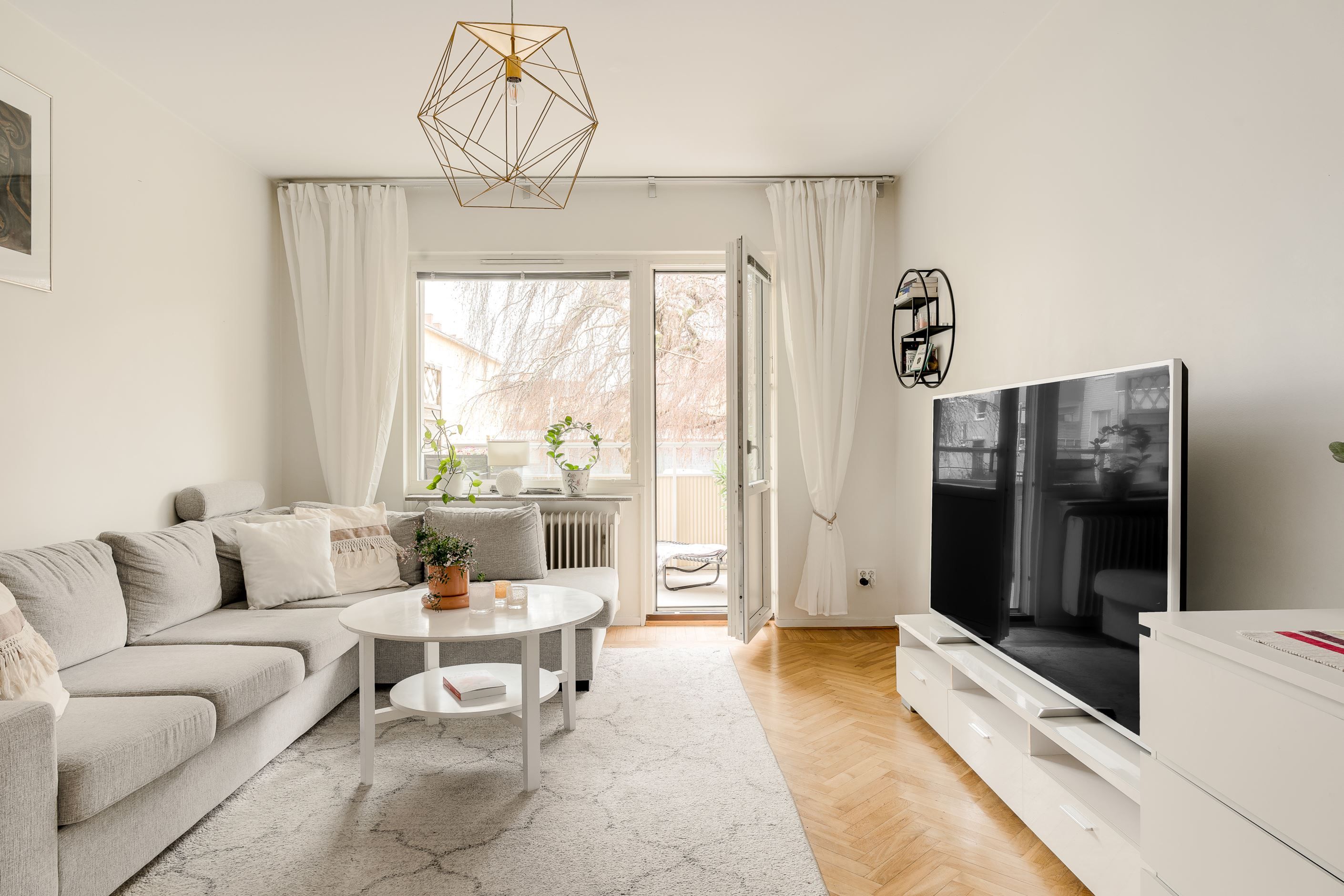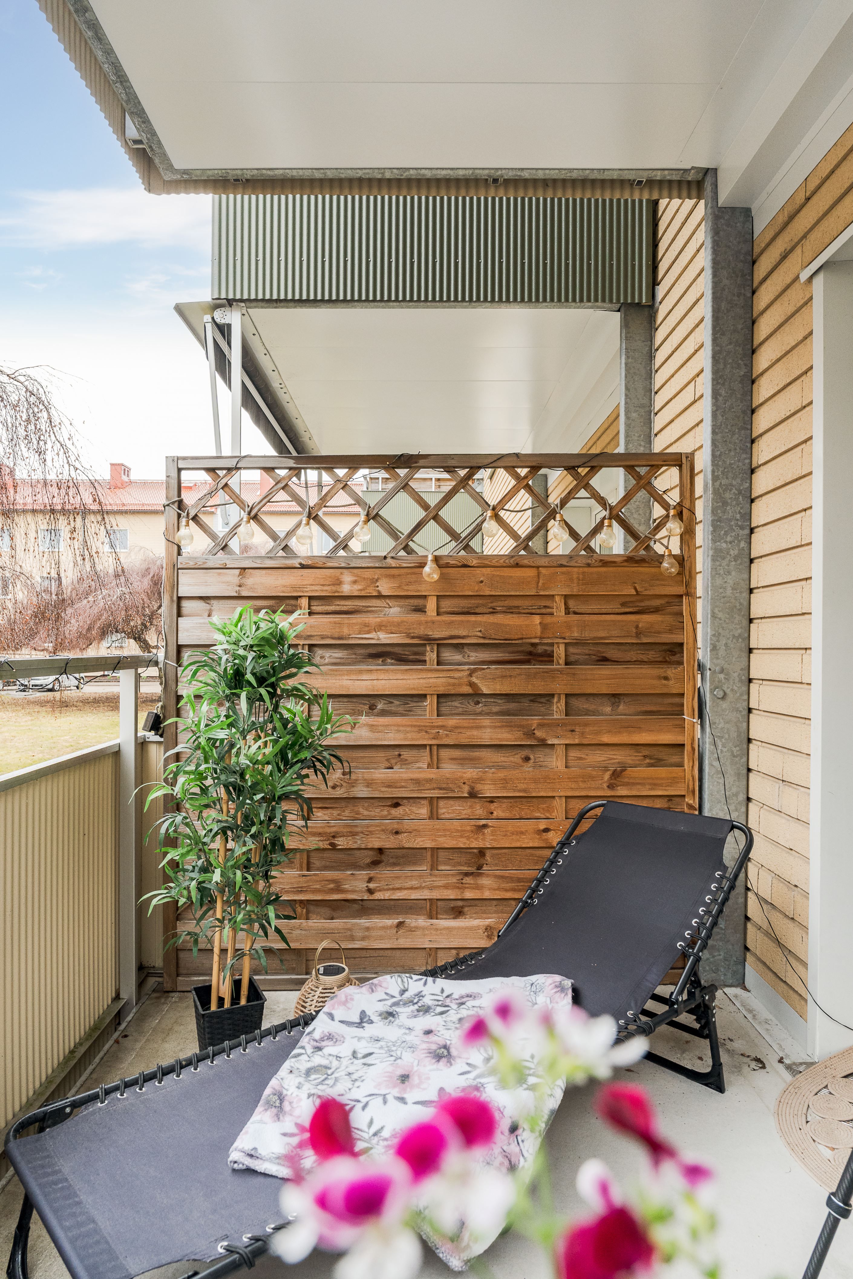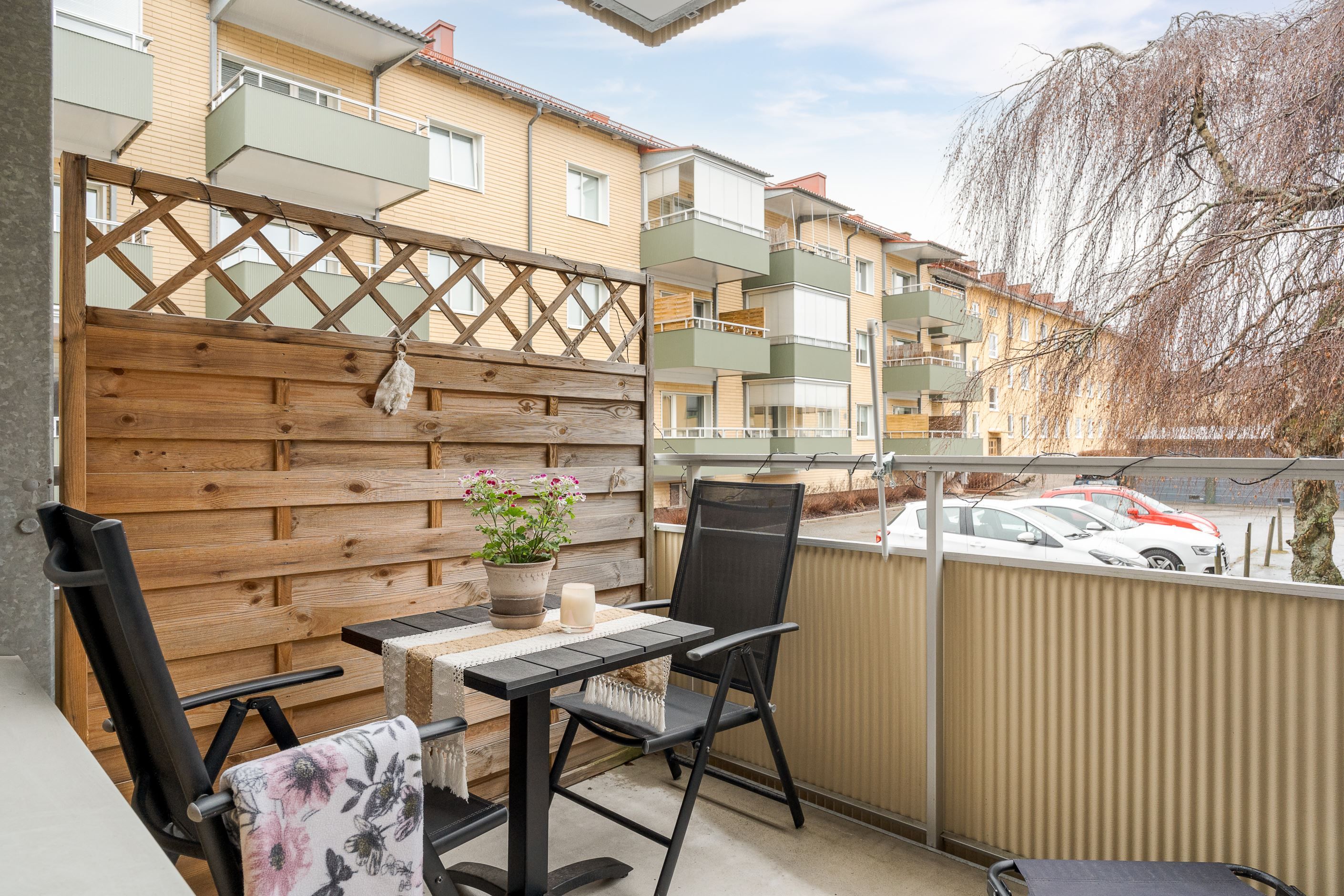 Badrummet är fräscht och funktionellt, utrustat med WC, dusch och en ny tvättmaskin. Sovrummet erbjuder en rofylld miljö med rymliga garderober, medan det ljusa vardagsrummet med vackert parkettgolv blir hemmets självklara samlingspunkt. Härifrån når du även den rymliga balkongen med plats för både loungedel och bord – en perfekt plats att njuta av långa, härliga dagar.