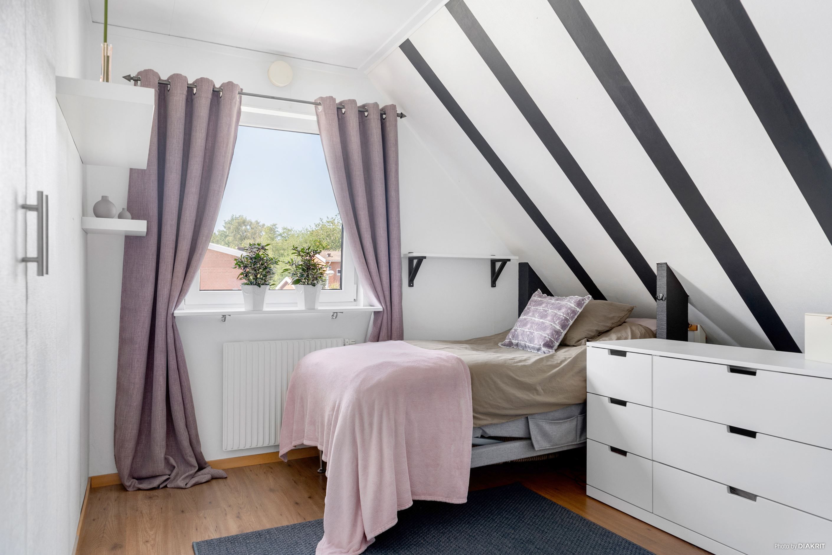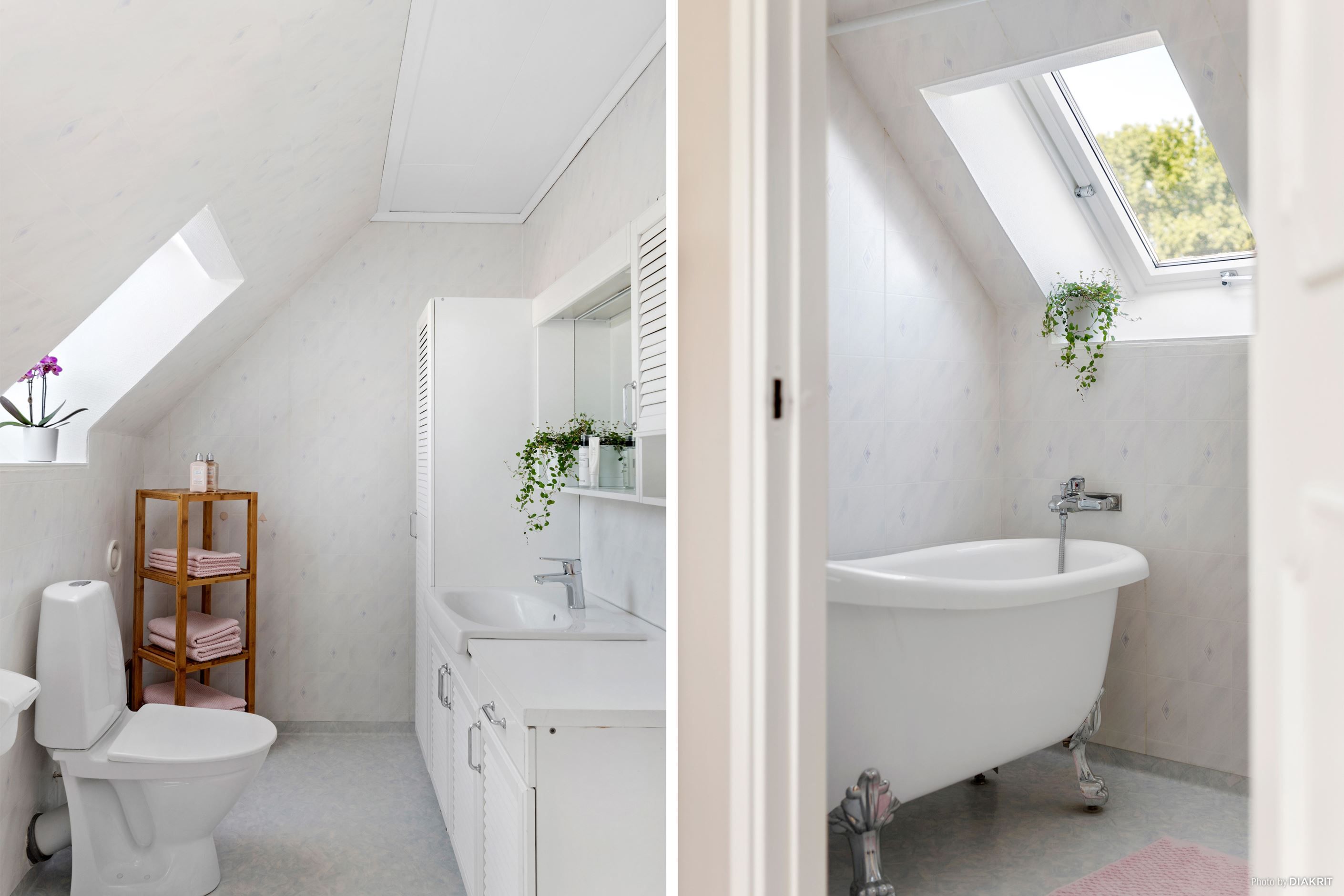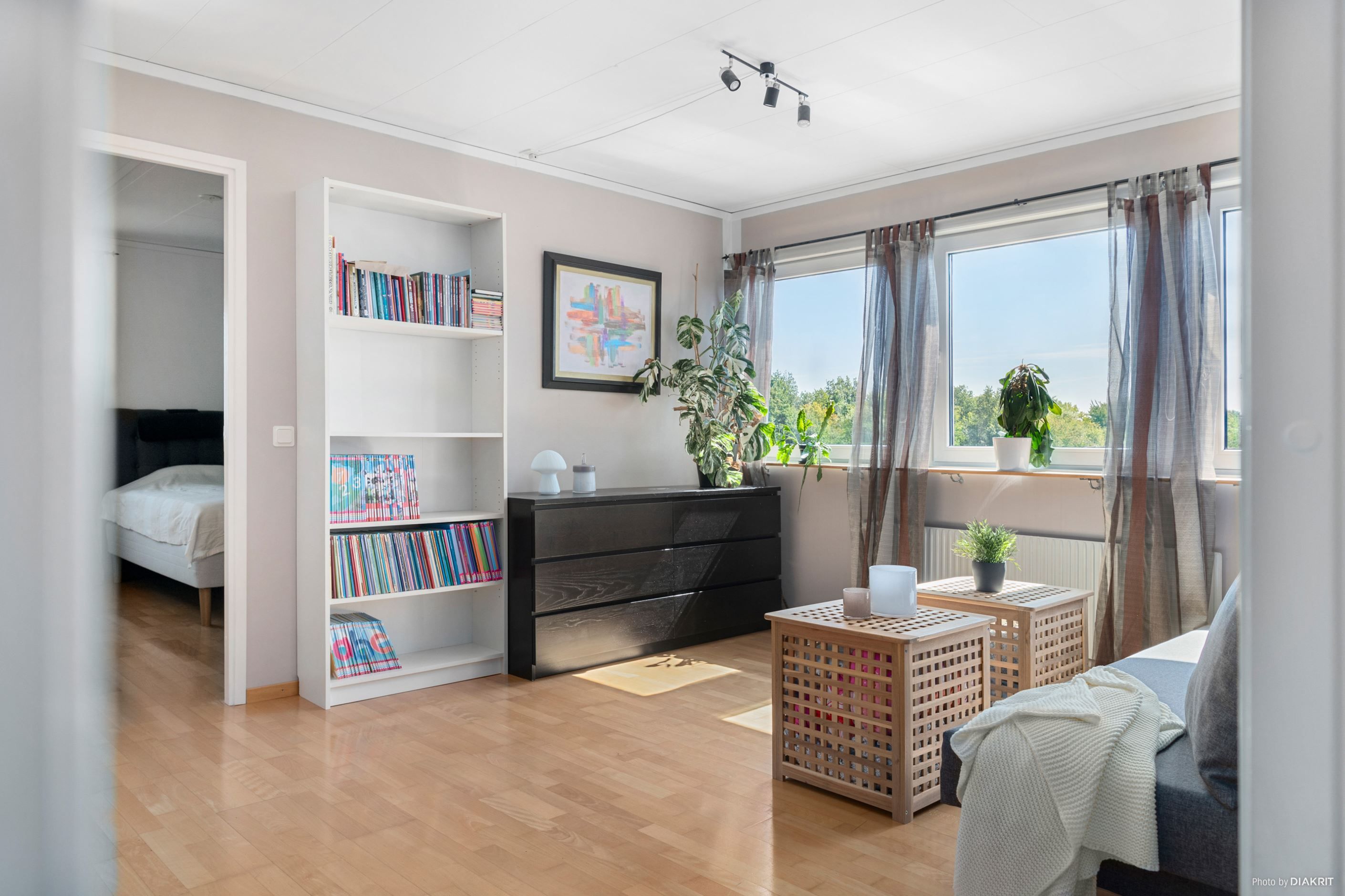 Trappan i hallen leder oss till det övre våningsplanet, som naturligt blir den mer privata delen av bostaden. Här möts man av ett allrum som kan användas som ett andra vardagsrum – eller varför inte en yta där de yngre kan härja fritt? Här finns även två mindre sovrum samt ett större sovrum, perfekt för familjen som vill ha alla samlade på samma våningsplan. Från allrummet når man även ytterligare ett komplett badrum, utrustat med badkar.