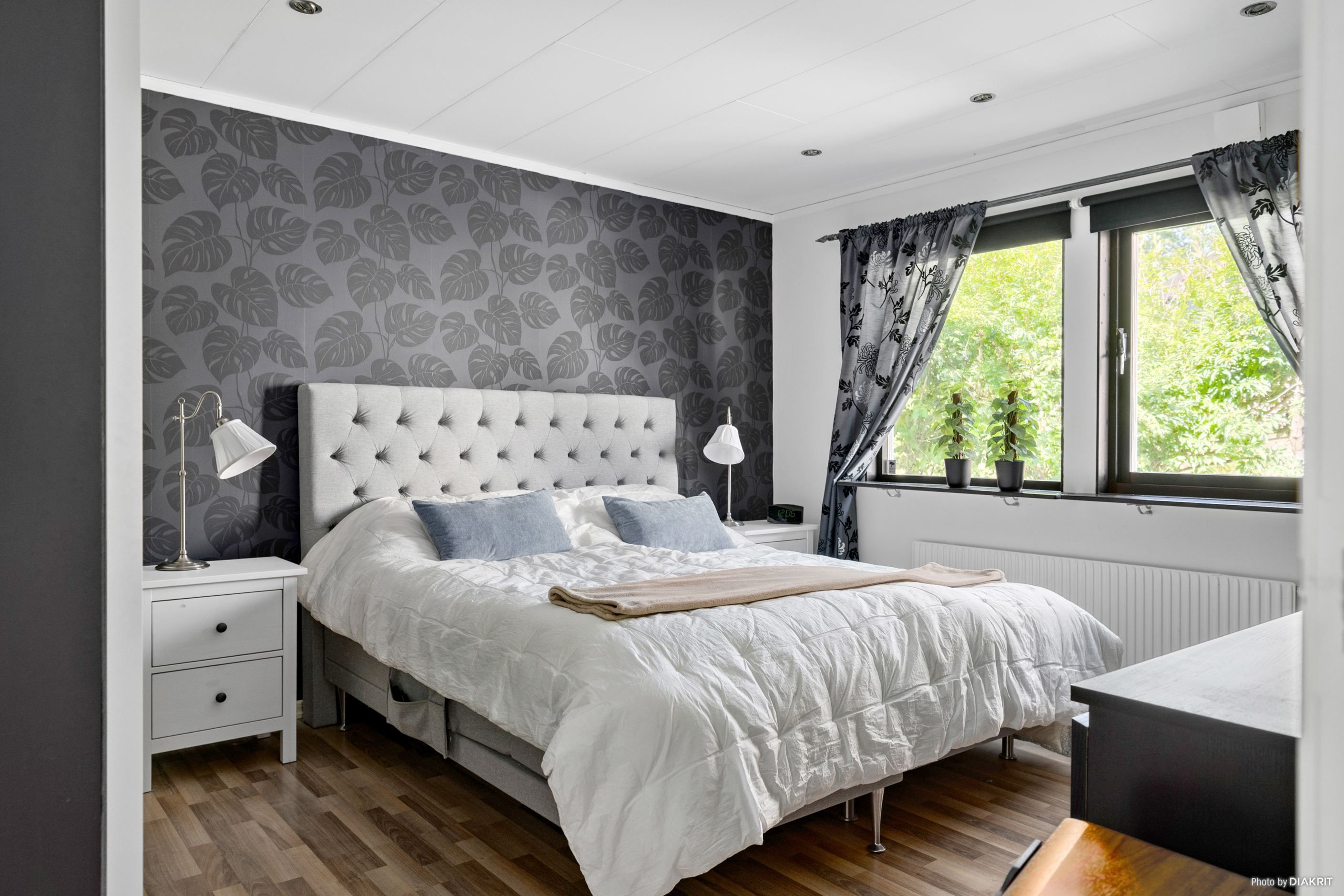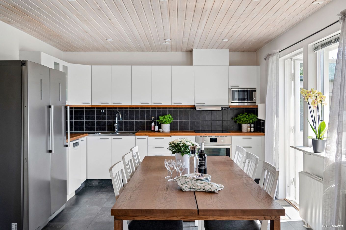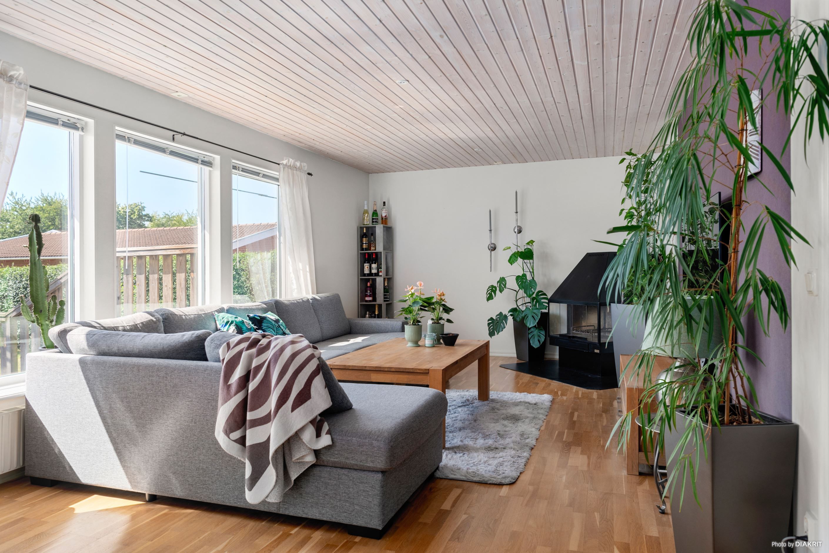 Köket och matplatsen knyts på ett modernt sätt samman med vardagsrummet och skapar en luftig och öppen planlösning i husets sociala ytor. Under årets kalla månader tänder man upp en brasa i kaminen och äter goda middagar tillsammans för att sedan mysa framför en härlig film i soffan. Entréplanet bjuder även på ett helkaklat badrum med dusch samt ett master bedroom.