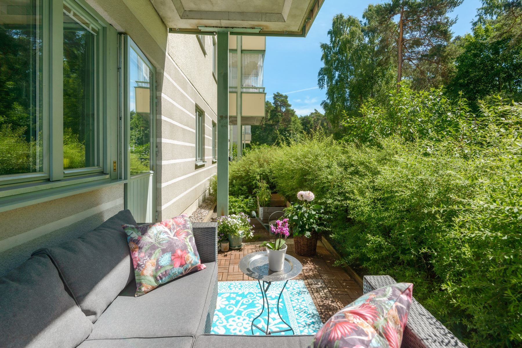 - Två soliga uteplatser i ostört och insynsskyddat läge
