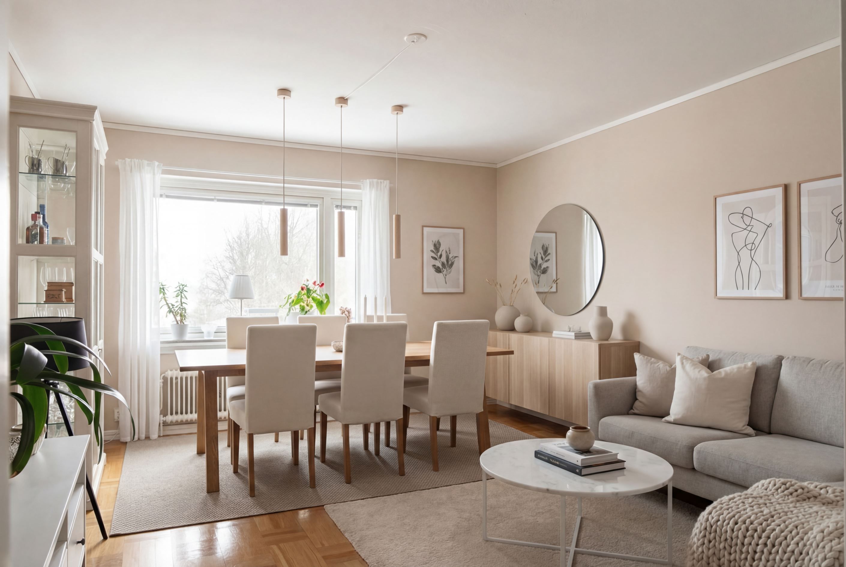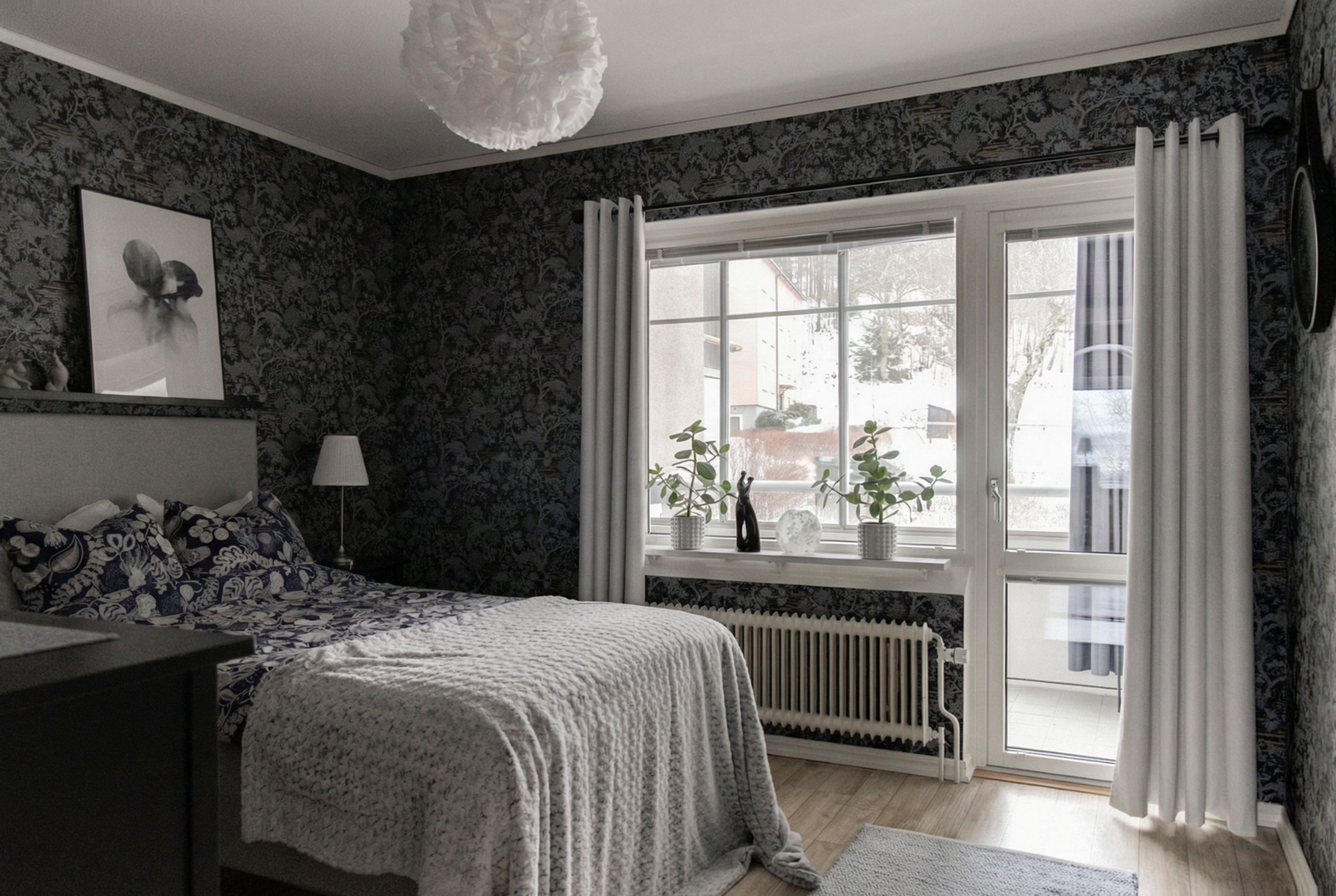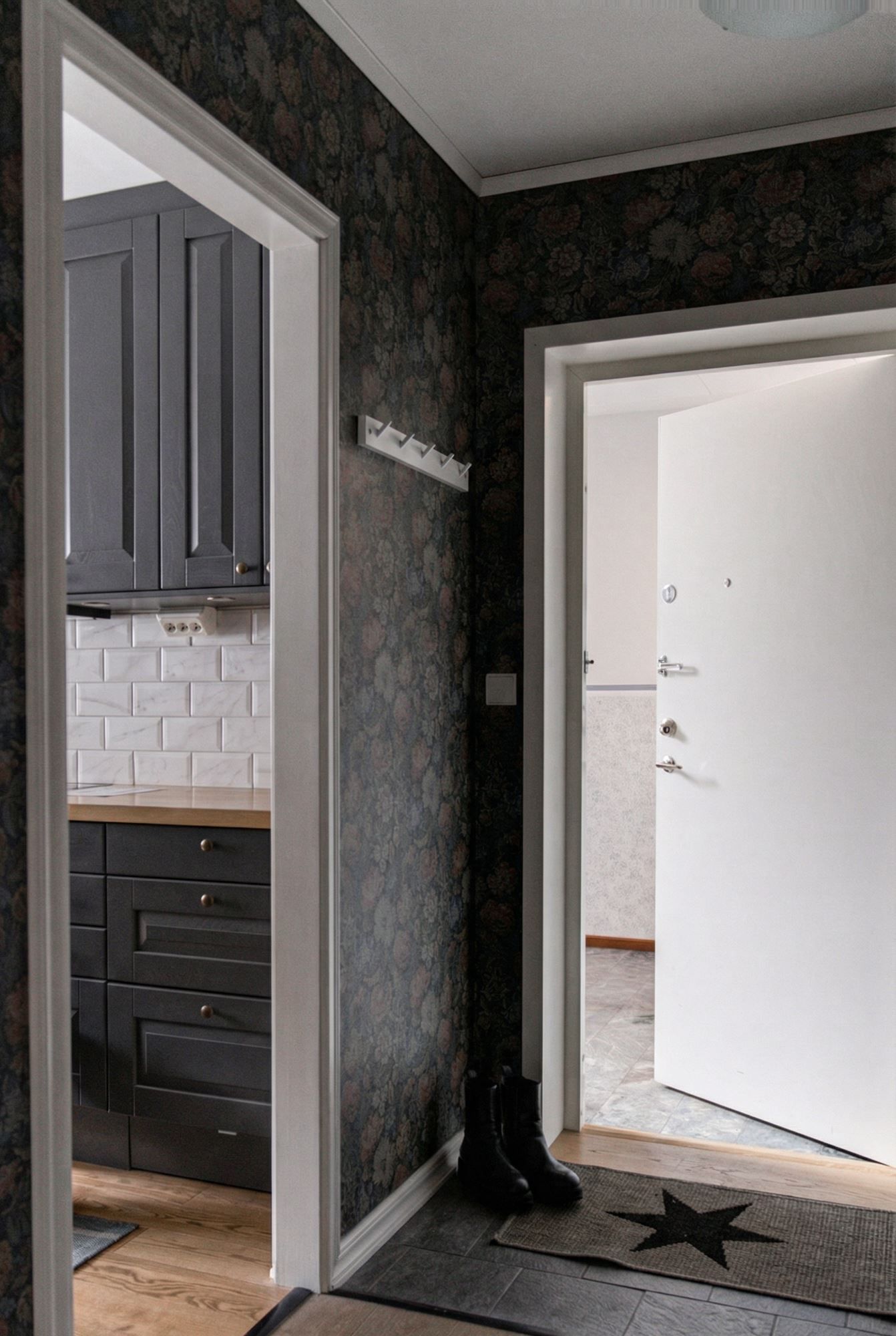 Välkommen till en mysig tvårumslägenhet där varje detalj är noggrant utvald för att skapa en känsla av kvalitet och elegans. Här möts du av en helhet där premiumkänslan genomsyrar bostaden – från de stilfulla tapeterna till de vackert utformade socklarna som ramar in rummen med klass och finess.