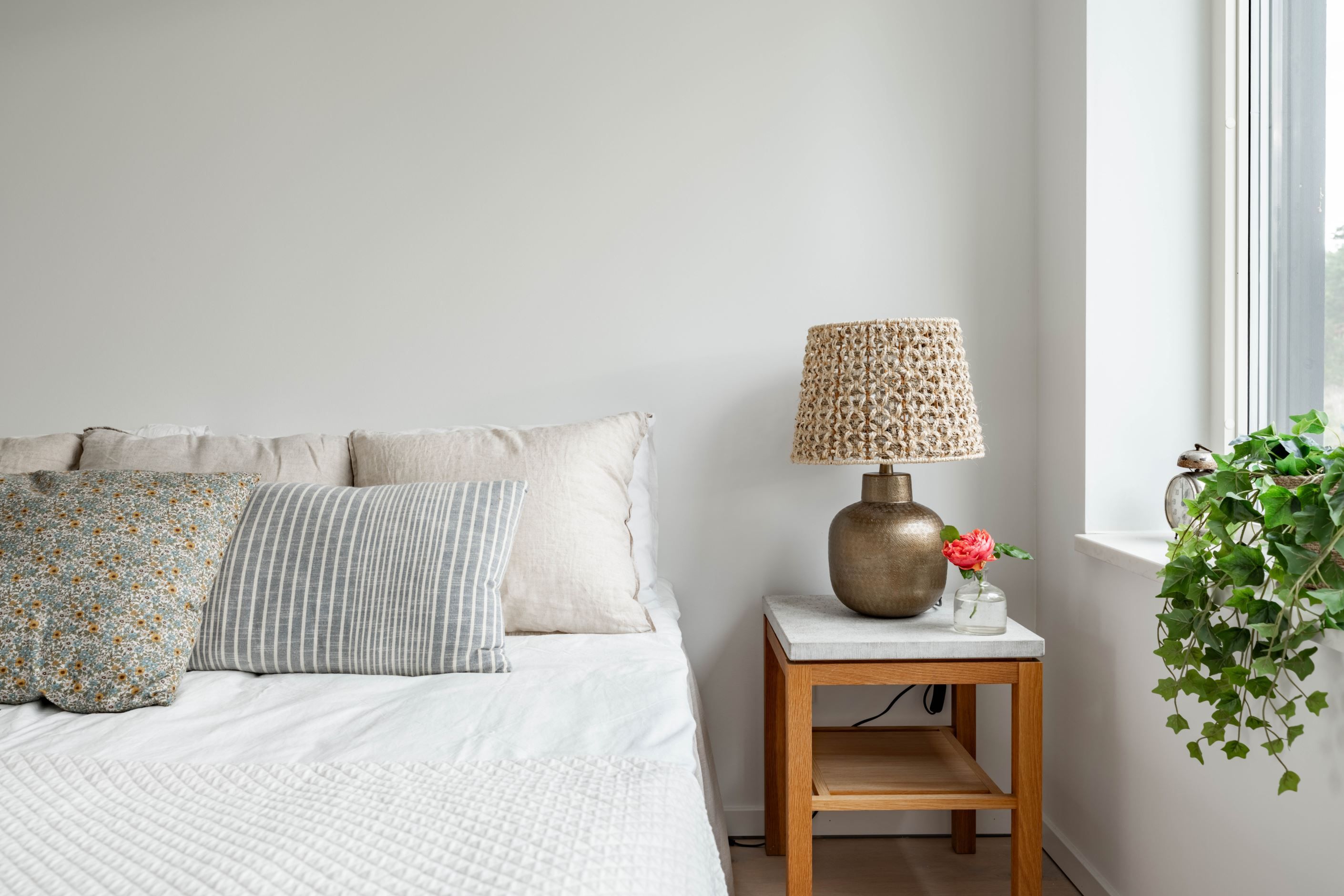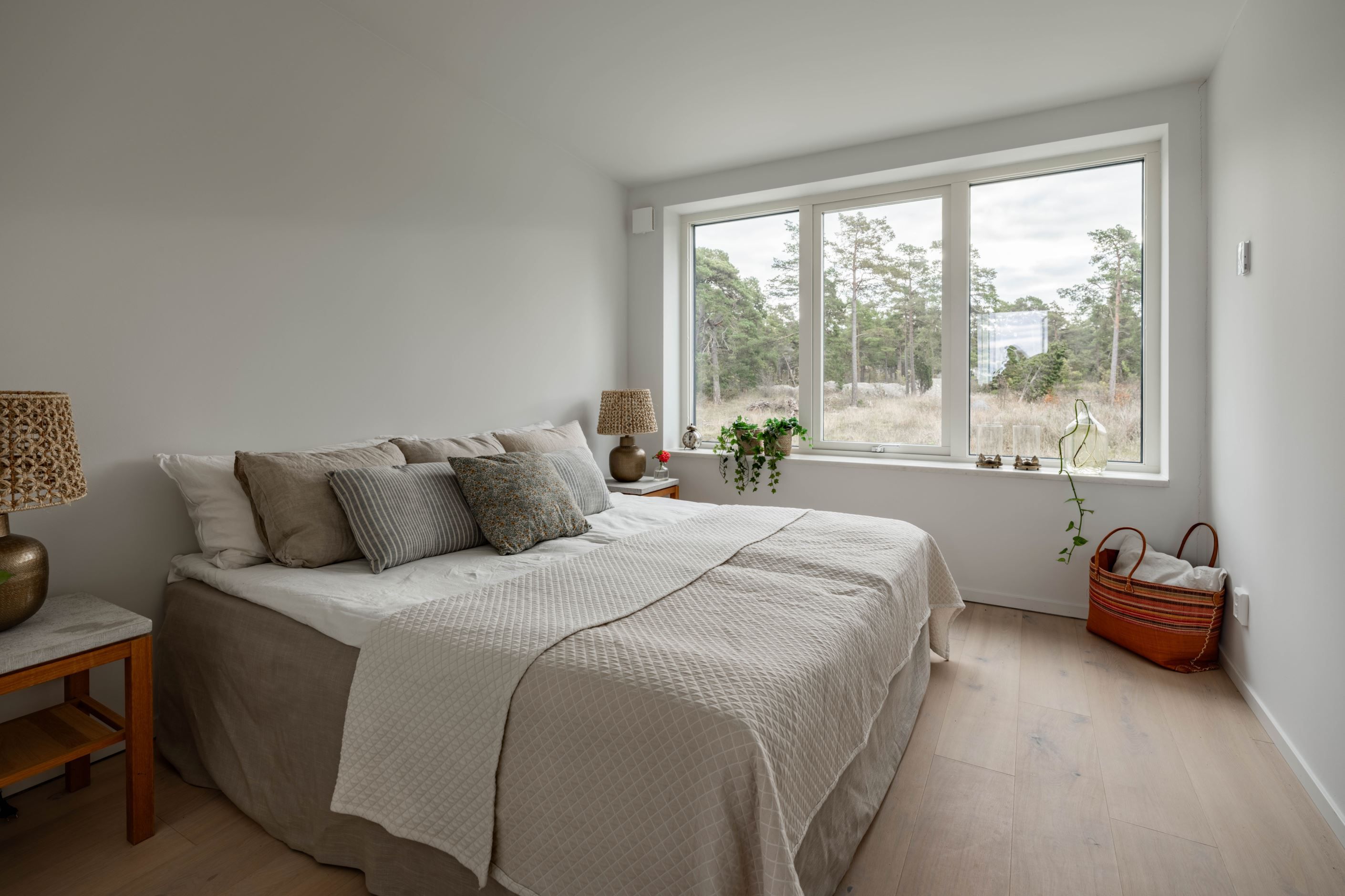Sovrummet ligger lugnt placerat innanför sällskapsytorna och är generöst tilltaget, med plats för dubbelsäng och tillhörande möbler. Inbyggda garderober håller ordning och utsikten över den omgivande naturen gör uppvaknandet oväntat behagligt – även på måndagar.
