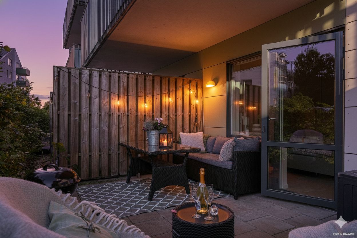 Fantastiskt trevlig tvåa med stor uteplats med eftermiddagssol!