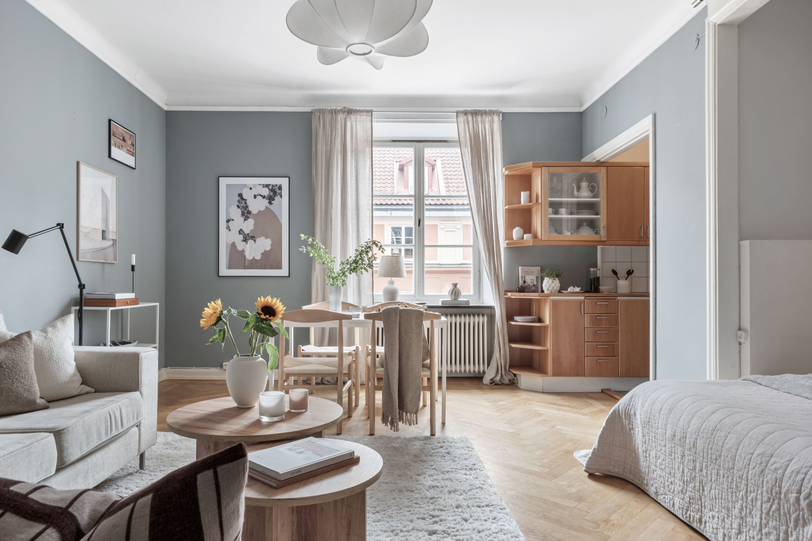 Välkommen till denna charmiga och smart planerade etta med ett fantastiskt läge i hjärtat av Stockholm och låg avgift. Bostaden ligger högt upp i huset och erbjuder ett fint ljusinsläpp samt utsikt mot takåsar och vackra byggnader.