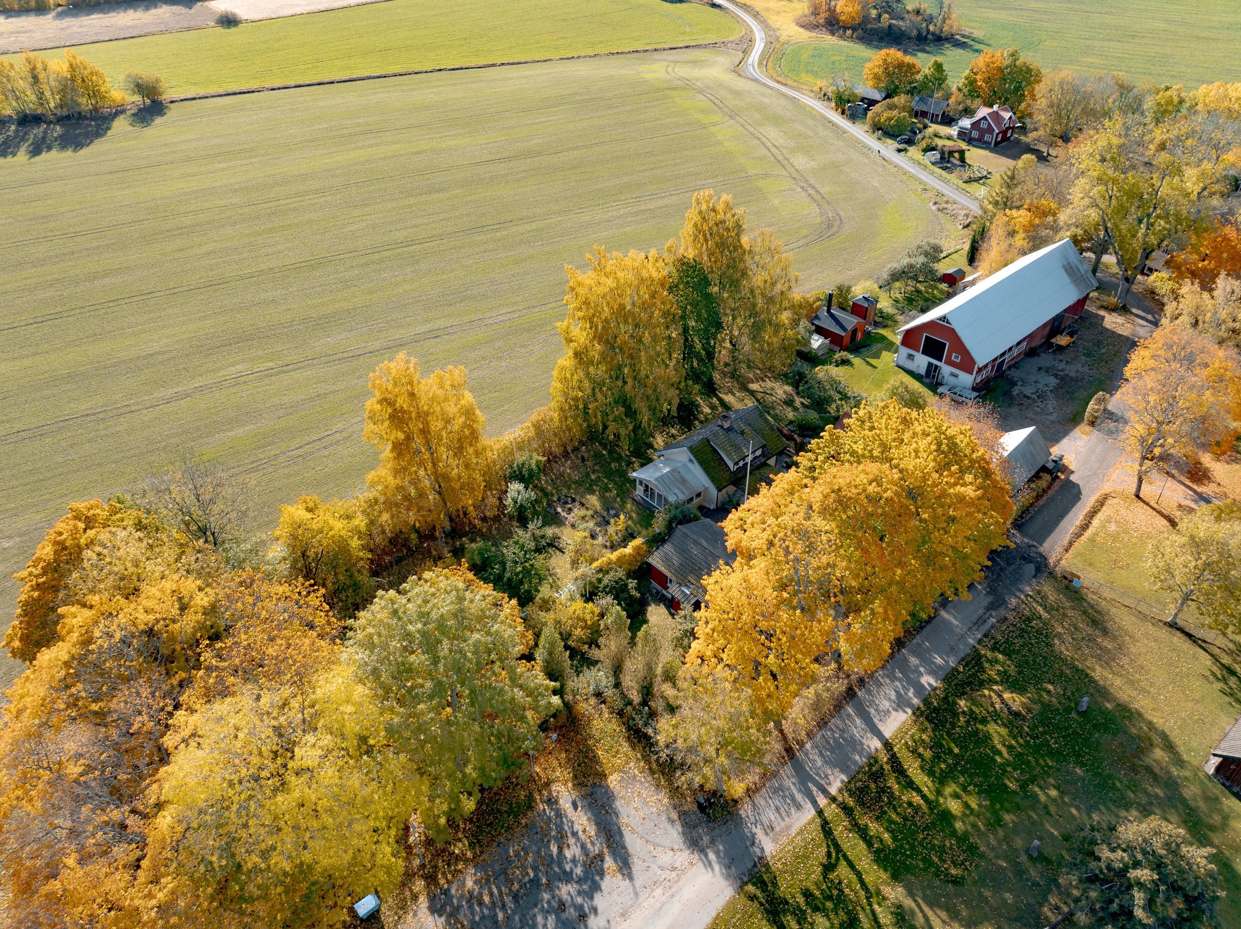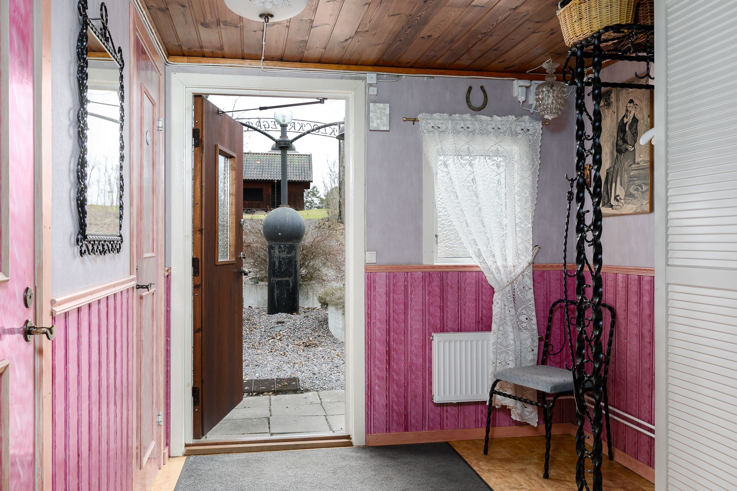 Huvudhuset – Ett vackert 1,5-planshus om 105 kvm med uppvärmningen via pellets som bidrar till ett hållbart boende. Huset erbjuder 3 rum inklusive ett rymligt sovrum. Ett helkaklat badrum som utstrålar modernitet medan det stora köket, komplett med matplats, inbjuder till långa middagar. I vardagsrummet finns en charmig öppen spis (ej fungerande), i anslutning finns det stora inglasade uterummet som ger en förtrollande utsikt över åkrar och trädgård.