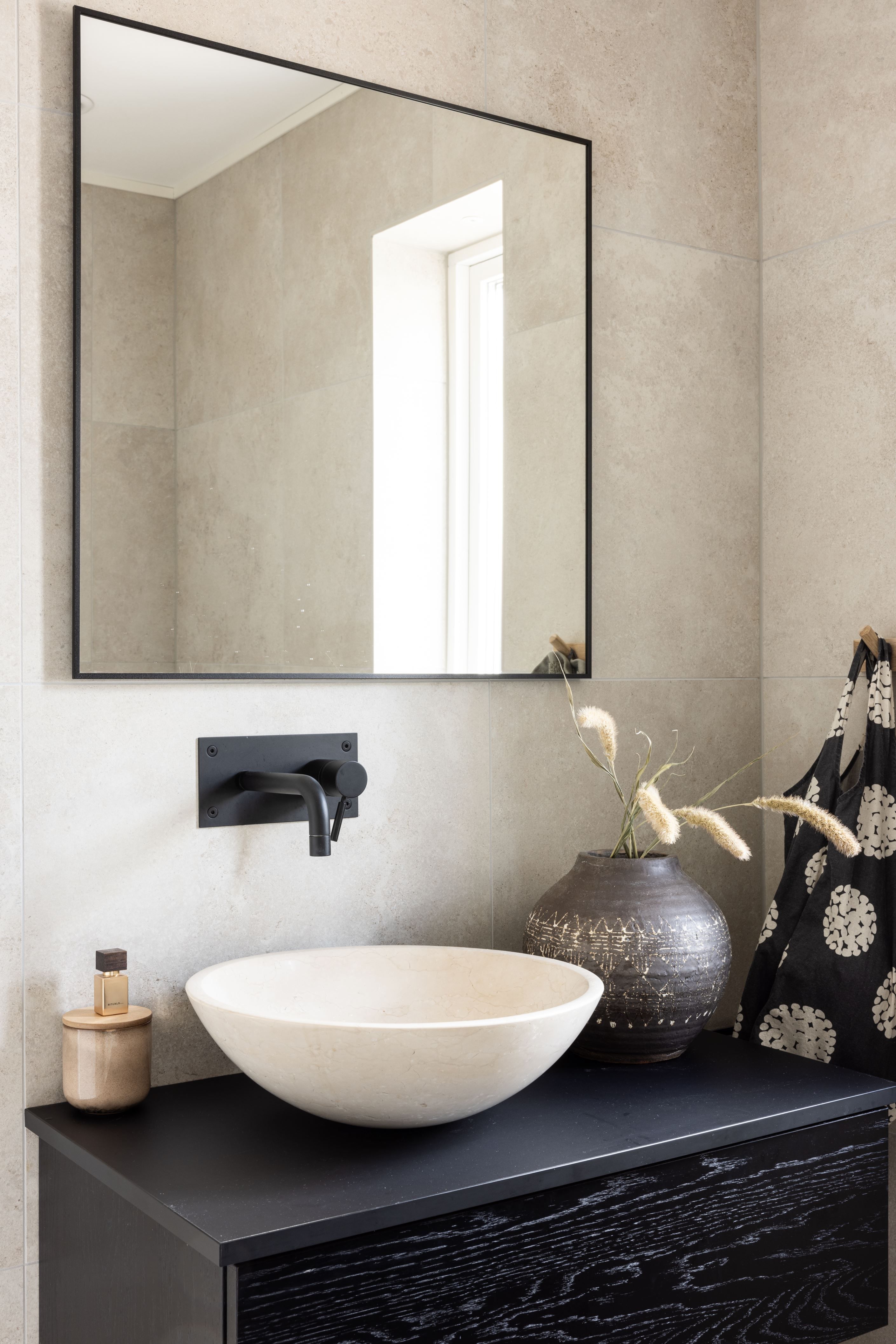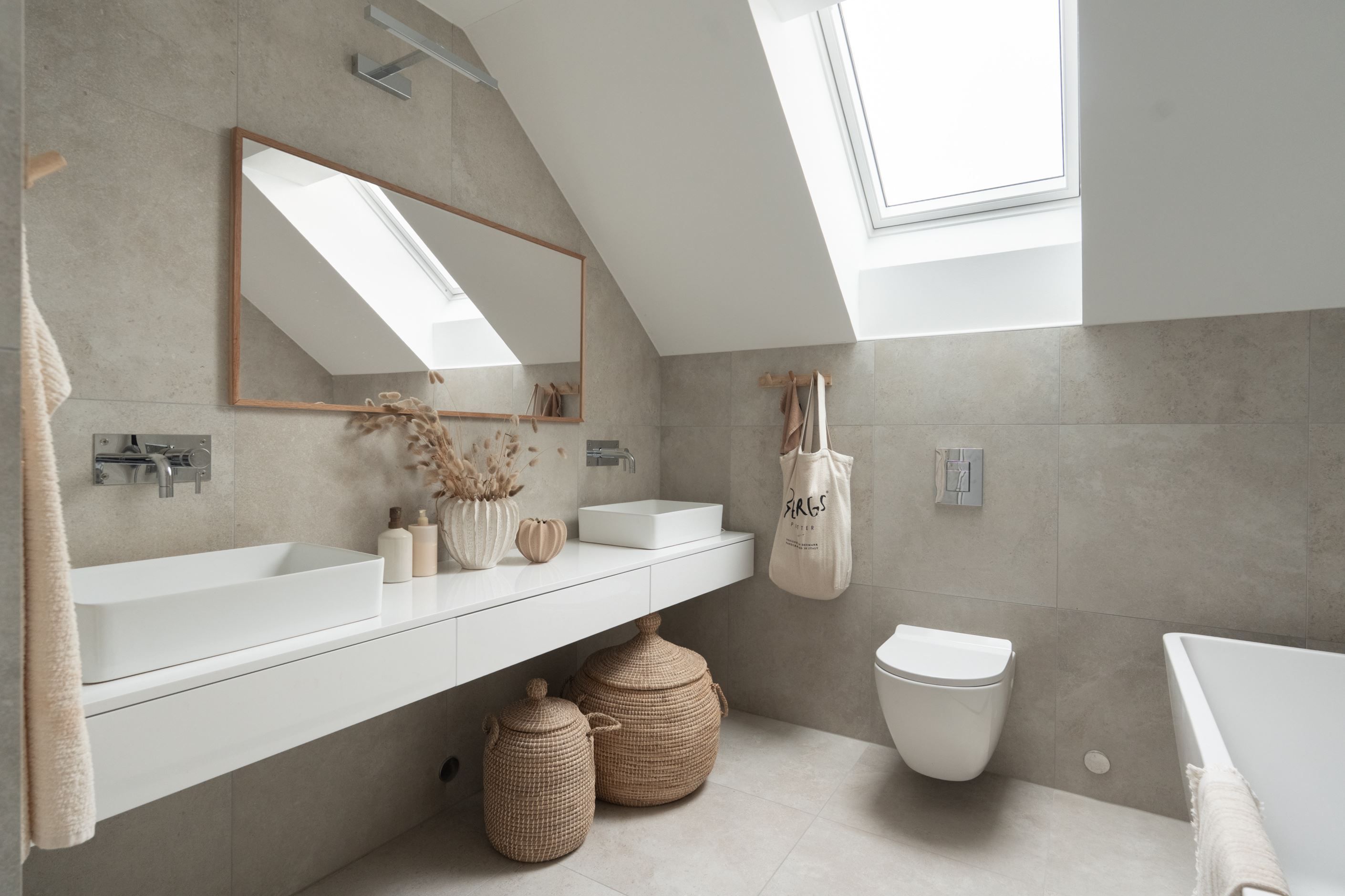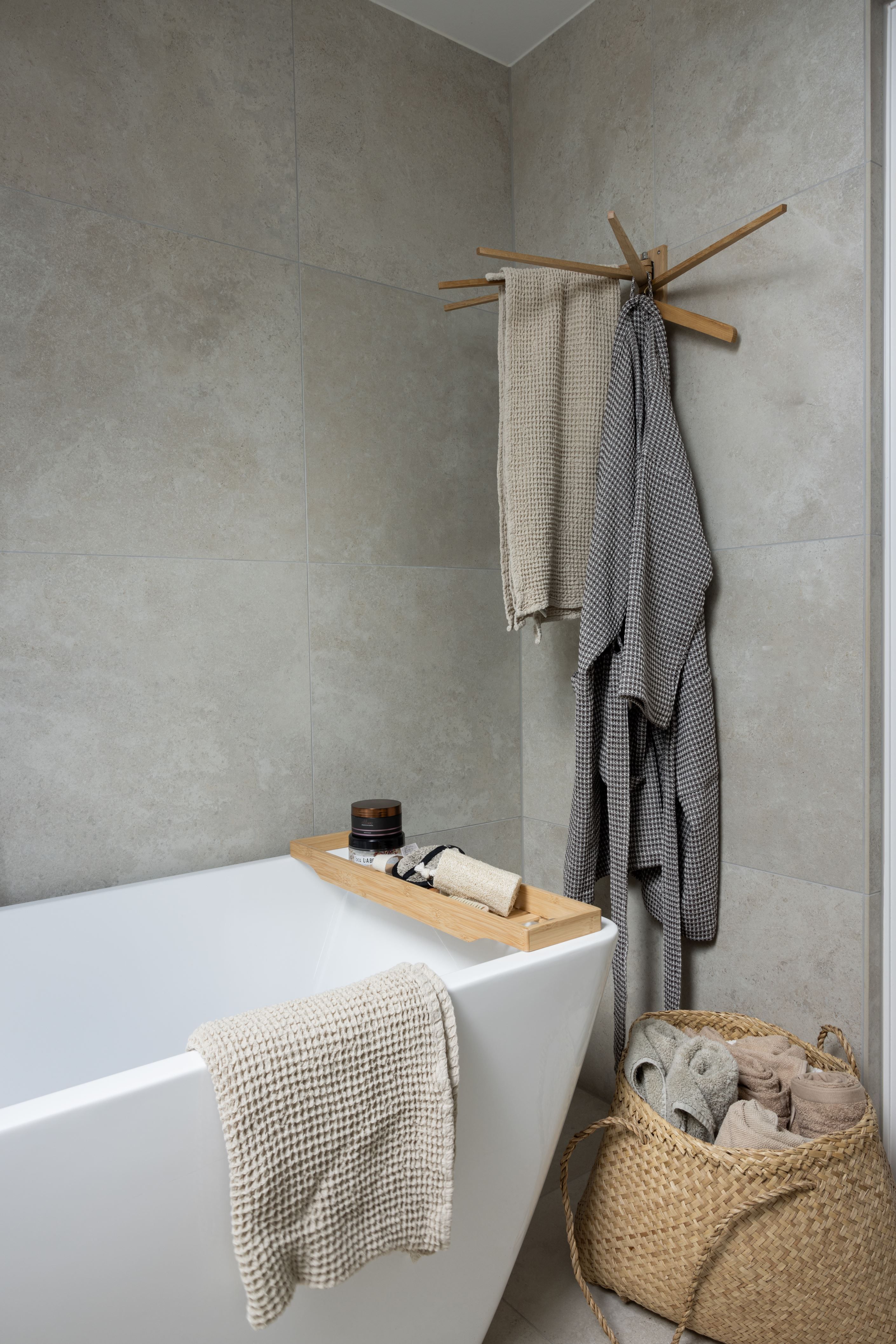 Huset erbjuder badrum på båda planen, smakfullt helkaklade i modern stil. På övervåningen finns dessutom ett generöst badkar som höjer vardagskomforten.