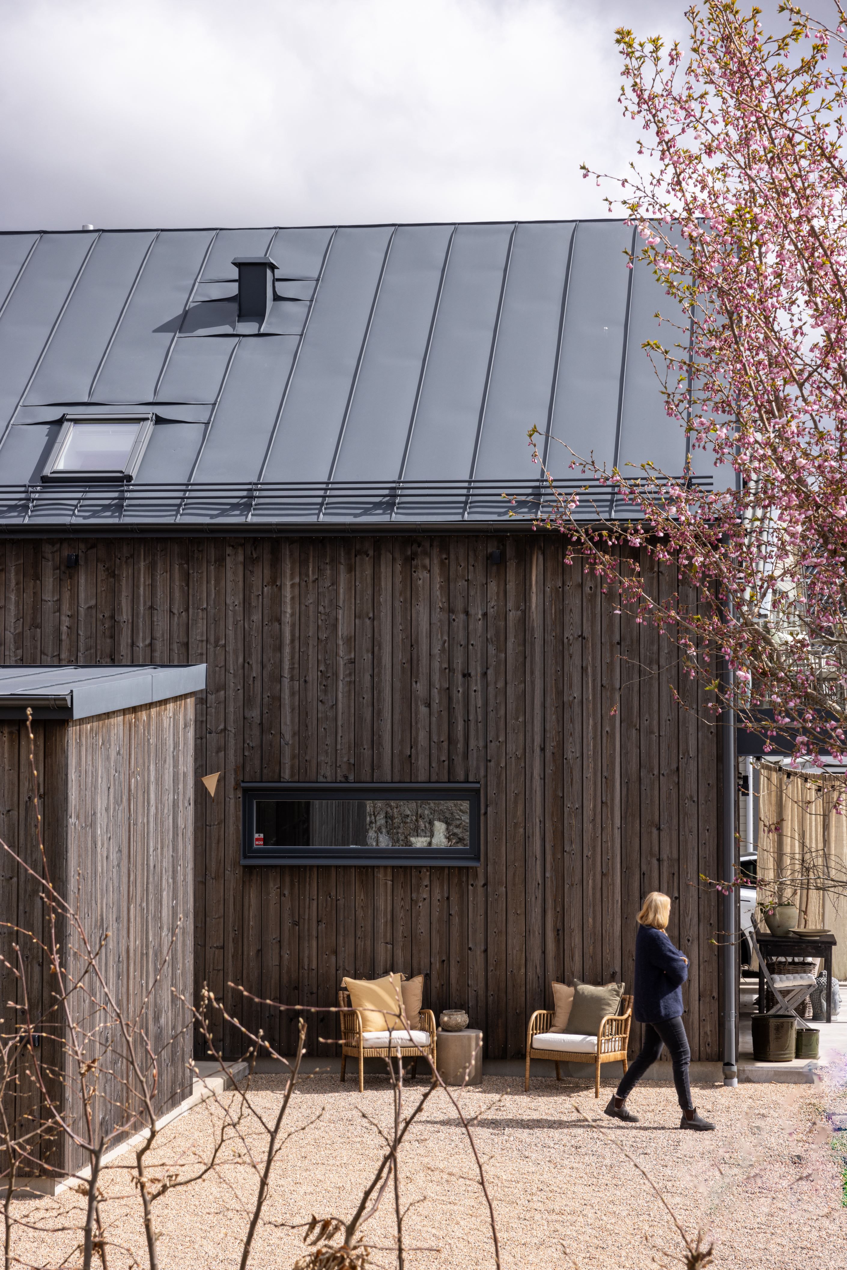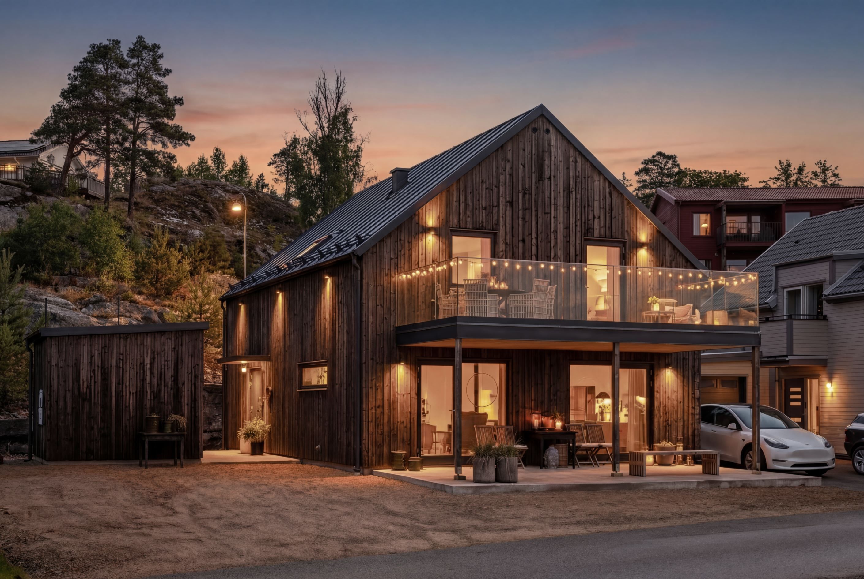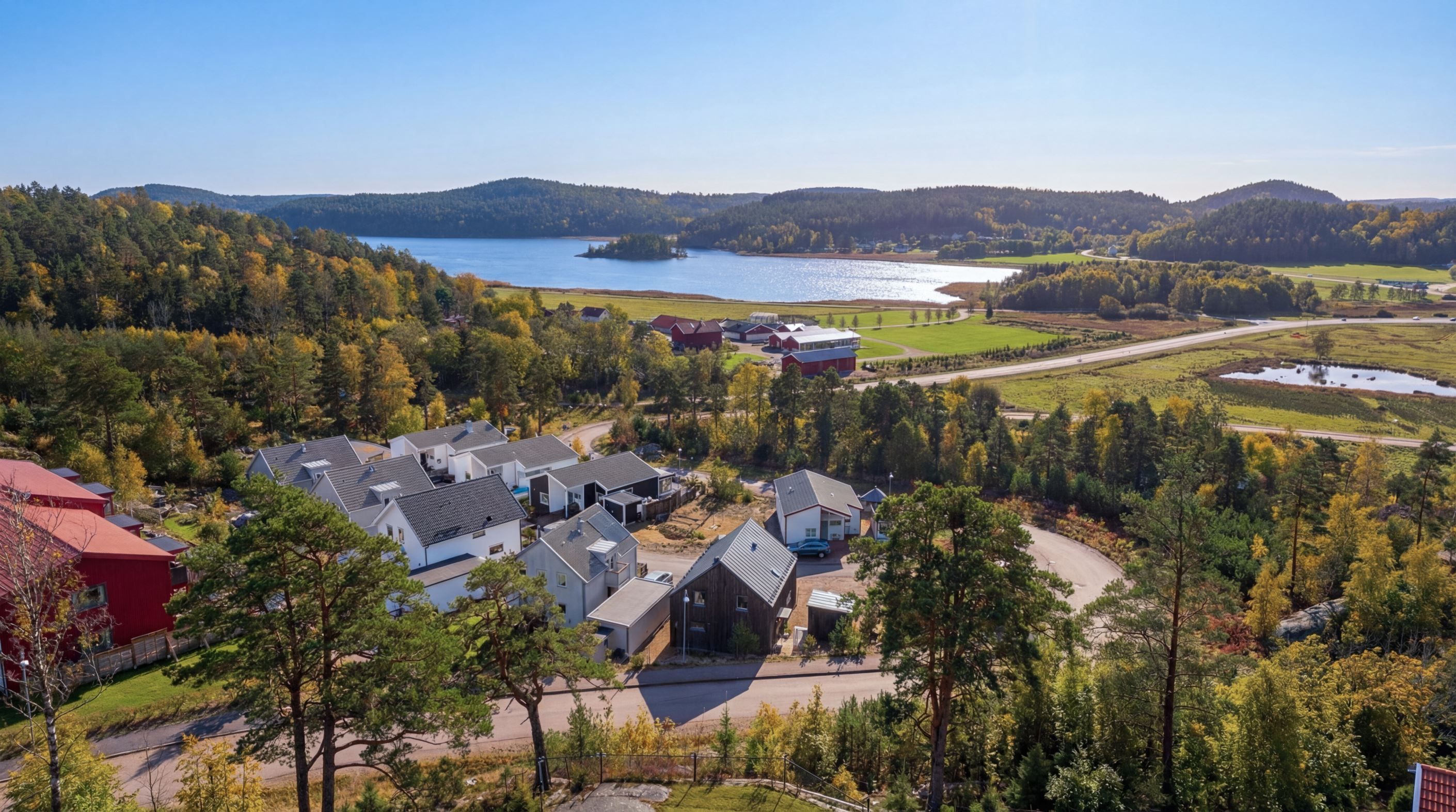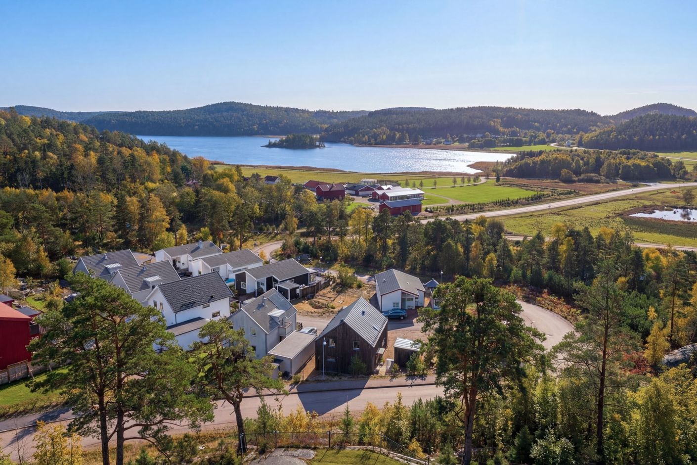 Arkitektritat hus som i skandinavisk anda harmonierar vackert med den omgivande naturen. Exteriören präglas av rena linjer, modern arkitektur och en varm träfasad som smälter vackert in i landskapet. Här bor ni med ett högt och fritt läge med vidsträckt utsikt över böljande skogsklädda kullar, Havstensfjordens blå vatten och öppna gröna fält.