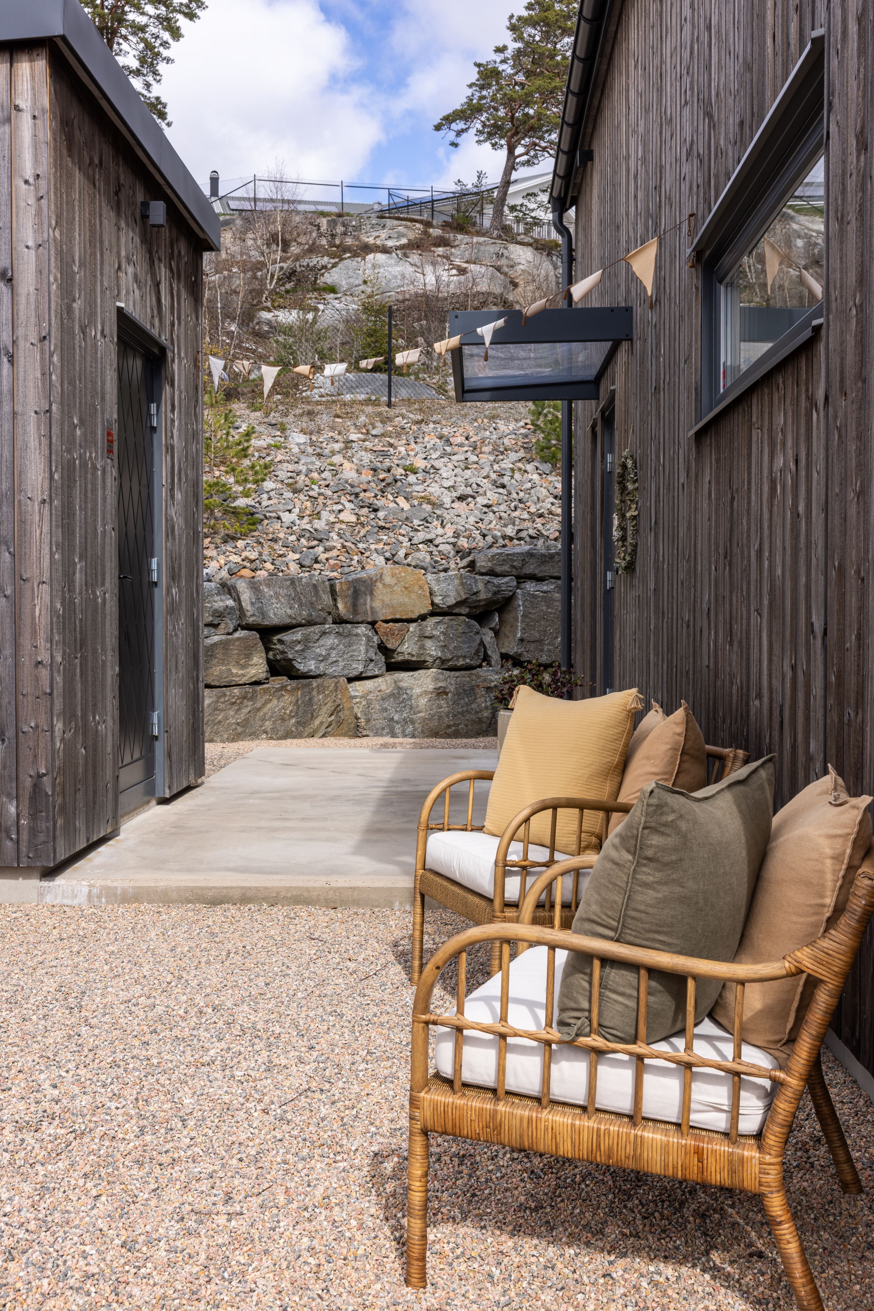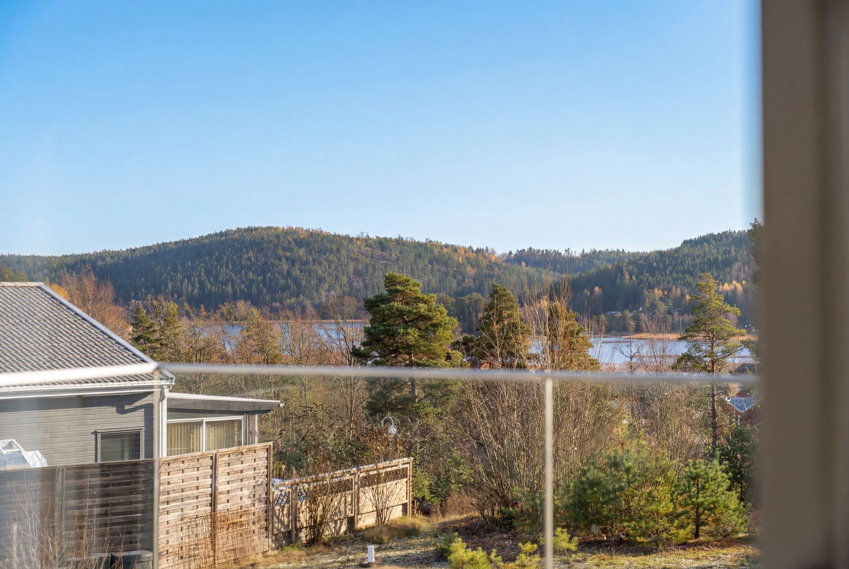 Tomten erbjuder väl tilltagna och lättskötta ytor med en uteplats i putsad betongplatta, en vackert grusad parkeringsyta samt gräsmatta. På övervåningen finns dessutom en generös balkong med plats för både matgrupp och loungemöbler – perfekt för middagar, sociala tillställningar och avkoppling med utsikten som sällskap.