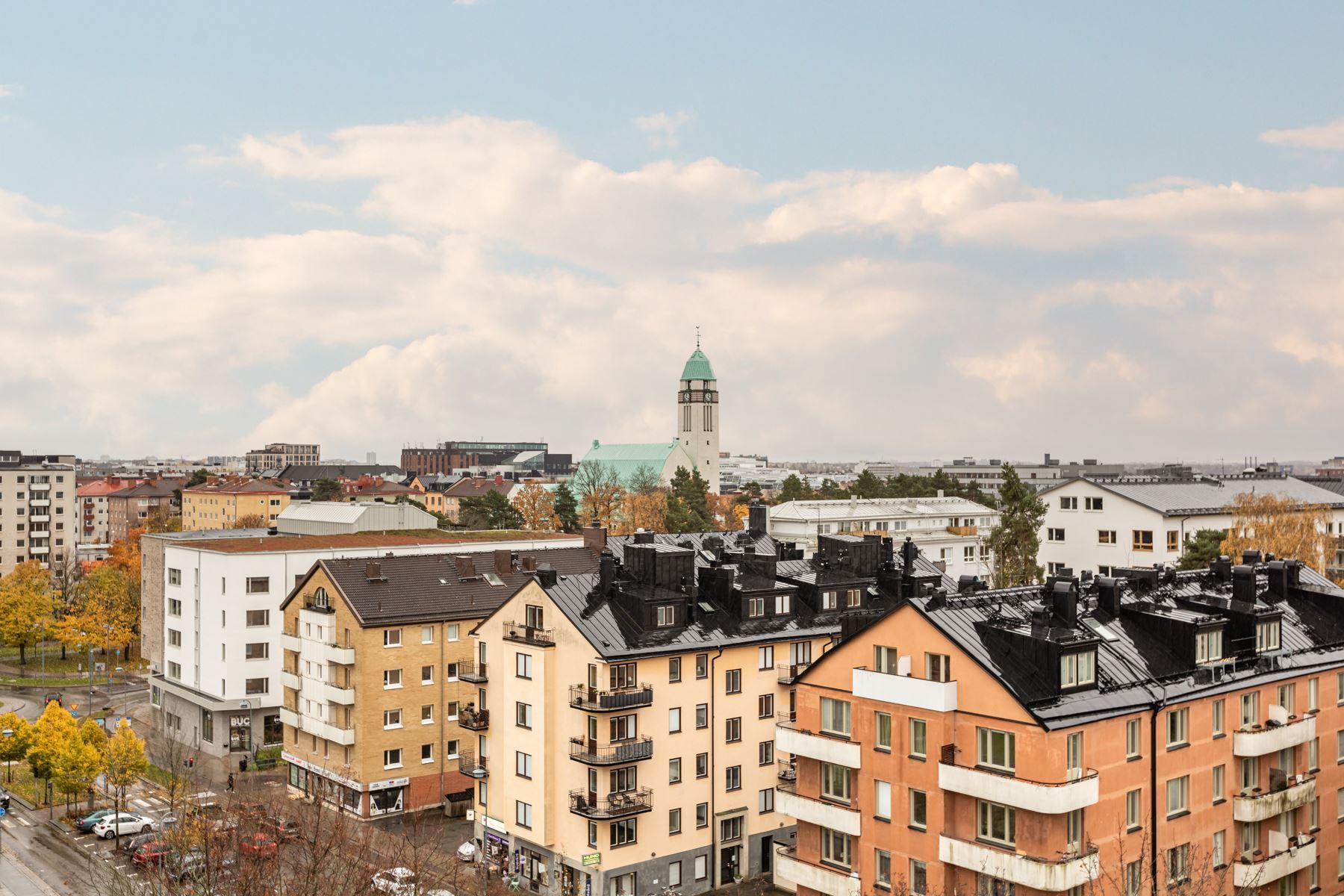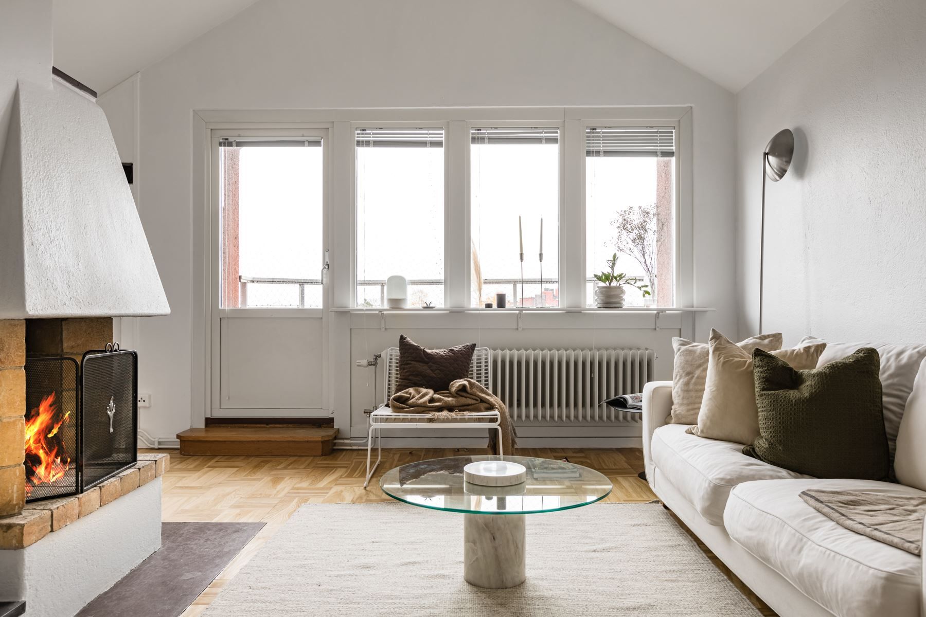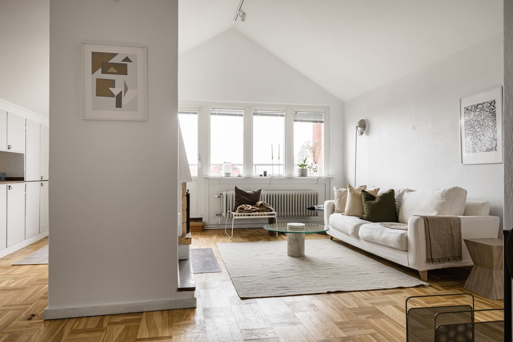 Direkt när du kliver in så stiger pulsen. Ingen bostad är som den här! Etagelägenhet högst upp i huset med hela två balkonger varav en inglasad med milsvida utsikter från båda på varsitt plan. Sol i söderläge på båda med sol från förmiddag till sen kväll och utsikt över Kyrkan och Vattentornet. Det är givet vart alla dina nära och kära vill hålla till kring nyårsnatten. Njut av sommarens sol från förmiddag till solnedgång med en milsvid vy.
