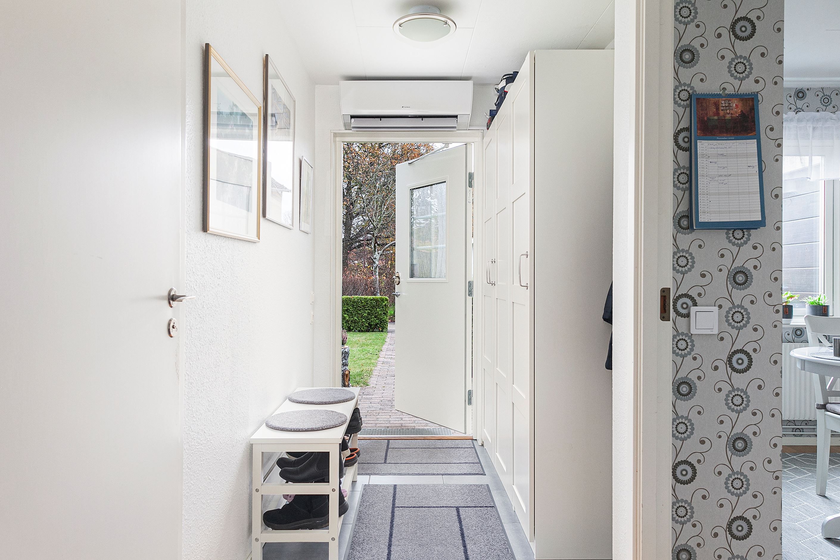 Redan i entrén möts du av en praktisk tambur med stengolv och garderob. Vidare in i bostaden öppnar hallen upp sig med ett fint parkettgolv och ger smidig access till både kök och badrum.