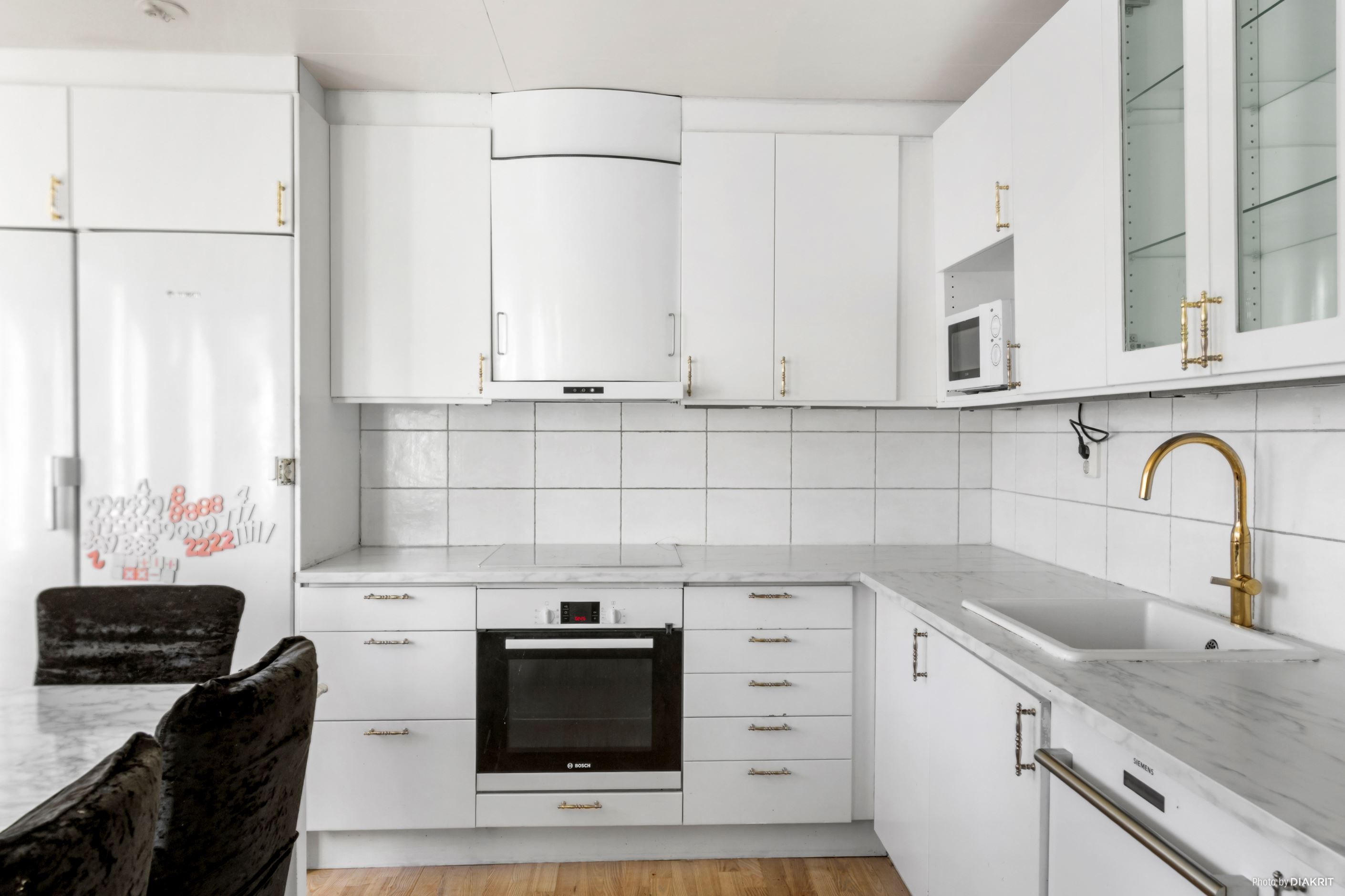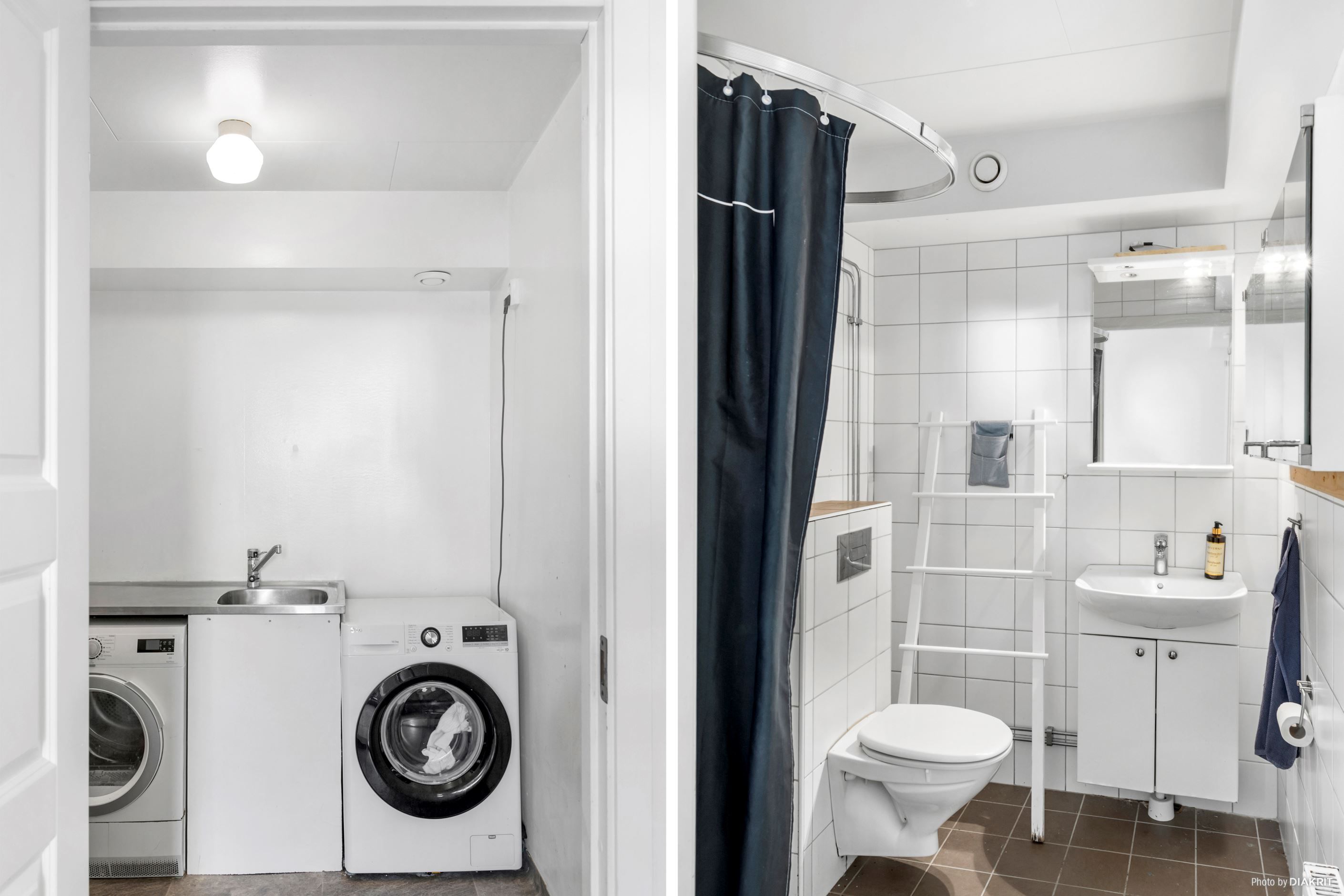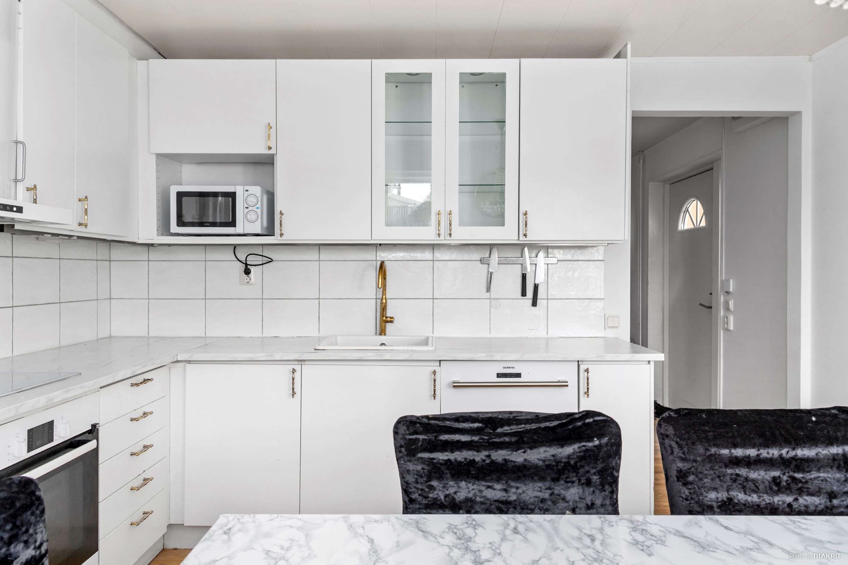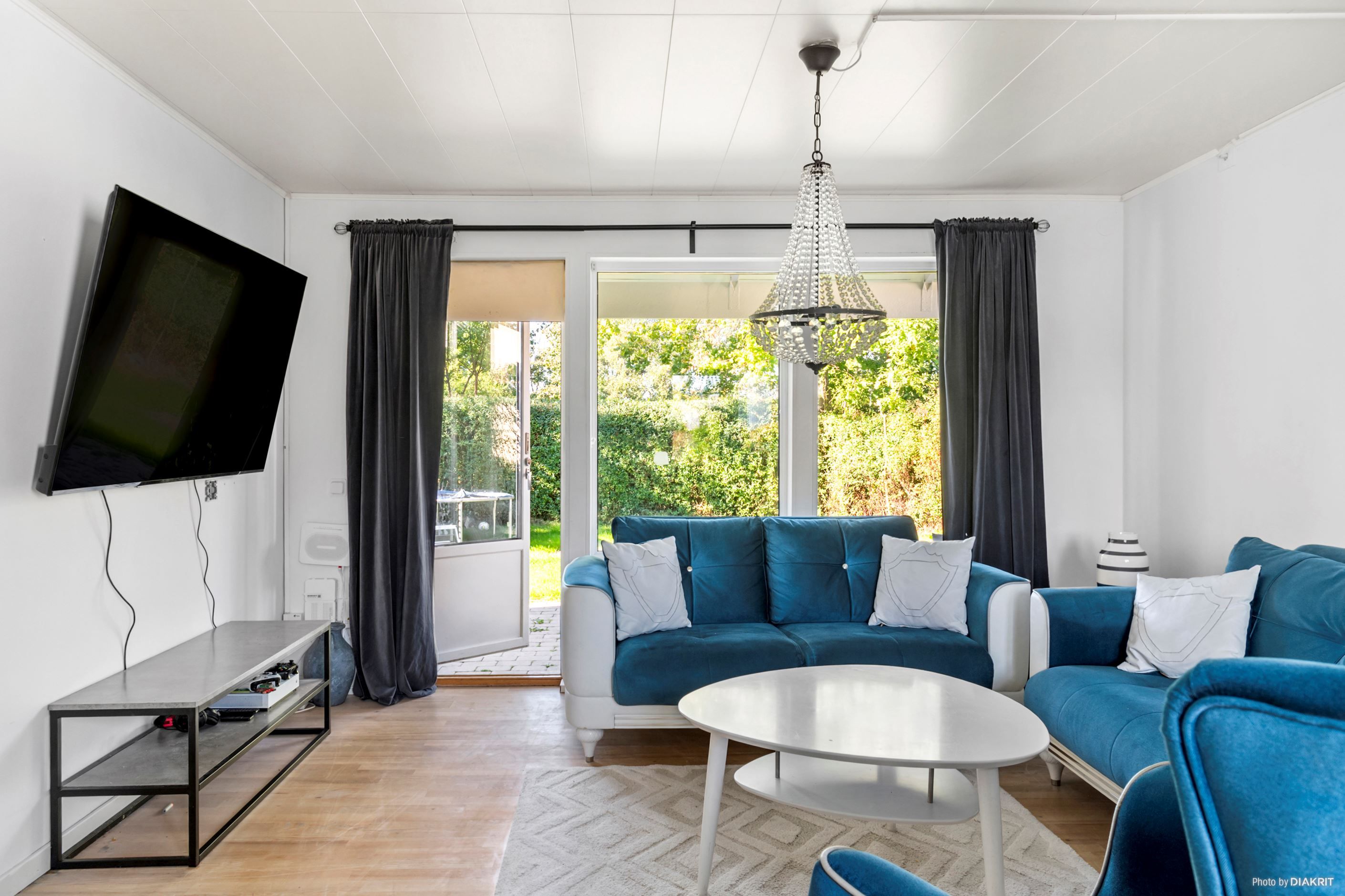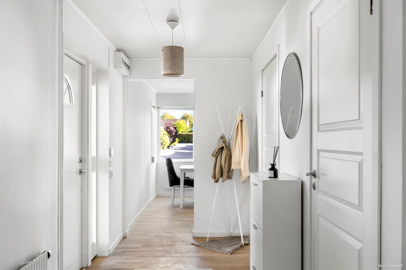 Redan i hallen möts du av en ljus och välkomnande känsla där ytorna flyter vidare in i hemmets sociala delar. Köket är strategiskt placerat mot gatan och skapar en naturlig kontakt med omgivningen, här finns gott om plats för både matlagning och långa middagar kring ett större bord. Vardagsrummet vetter mot trädgården och blir en självklar samlingspunkt för familjen med generösa ytor för både umgänge och avkoppling. Från vardagsrummet tar du dig enkelt ut i trädgården, en rofylld plats som bjuder på sol större delen av dagen.