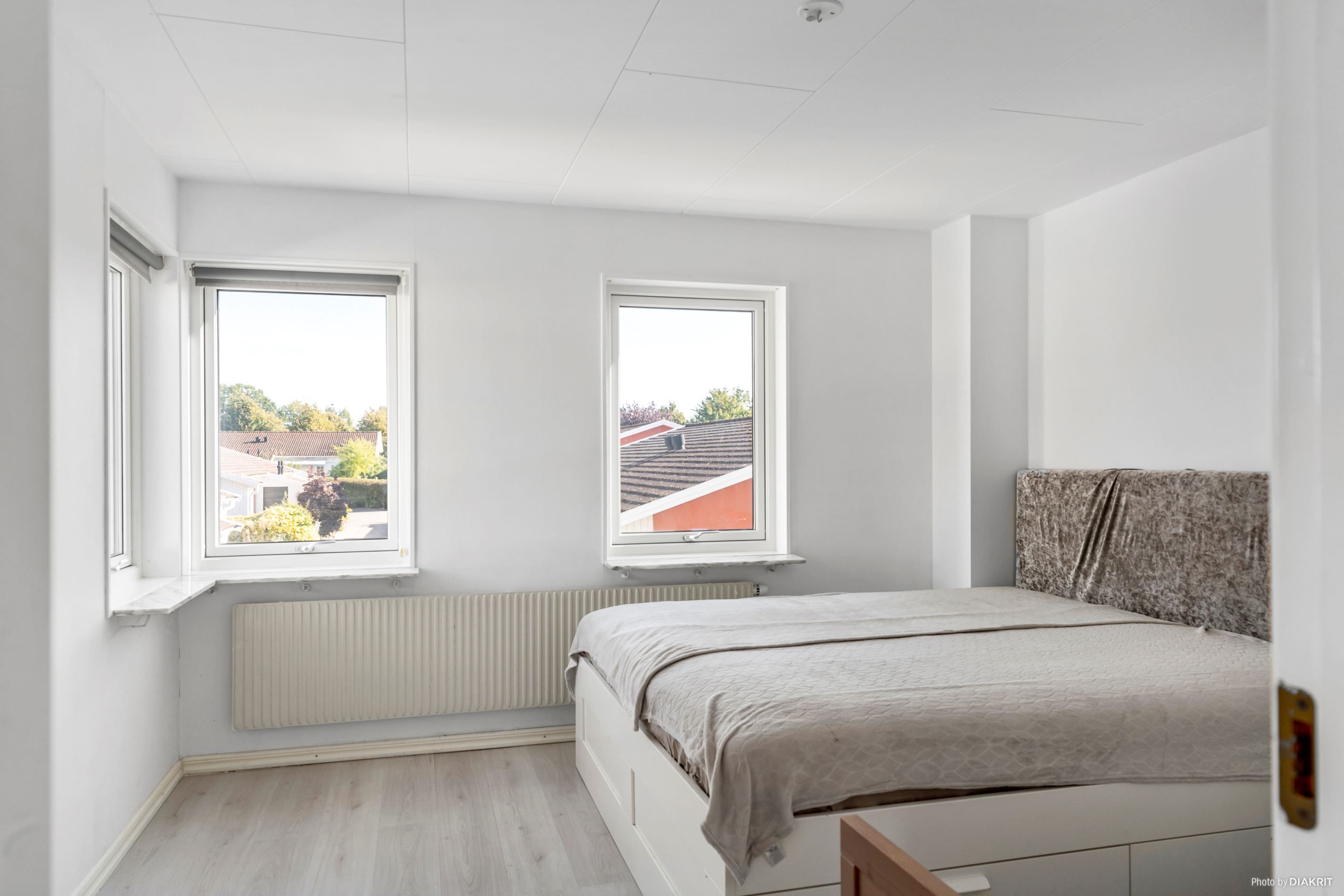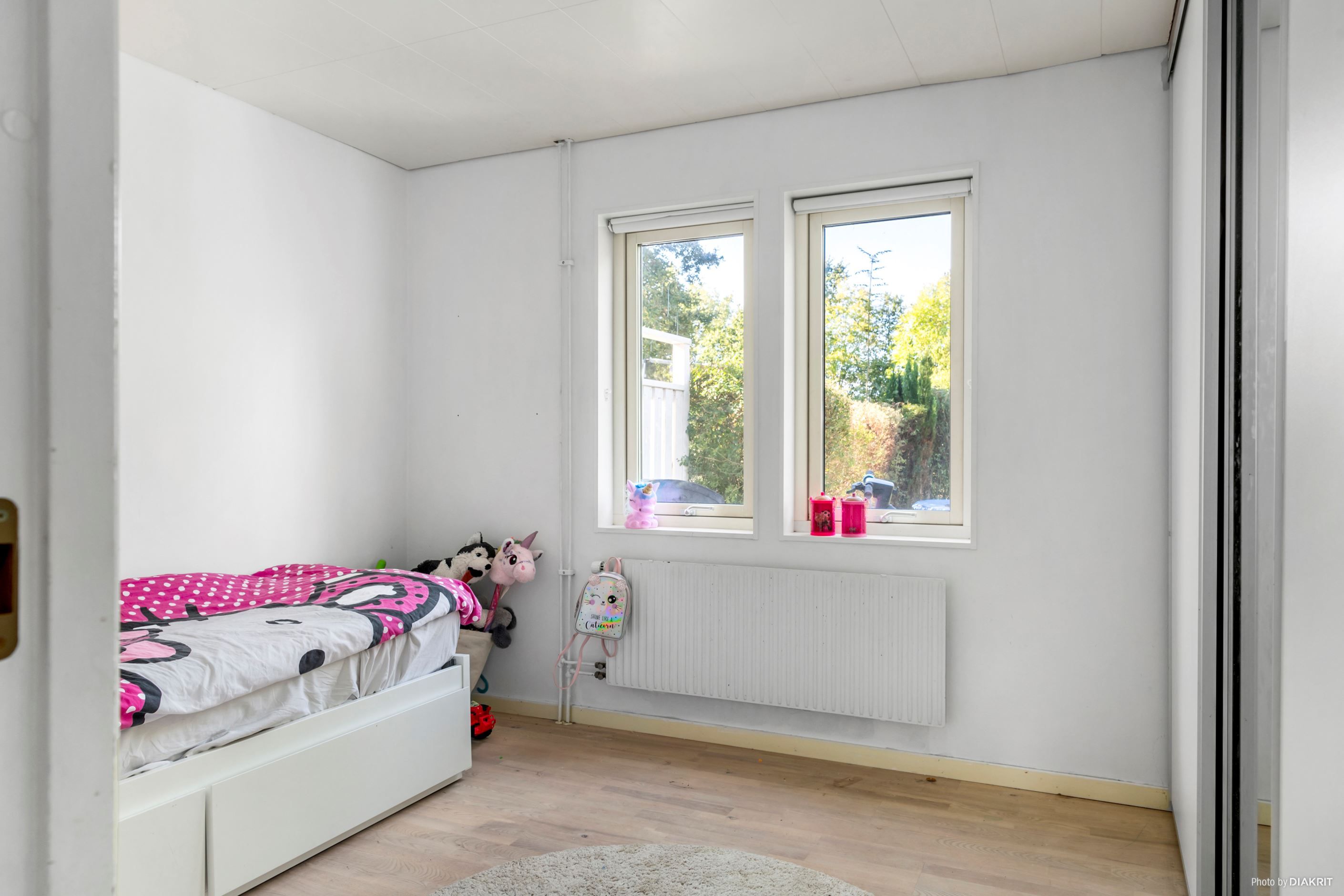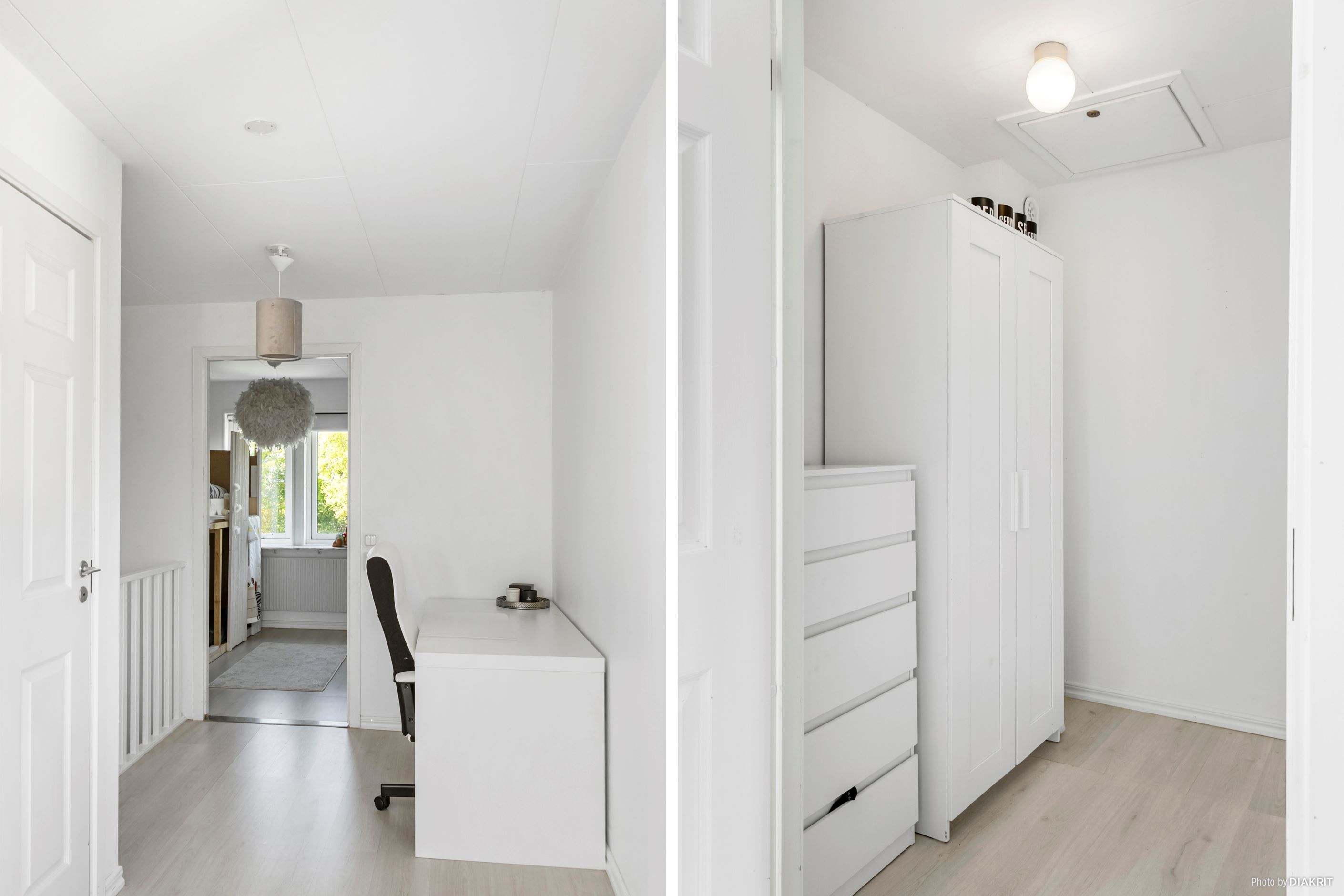 En trappa upp väntar den mer privata delen av huset. Här finns två väl tilltagna sovrum placerade på varsin sida av huset vilket skapar en härlig rymd och avskildhet. Huset har två helkaklade badrum, en rymlig klädkammare samt en separat tvättstuga. Till huset hör även ett praktiskt förråd samt en mindre redskapsbod.