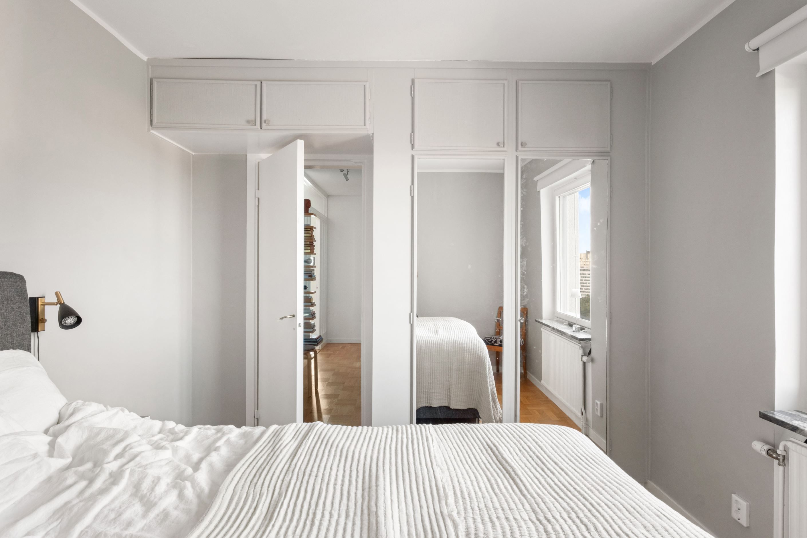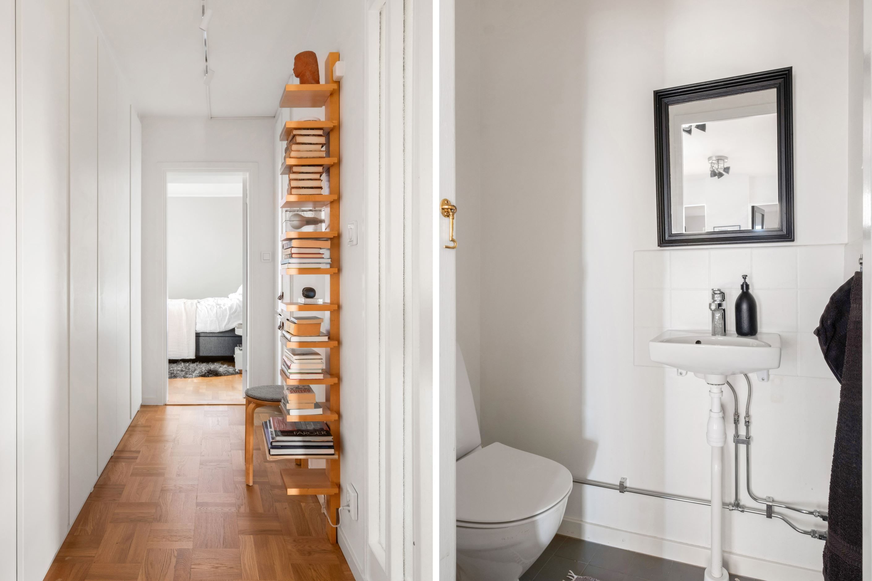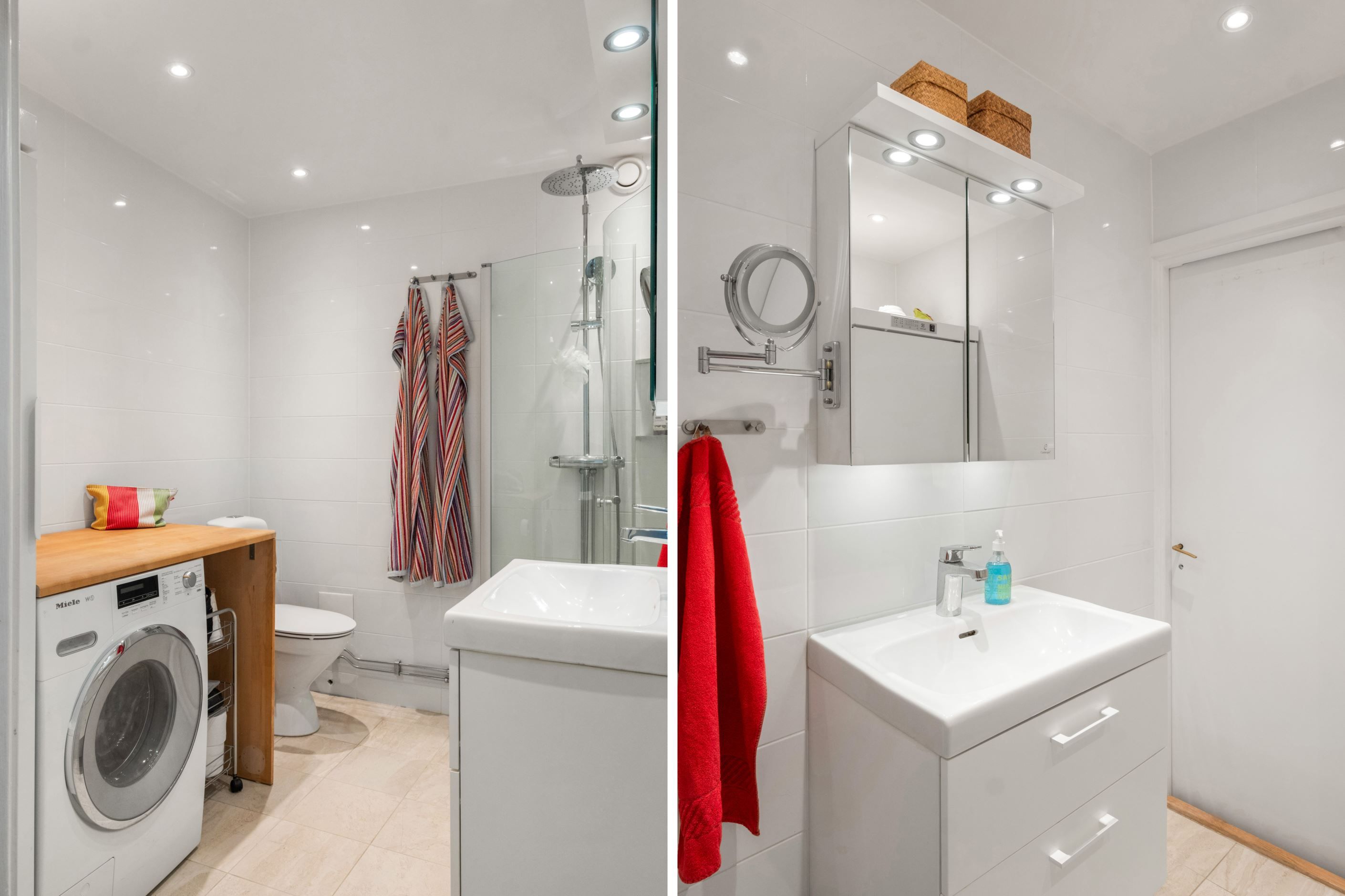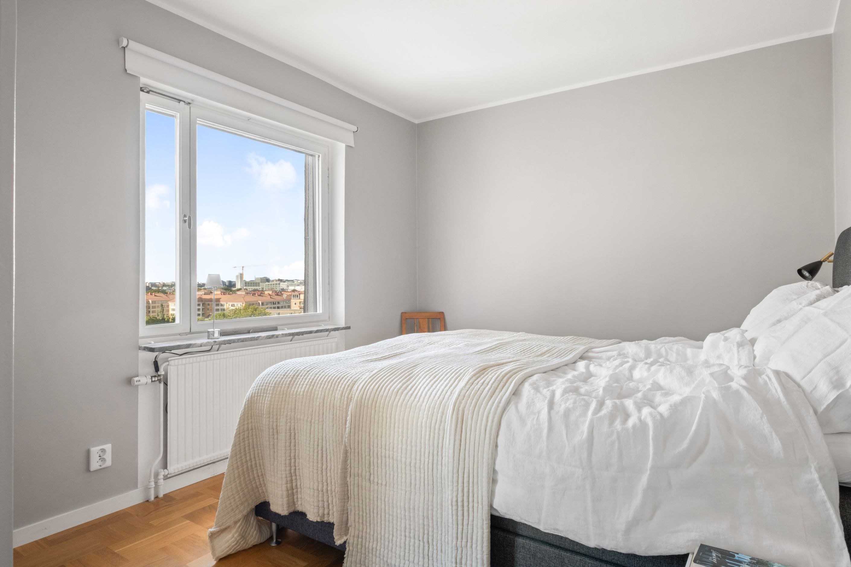 Planlösningen är väl genomtänkt med ett stilfullt renoverat kök som öppnar upp mot det generösa vardagsrummet. Härifrån når du även den soliga balkongen där du kan njuta av solen från förmiddag till kväll, samtidigt som du blickar ut över glittrande vatten. Intill vardagsrummet finns ett rum som idag används som matrum, men som enkelt kan återställas till ett sovrum enligt originalplan. Därtill finns två rymliga och lättmöblerade sovrum, ett stilrent badrum med tvättmaskin och torkskåp samt en praktisk gästtoalett. De stora fönsterpartierna förstärker känslan av rymd, ljus och närhet till vattnet.