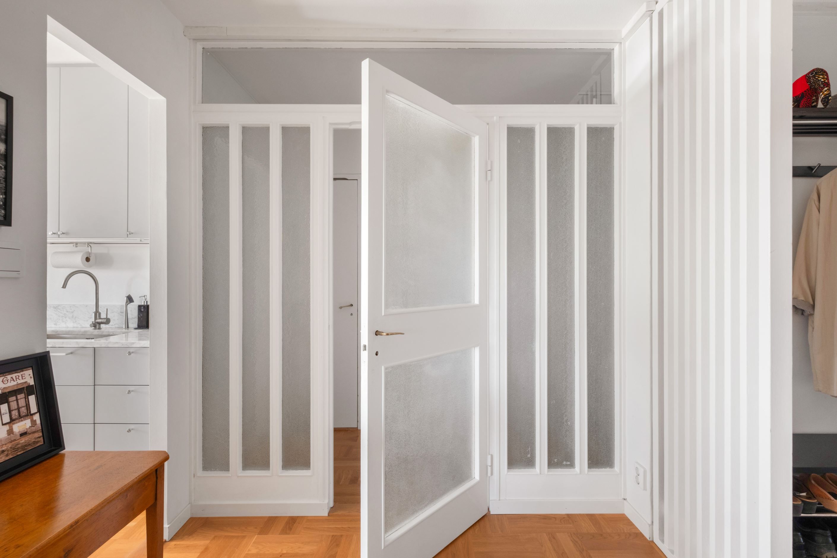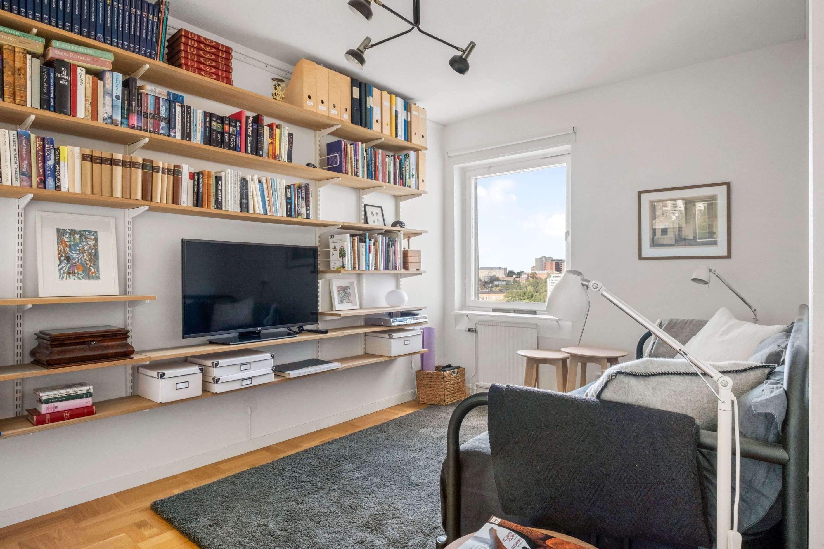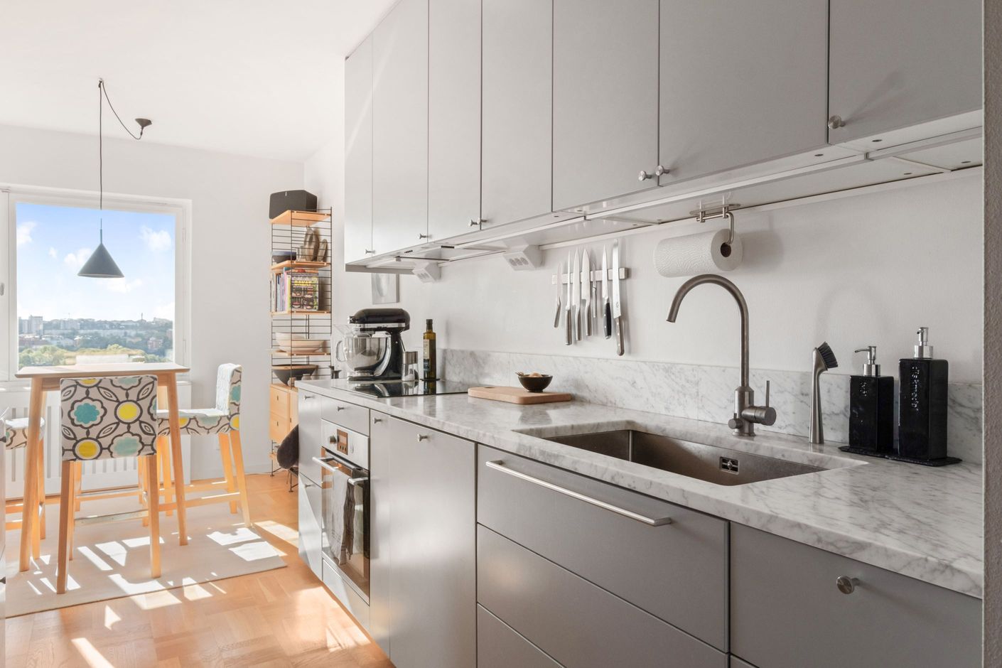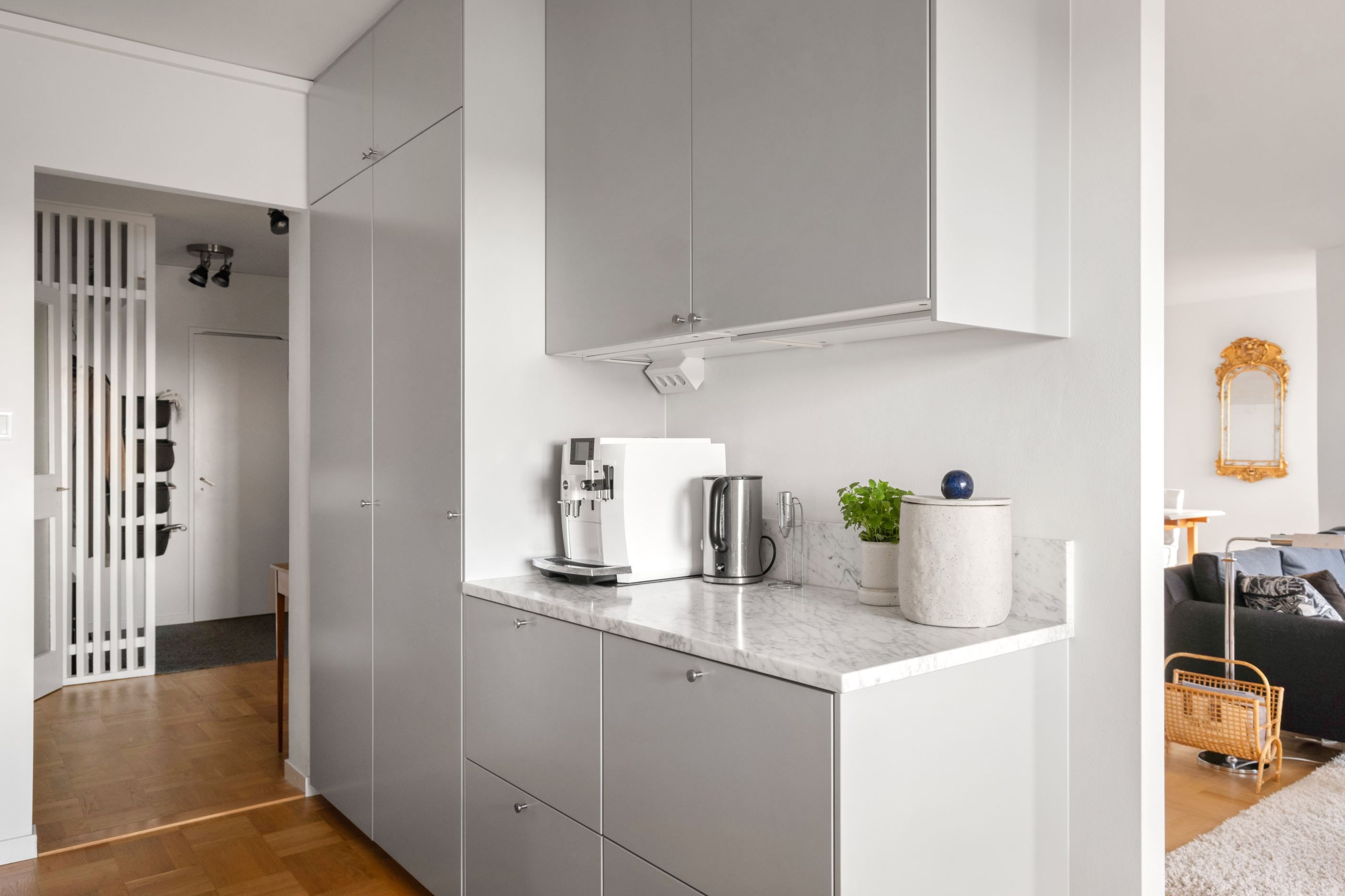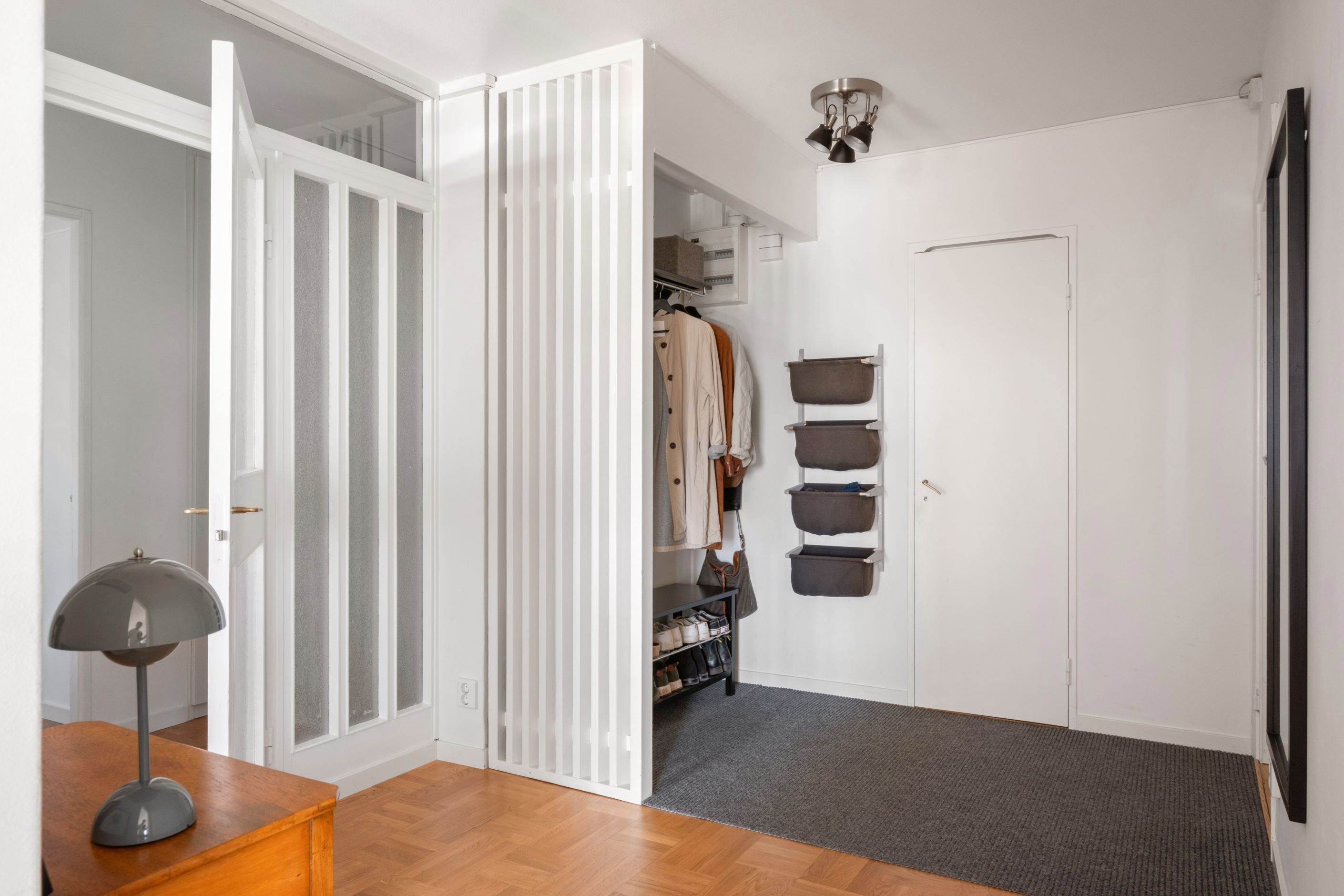 Planlösningen är väl genomtänkt med ett stilfullt renoverat kök som öppnar upp mot det generösa vardagsrummet. Härifrån når du även den soliga balkongen där du kan njuta av solen från förmiddag till kväll, samtidigt som du blickar ut över glittrande vatten. Intill vardagsrummet finns ett rum som idag används som matrum, men som enkelt kan återställas till ett sovrum enligt originalplan. Därtill finns två rymliga och lättmöblerade sovrum, ett stilrent badrum med tvättmaskin och torkskåp samt en praktisk gästtoalett. De stora fönsterpartierna förstärker känslan av rymd, ljus och närhet till vattnet.