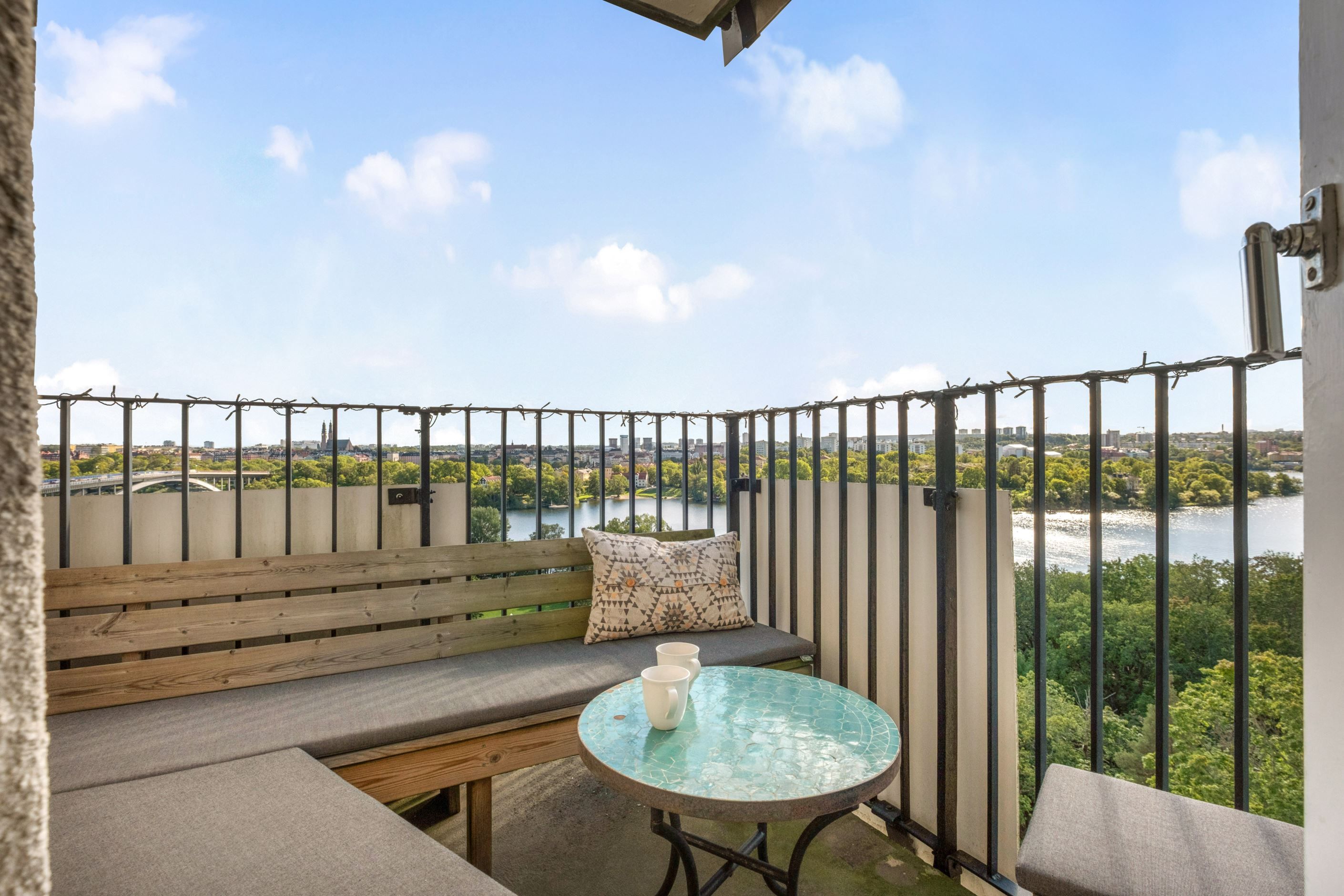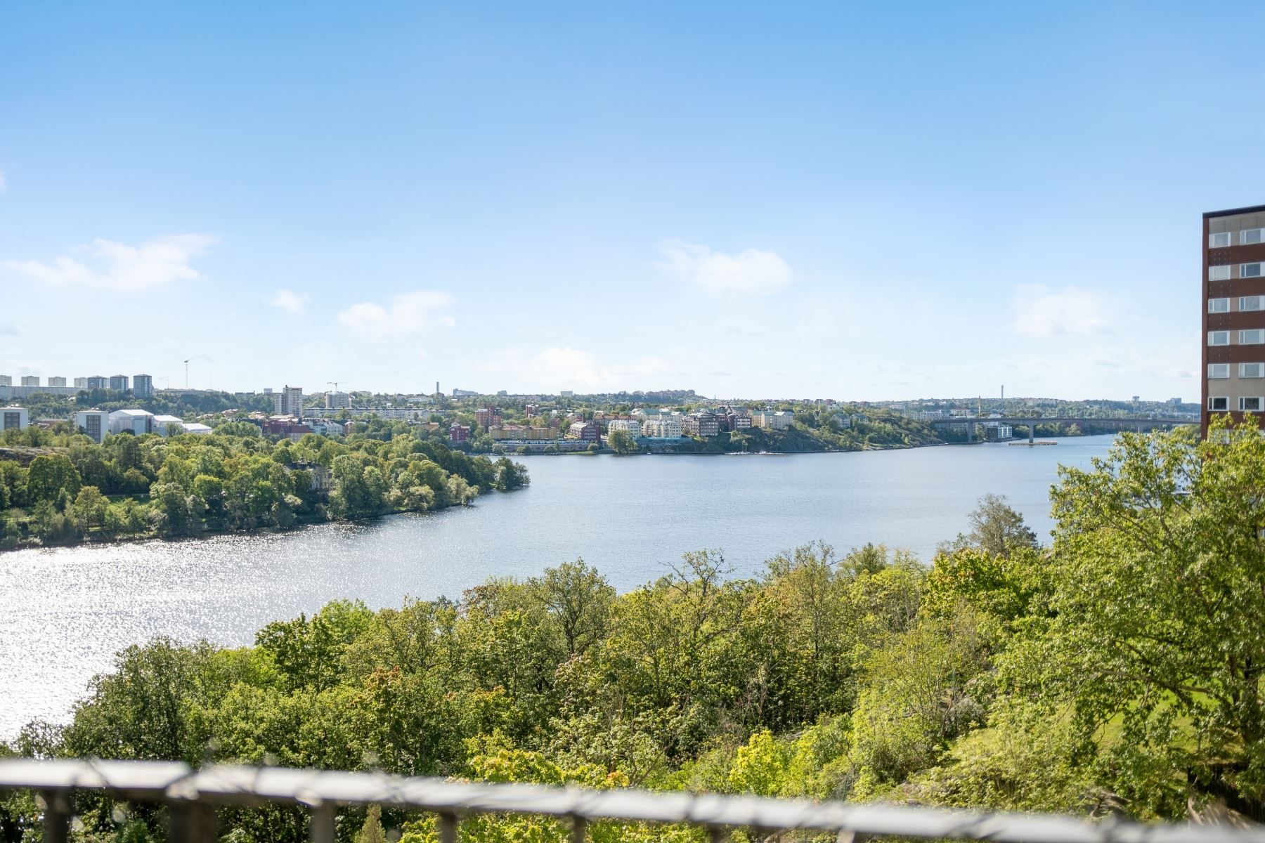 Stilfull 4:a med solig balkong, utsikt över Mälaren och genomtänkt planlösning.