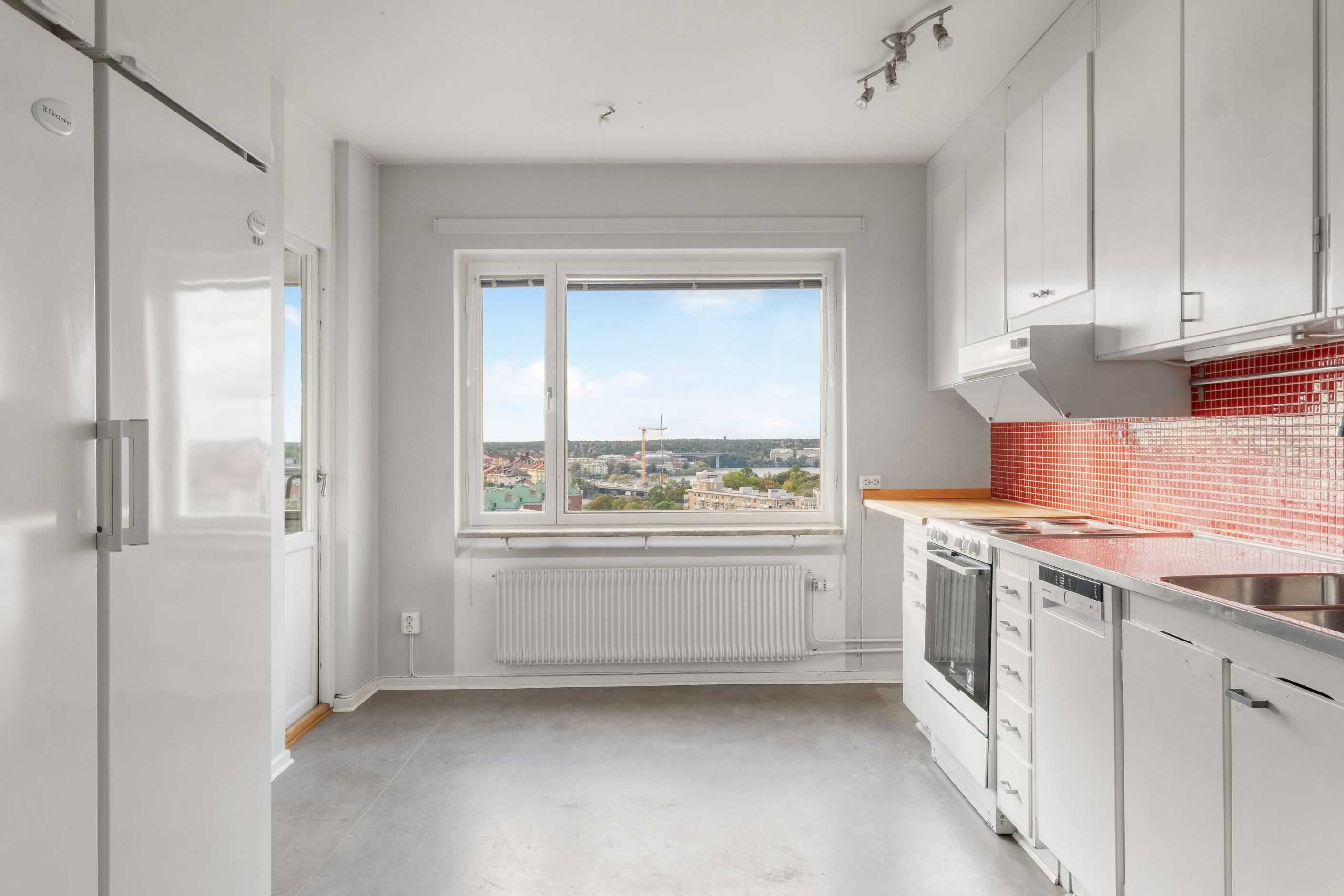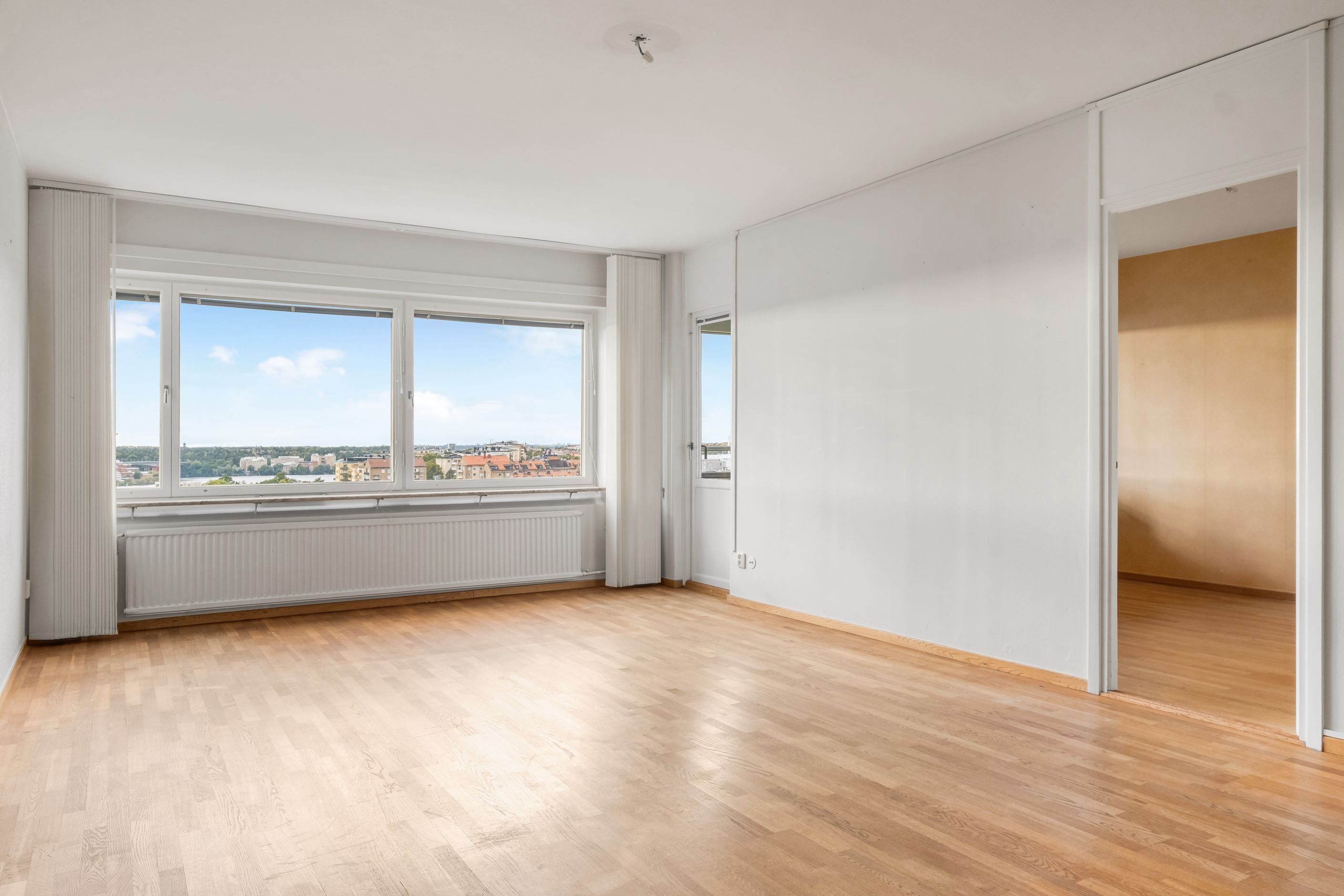 På uppdrag av Brf Silvieberg säljs nu denna attraktiva 4:a på åttonde våningen med en makalös utsikt i två väderstreck. Här bor du ostört och insynsskyddat, omgiven av stora fönsterpartier som låter ljuset flöda in och bjuder på milsvida vyer över Riddarfjärden, Mälarens inlopp och Stockholms takåsar. Lägenheten är i behov av renovering så här finns det chans att skapa din drömbostad.