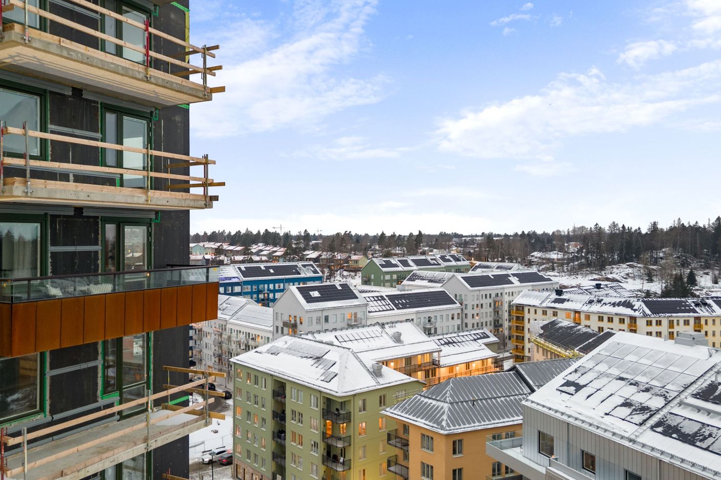 5 rum och kök med vy väntar högst upp i huset – Vyns största hem på 124 kvm, där dubbla balkonger i två väderstreck gör varje dag till något extra.