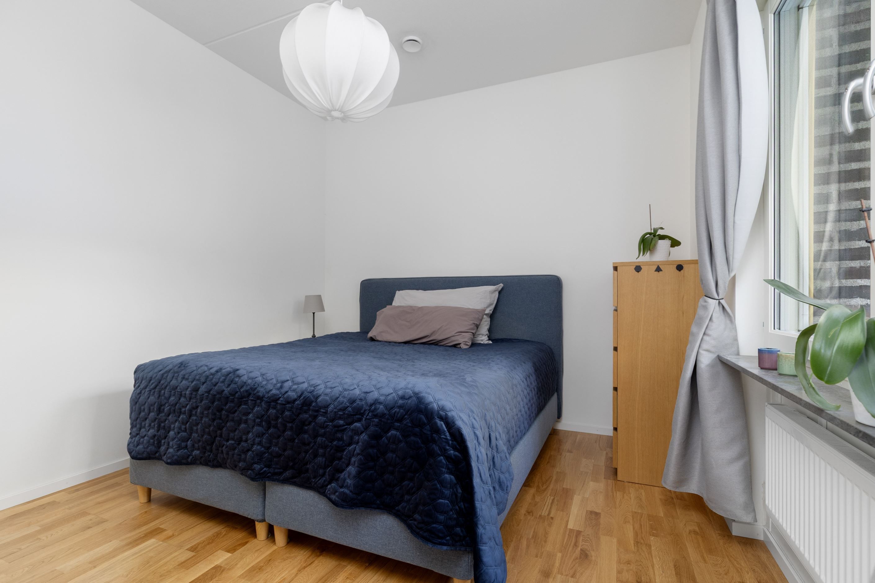Sovrummet är rofyllt och välplanerat med plats för dubbelsäng och förvaring. Här finns goda möjligheter att skapa en harmonisk och privat del av bostaden.