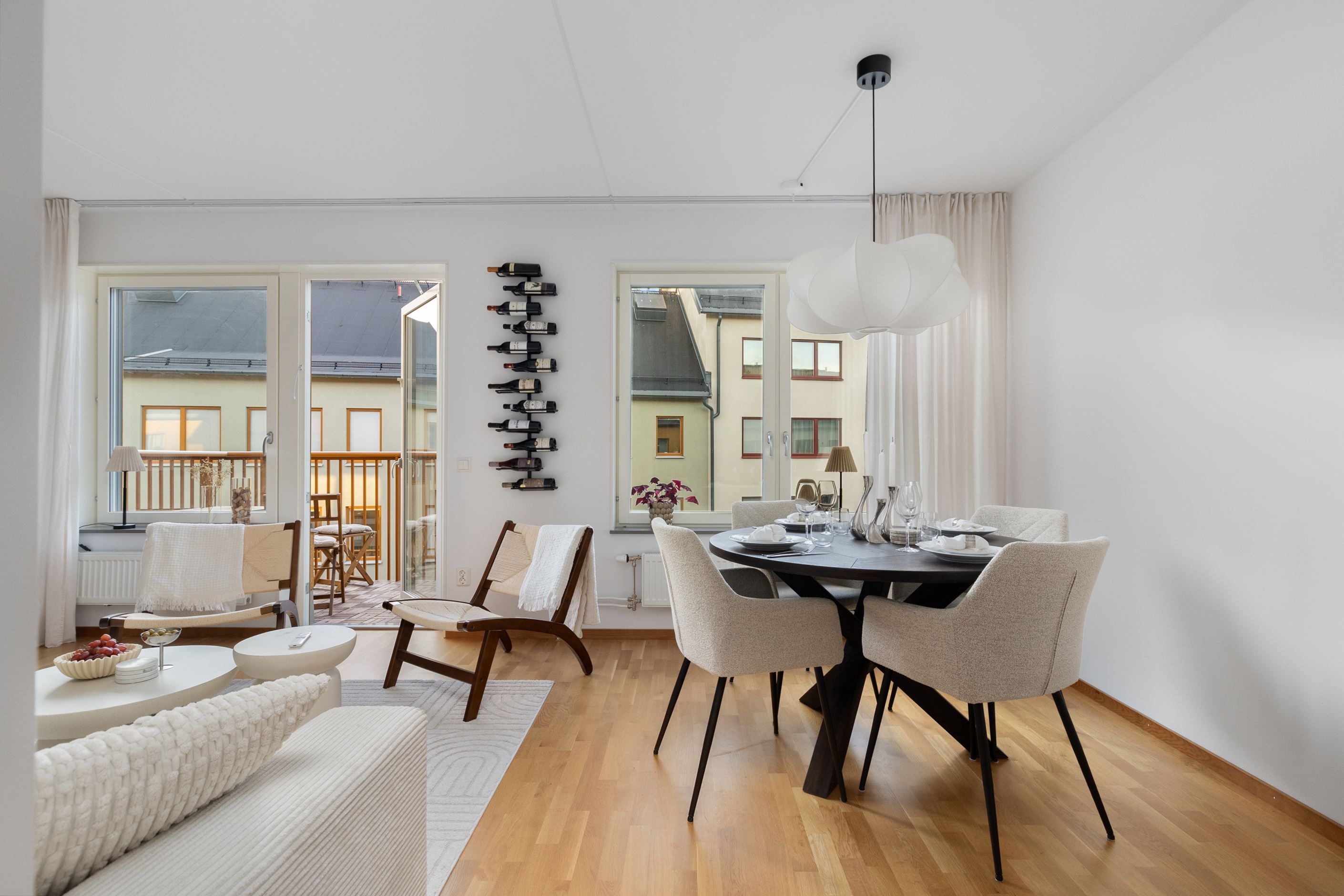 Välkommen till ett hem där stilren design möter funktion och komfort! Denna ljusa och moderna tvåa, färdigställd 2023 ligger i ett lugnt och soligt läge med balkong mot föreningens trevliga innergård, perfekt för morgonkaffet eller sena sommarkvällar.