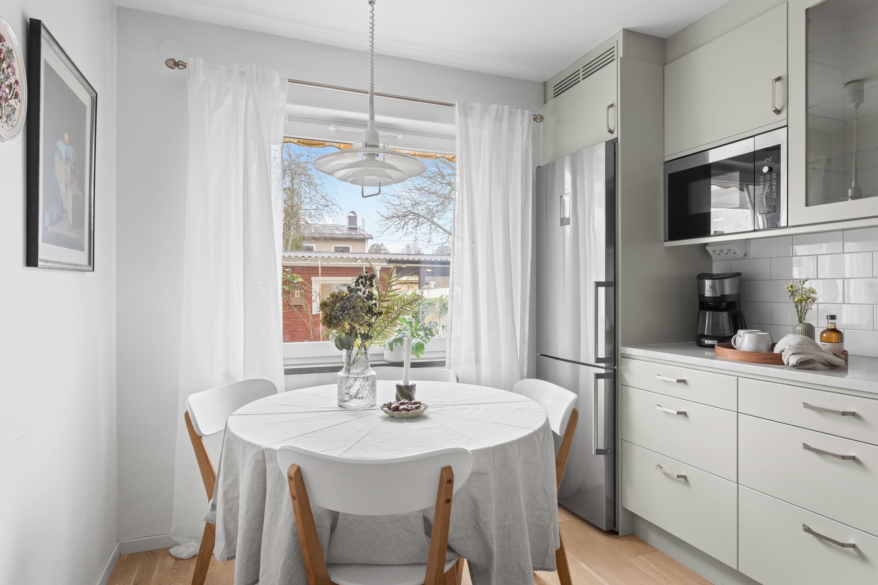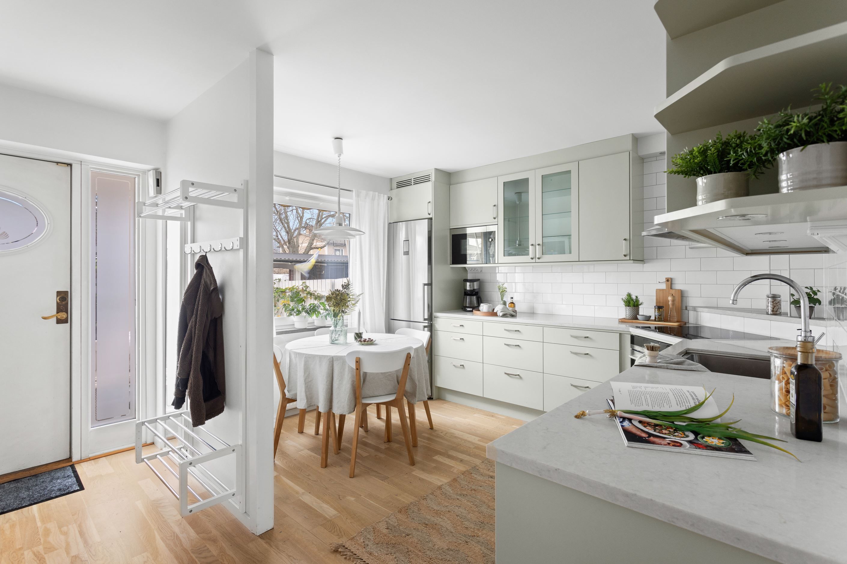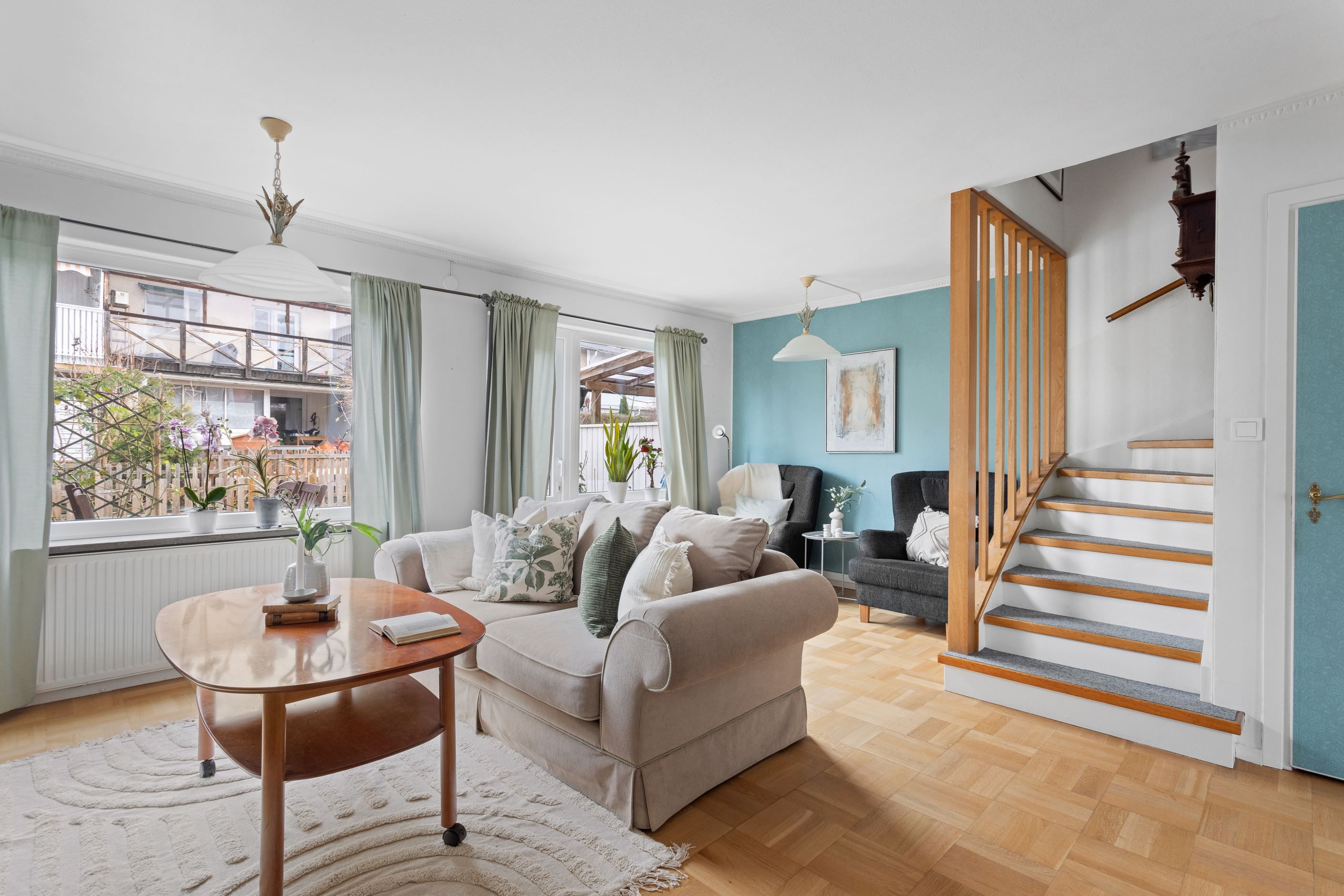 Trivsamt, yteffektivt radhus med ultimat planlösning i riktigt gott och fint renoverat skick, belägen på en fin och lättskött tomt, solig baksida med uteplats och trädgårdstäppa. Gott skick och förbättringar i form av nya fönster, dörrar och energisnåla element bidrar till låga uppvärmningskostnader och därmed låga boendekostnader. Här väntar ett centralt beläget, men ändå lugnt radhusliv där ni tack vare tidigare ägares omfattande renoveringar bara kan flytta in och bo. Gångavstånd till pendeltåg som på 18min tar dig in till Odenplan. I Jakobsberg C har du diverse butiker, apotek, bibliotek, restauranger, café och en stor nyrenoverad mataffär. Här bor du centralt men inte mitt i centrum utan med lite distans vilket skapar en trygghet om kvällarna.