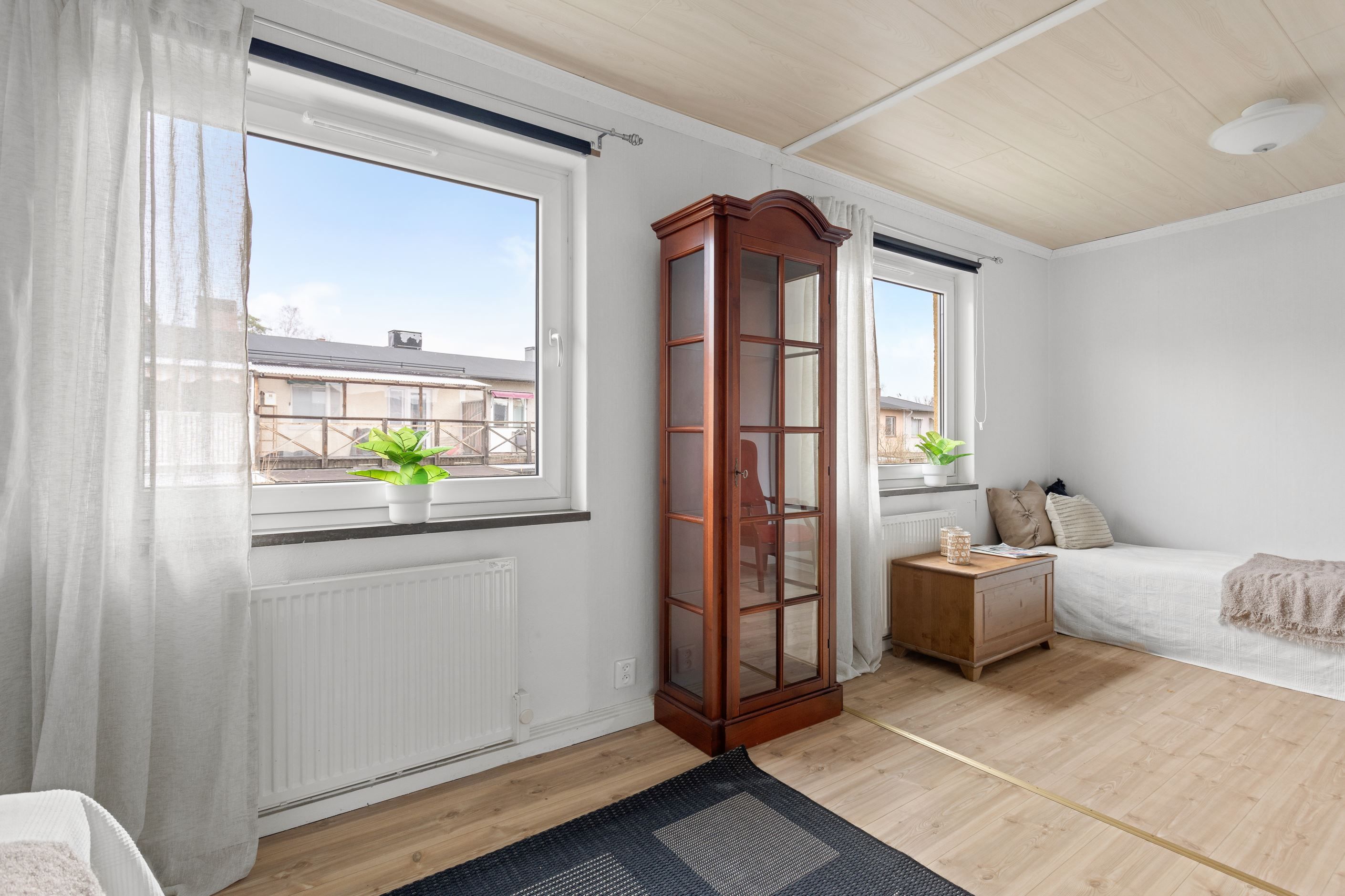 - Goda förvaringsmöjligheter på vind samt externt förråd