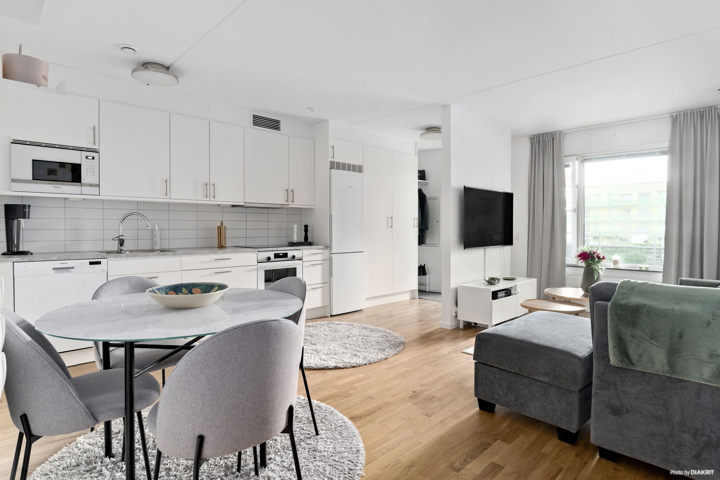 Varmt välkommen till denna fina pärla i Partilles mittpunkt. Smakfullt och ljust med öppen planlösning som låter ljus och rymd komma till sin rätt. Genom en elegant entré kommer vi upp till en loftgång som känns välkomnande och tillgänglig samtidigt som den är privat och exklusiv för föreningens medlemmar och speciellt utvalda. För dig som bor här är det väldigt smidigt att parkera i garaget under och ta hissen upp direkt till ditt våningsplan eller om du väljer bort bilen tack vare läget. Helt oavsett är detta ett läge att njuta av, lugnt och trivsamt mitt i centrum. Loftgången öppnar upp mot den lummiga gröna innergården, här möts vi av lugnet och grönskan som en oas mitt i centrum. Intill entrédörren finns plats för att ta en kopp kaffe och njuta av vyn över gården.