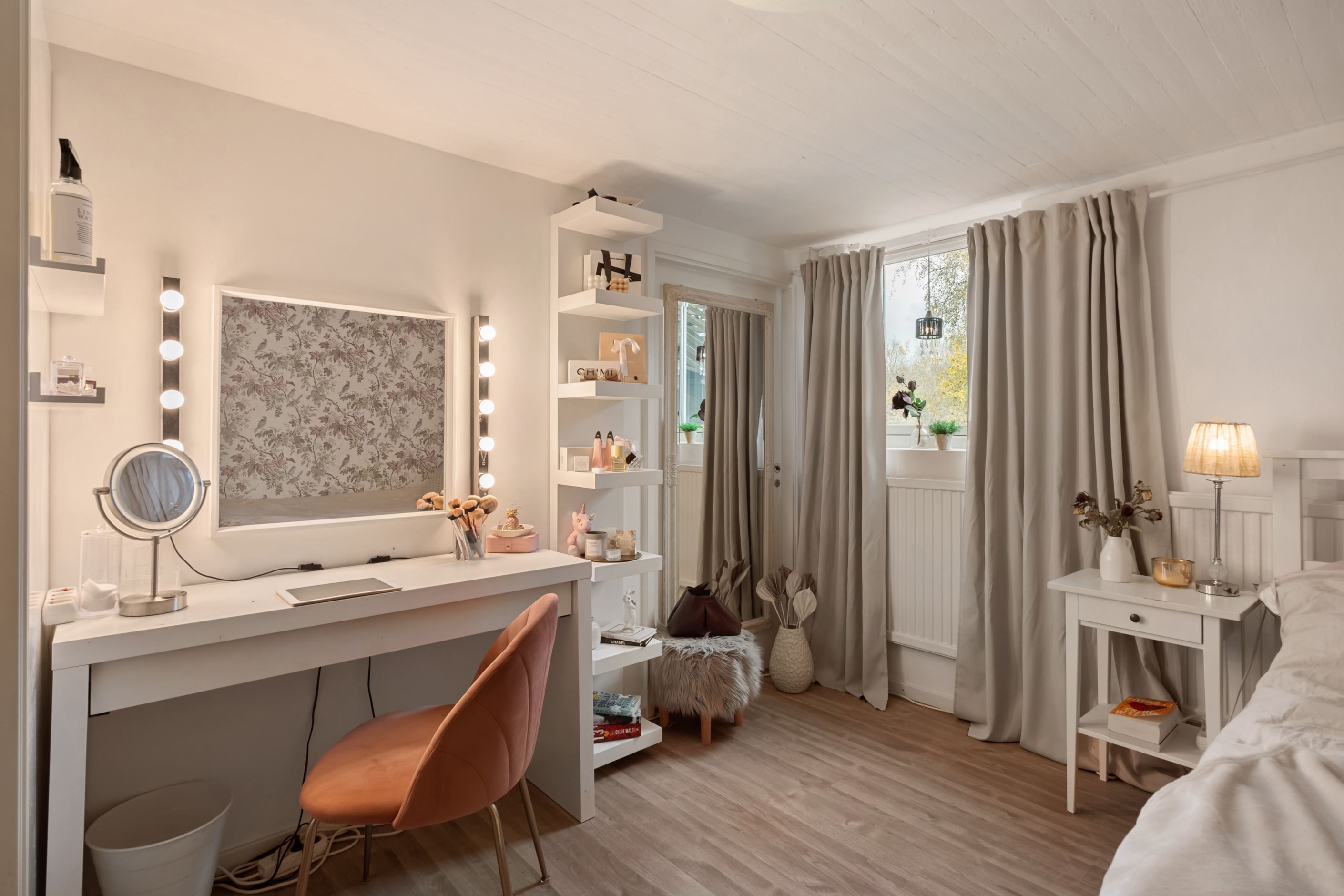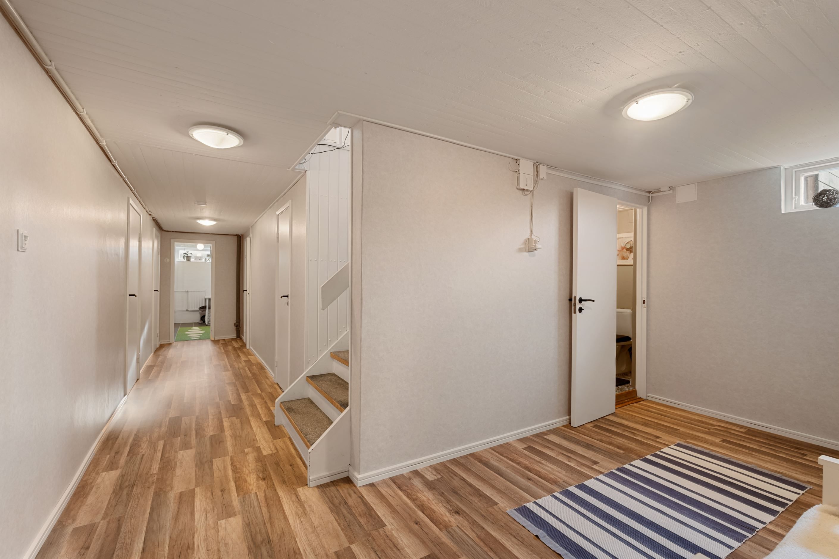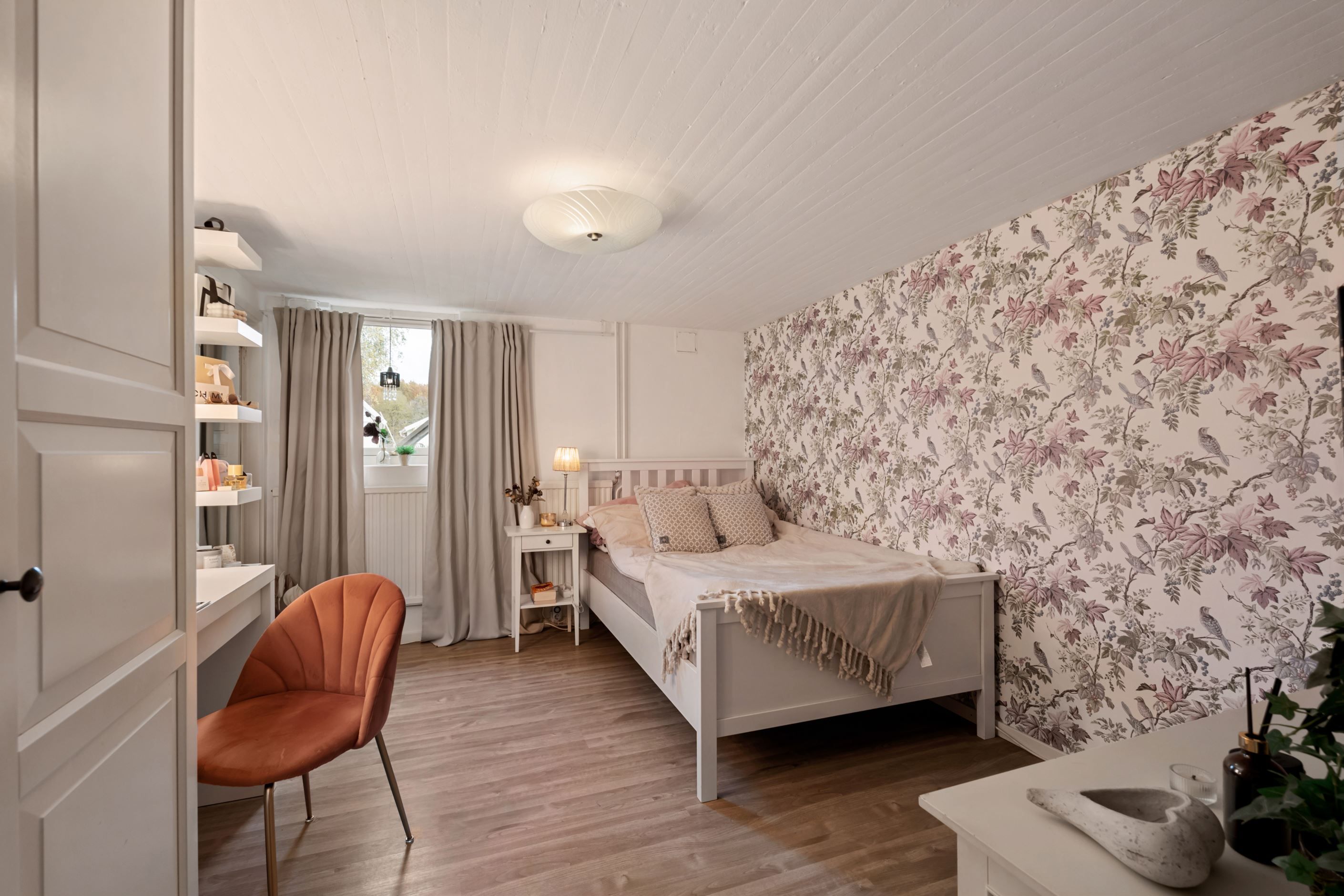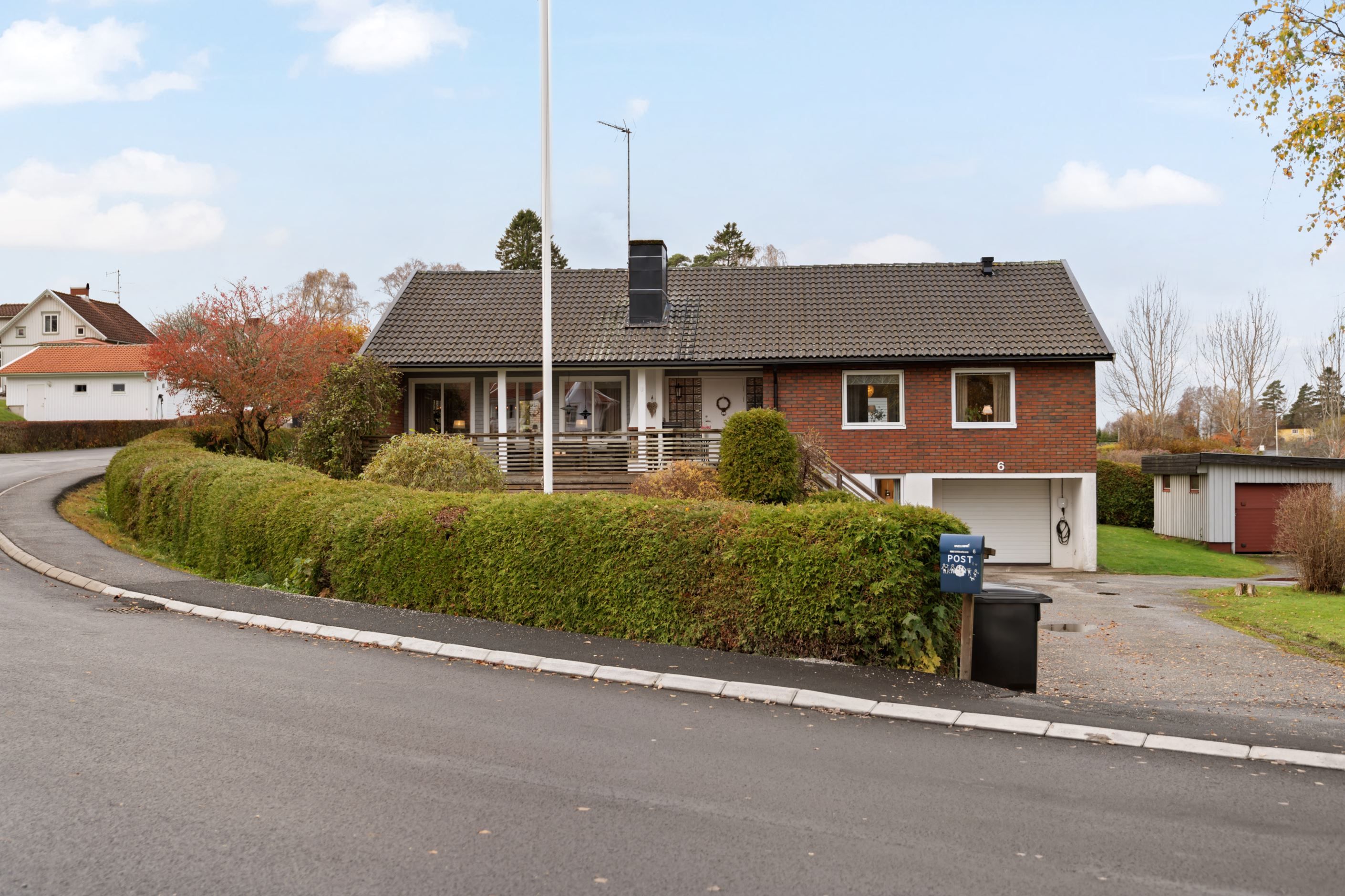 Med sina 233 kvm erbjuder bostaden sex rum, varav fyra sovrum, vilket ger gott om utrymme för både familj, arbete och fritid. I källarplanet finns dessutom biorum, gott om förvaringsmöjligheter samt garage med direkt ingång till huset. Ett fristående garage på tomten ger extra plats för bil, verkstad eller hobby.