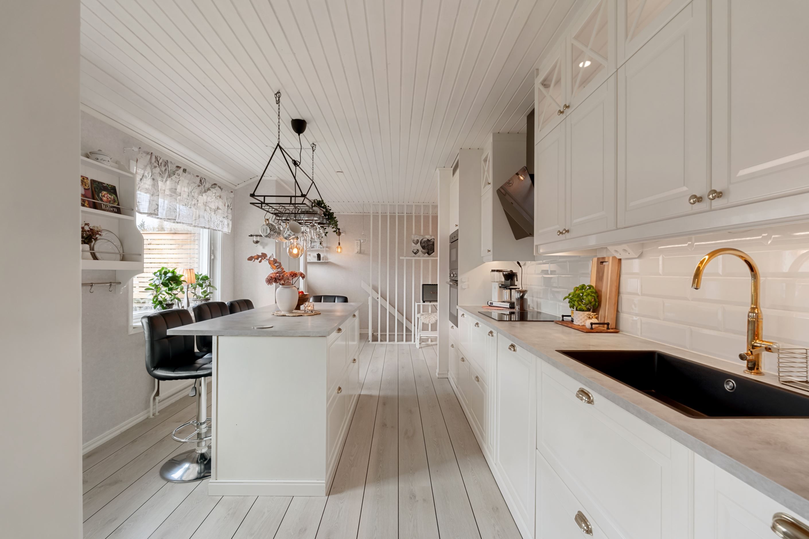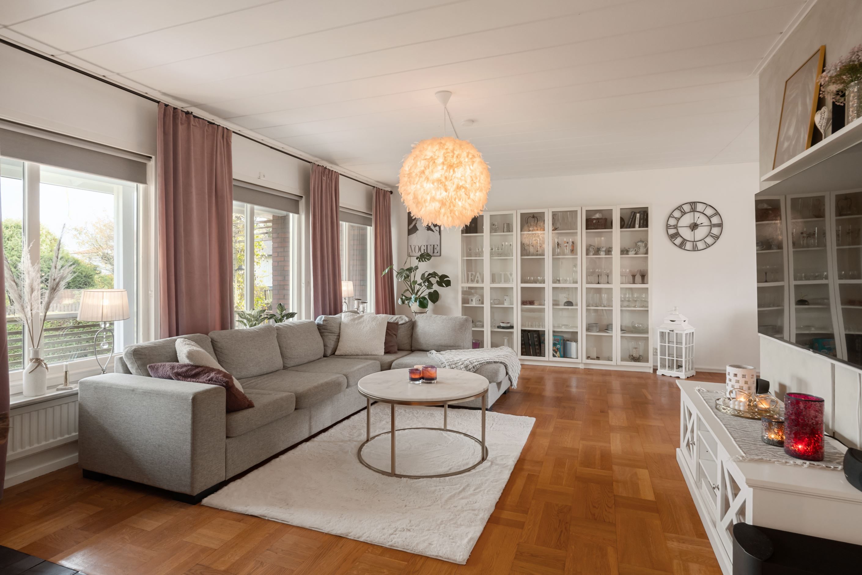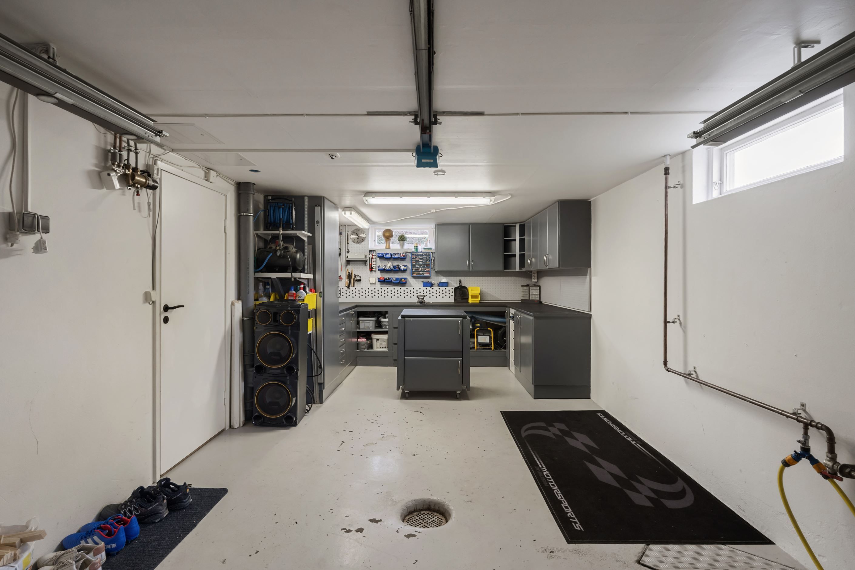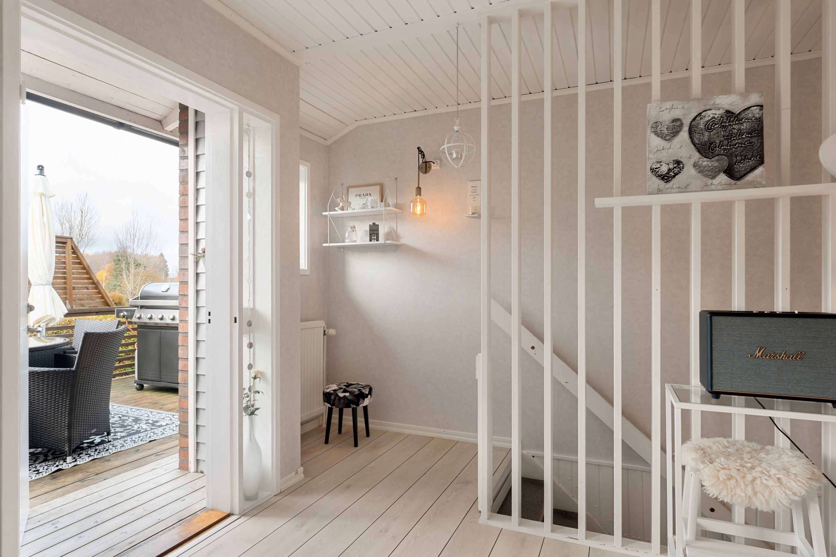Med sina 233 kvm erbjuder bostaden sex rum, varav fyra sovrum, vilket ger gott om utrymme för både familj, arbete och fritid. I källarplanet finns dessutom biorum, gott om förvaringsmöjligheter samt garage med direkt ingång till huset. Ett fristående garage på tomten ger extra plats för bil, verkstad eller hobby.