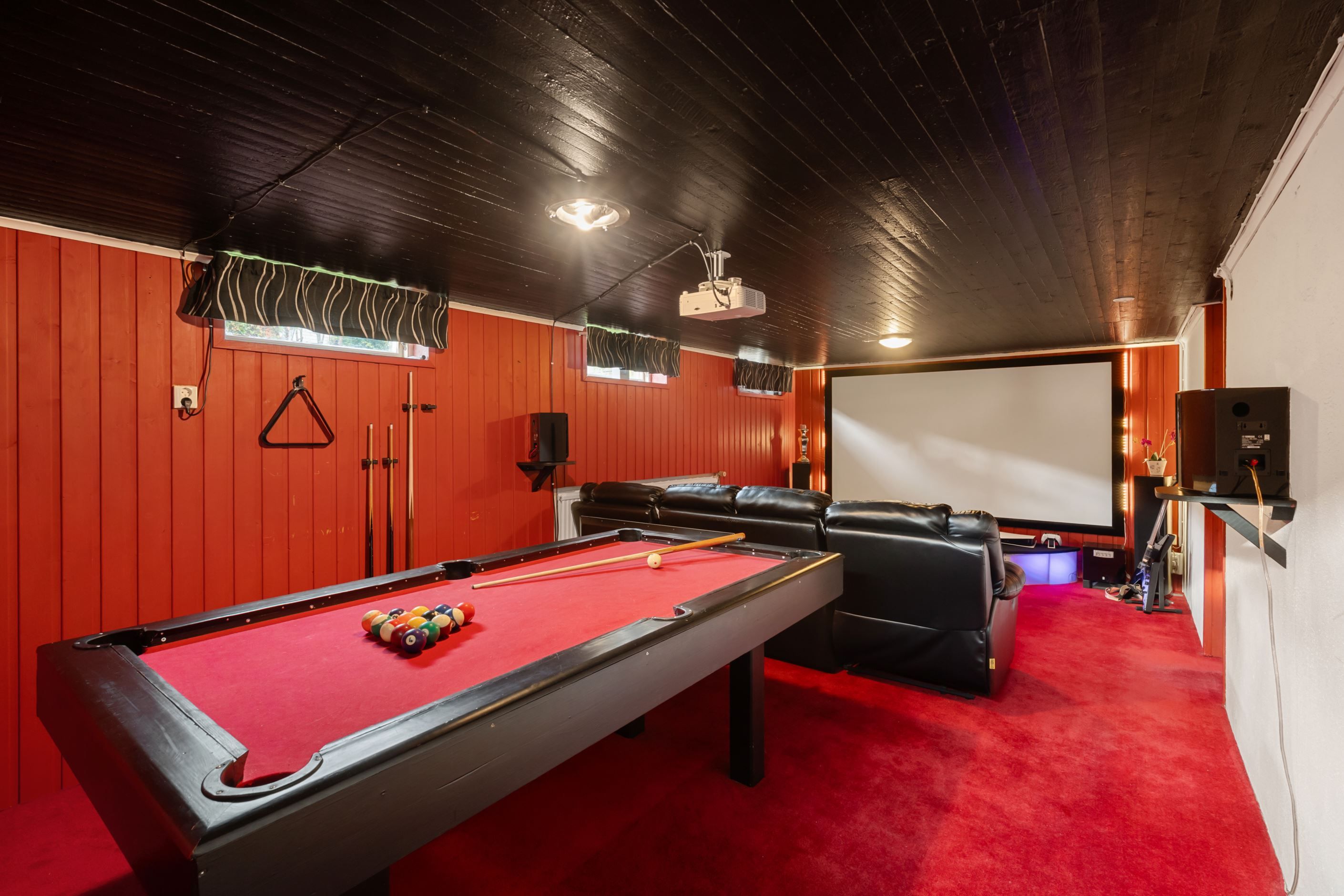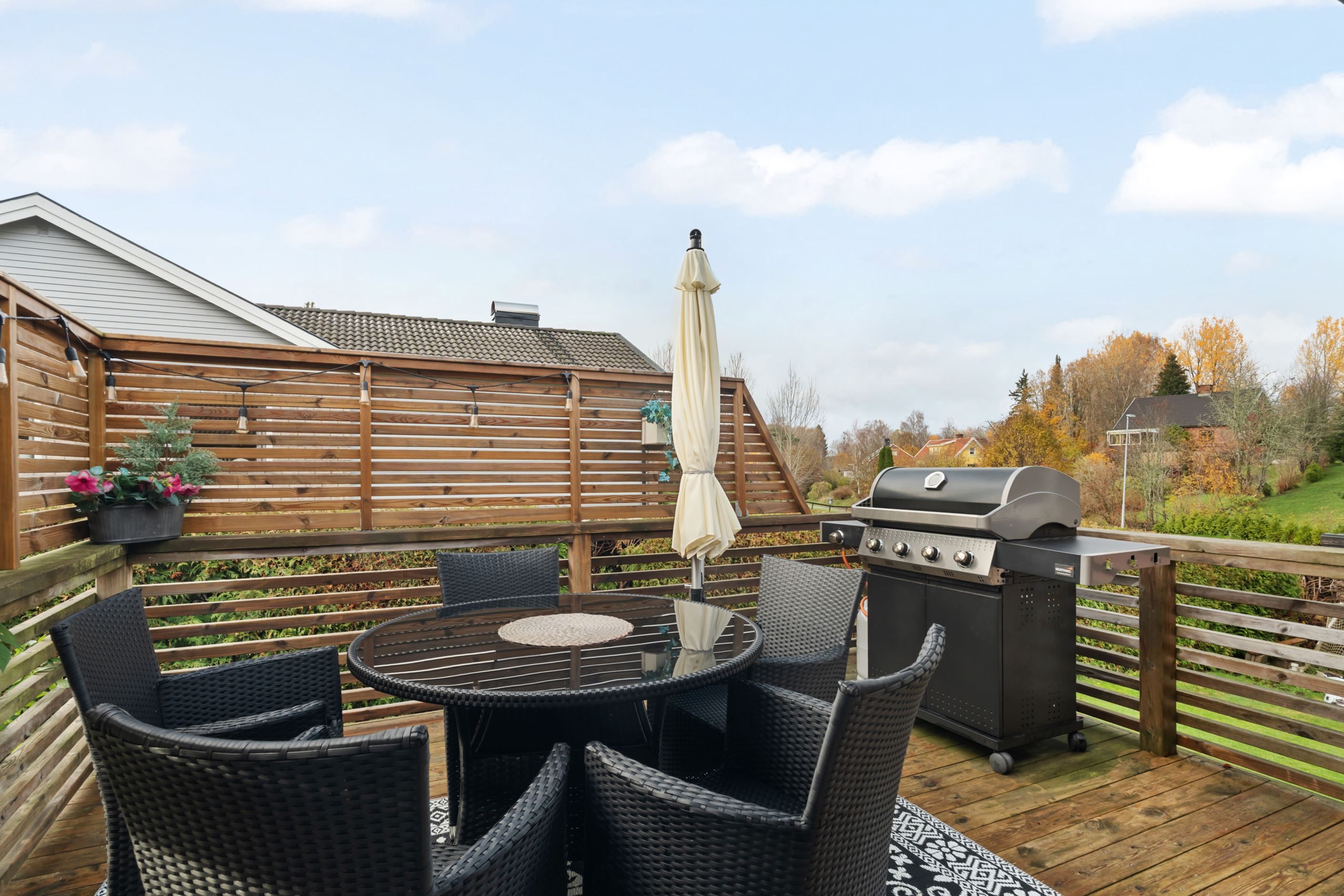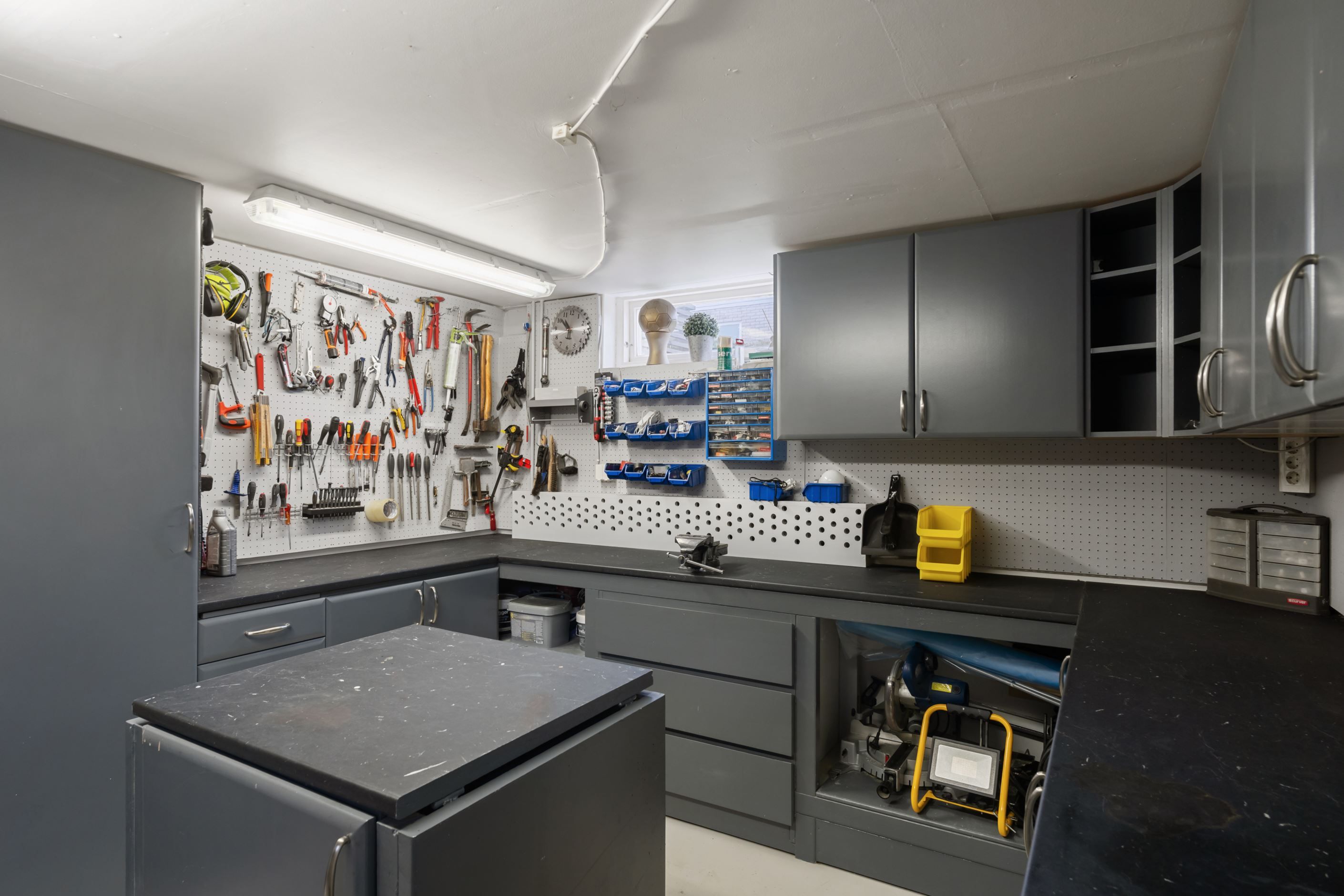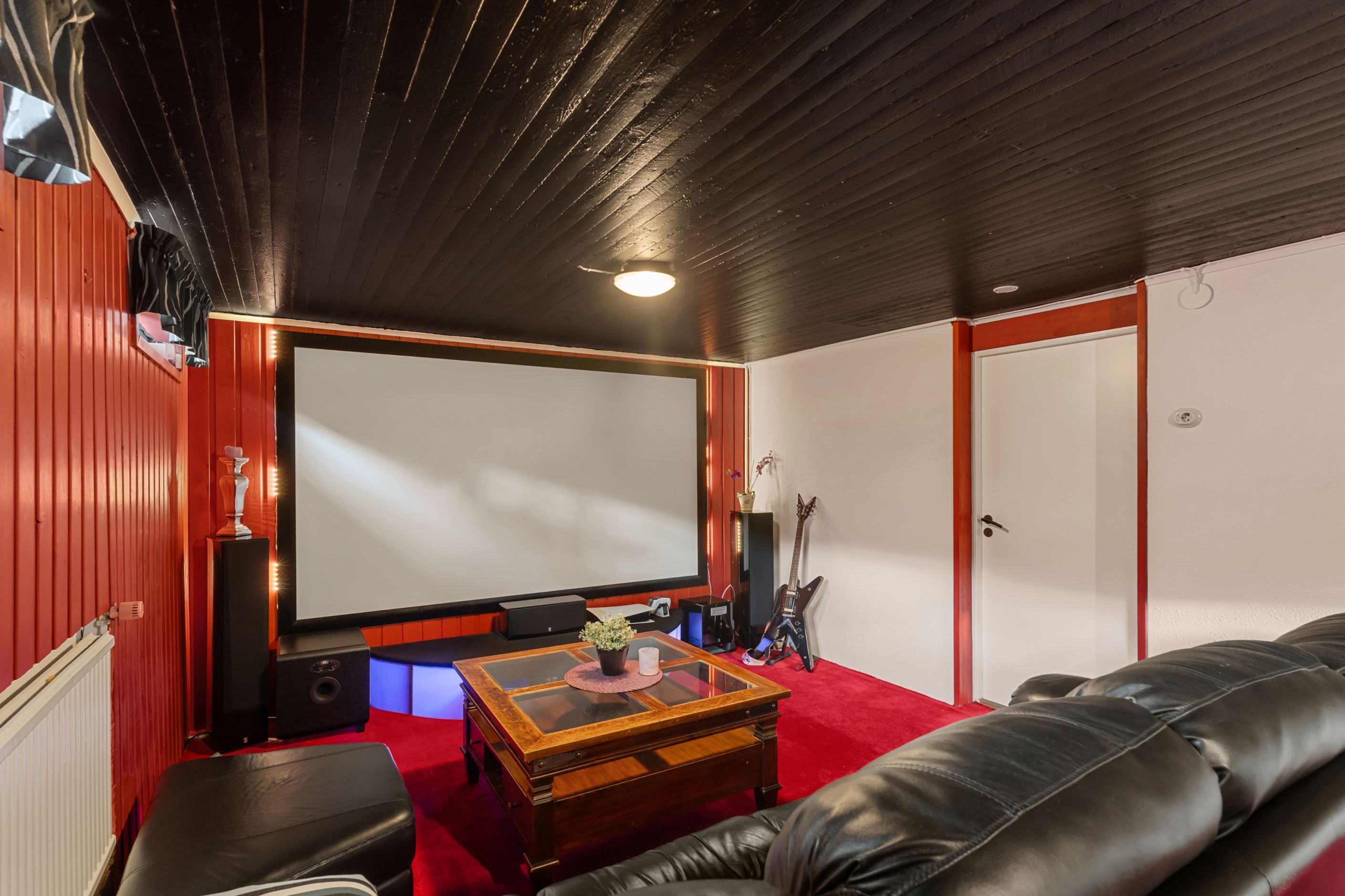 Med sina 233 kvm erbjuder bostaden sex rum, varav fyra sovrum, vilket ger gott om utrymme för både familj, arbete och fritid. I källarplanet finns dessutom biorum, gott om förvaringsmöjligheter samt garage med direkt ingång till huset. Ett fristående garage på tomten ger extra plats för bil, verkstad eller hobby.