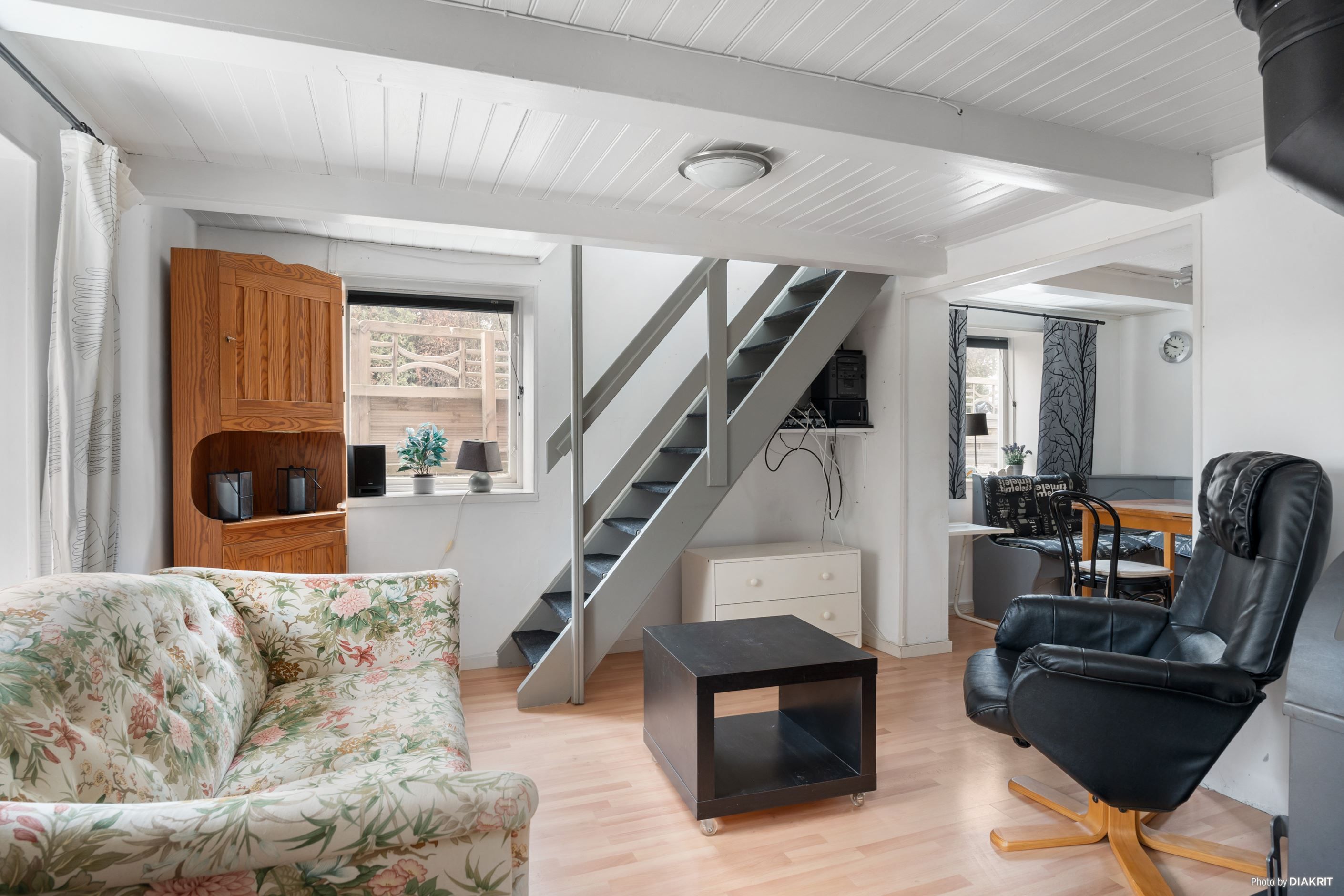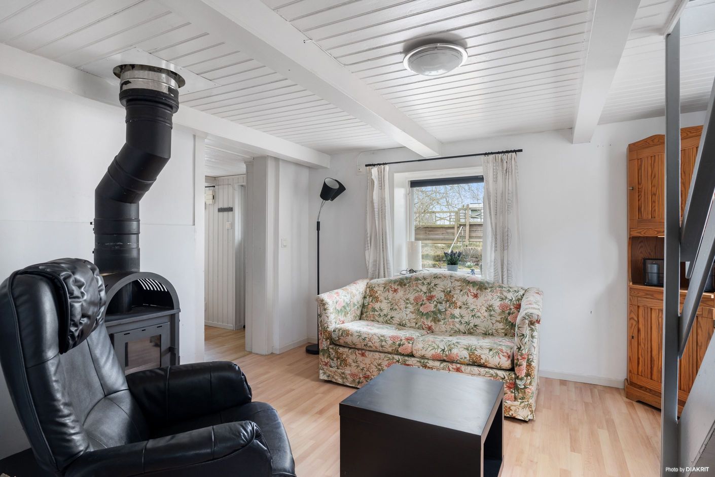 Invändigt möts du av en inbjudande atmosfär där en trevlig kamin skänker både värme och stämning under kyliga dagar. Här kan du njuta av mysiga kvällar med familjen eller ensam med en god bok. För den som behöver extra förvaringsutrymme finns gott om förråd, vilket gör det enkelt att hålla ordning och reda.