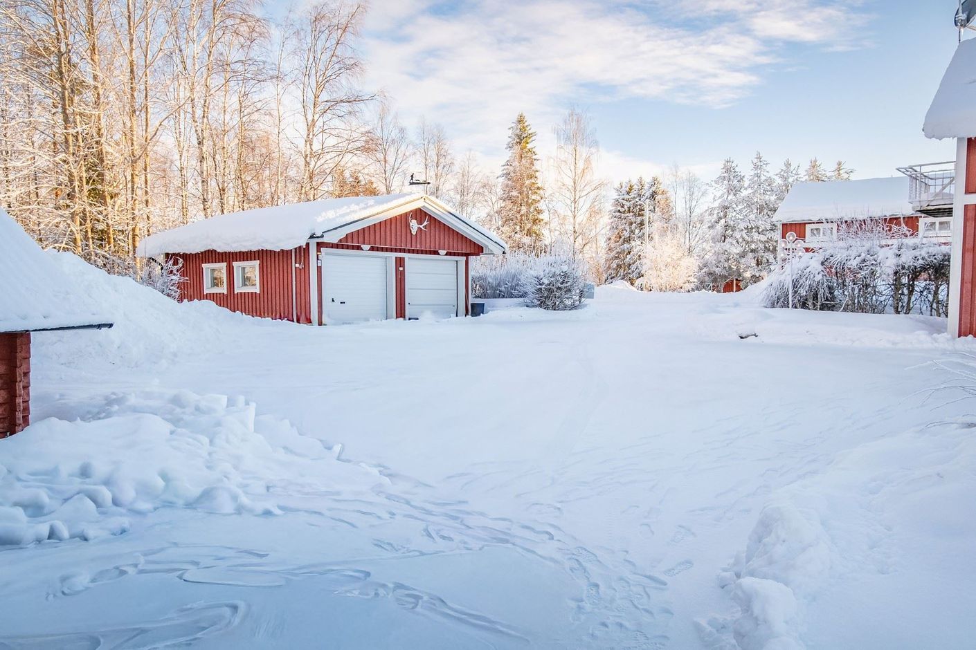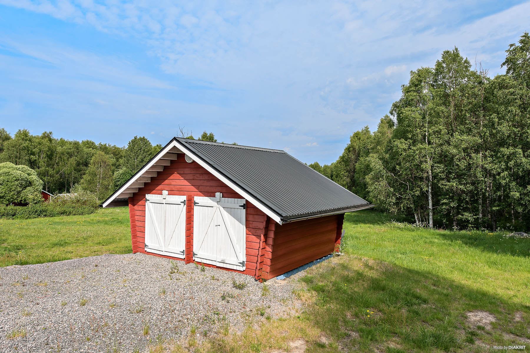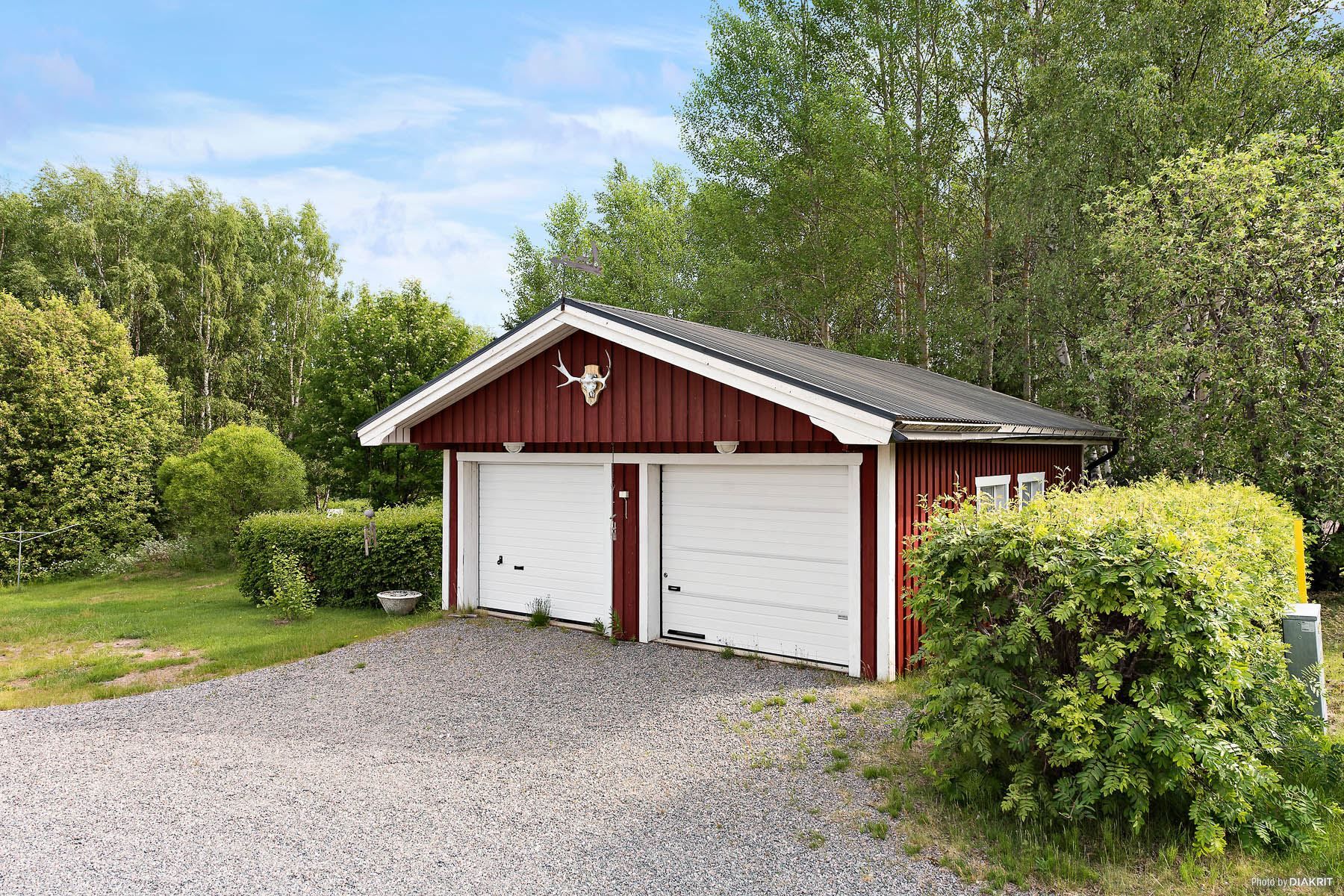 Fastigheten inkluderar ett rymligt dubbelgarage, perfekt för att rymma fordon, verktyg och hobbyutrustning. På gården finns även en lada.