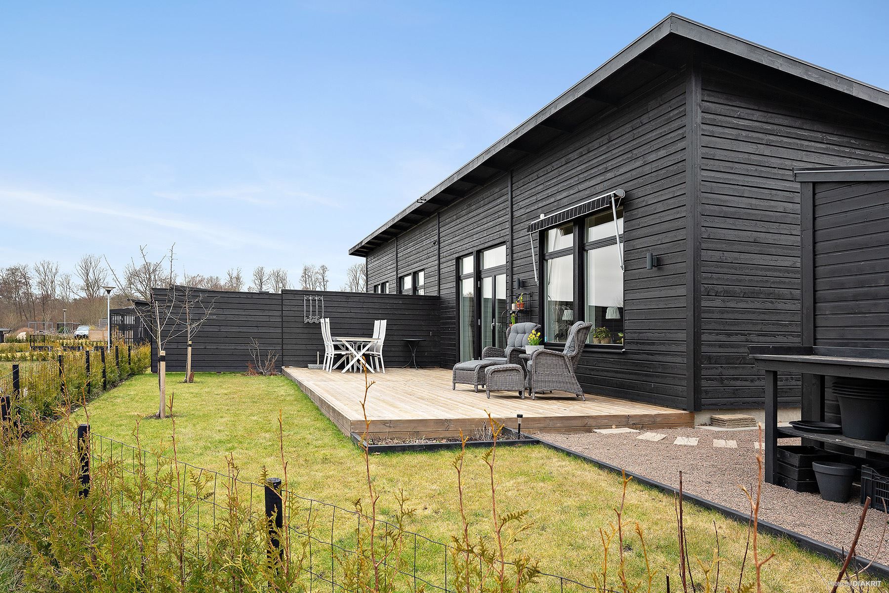 Uteplatsen i söder erbjuder ett rejält trädäck och avkopplande utsikt över trädtopparna!