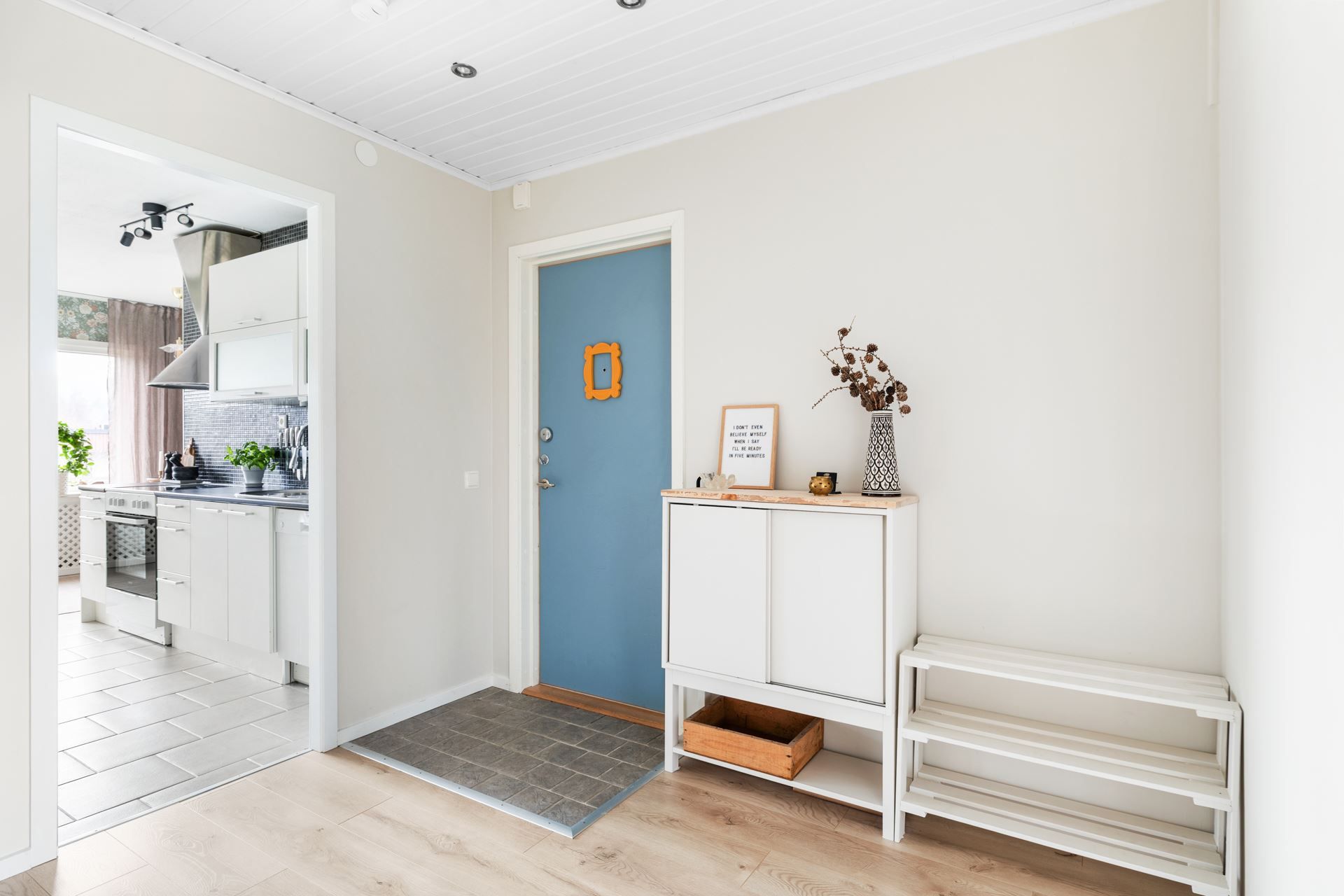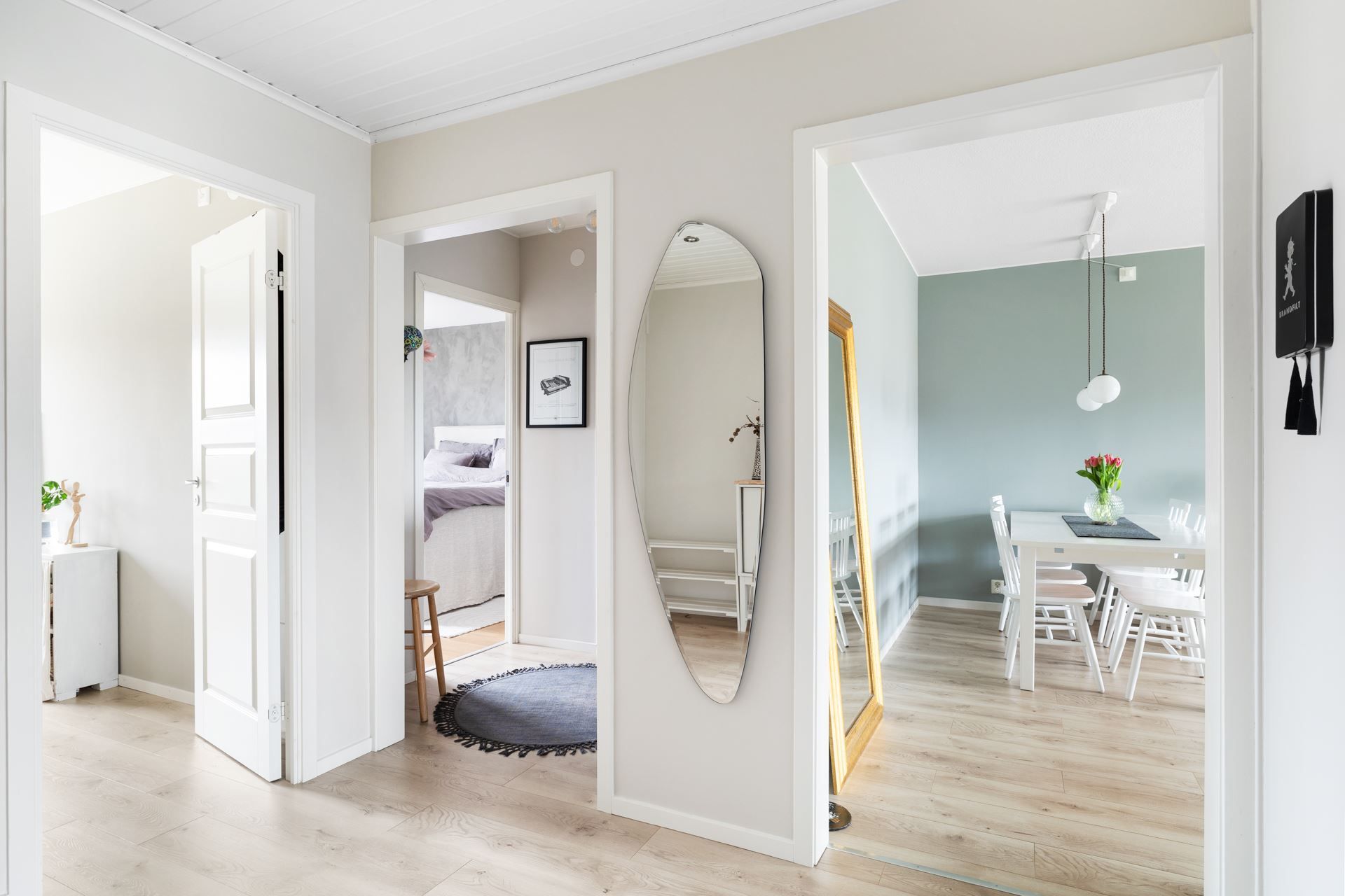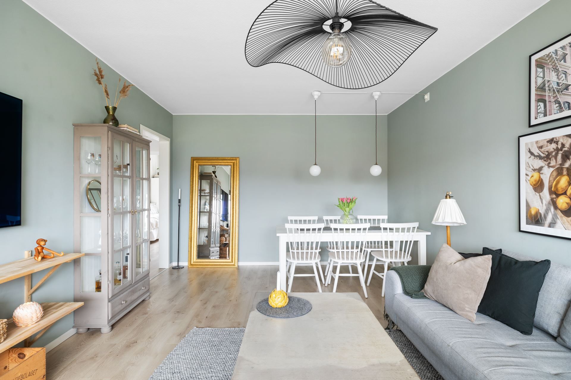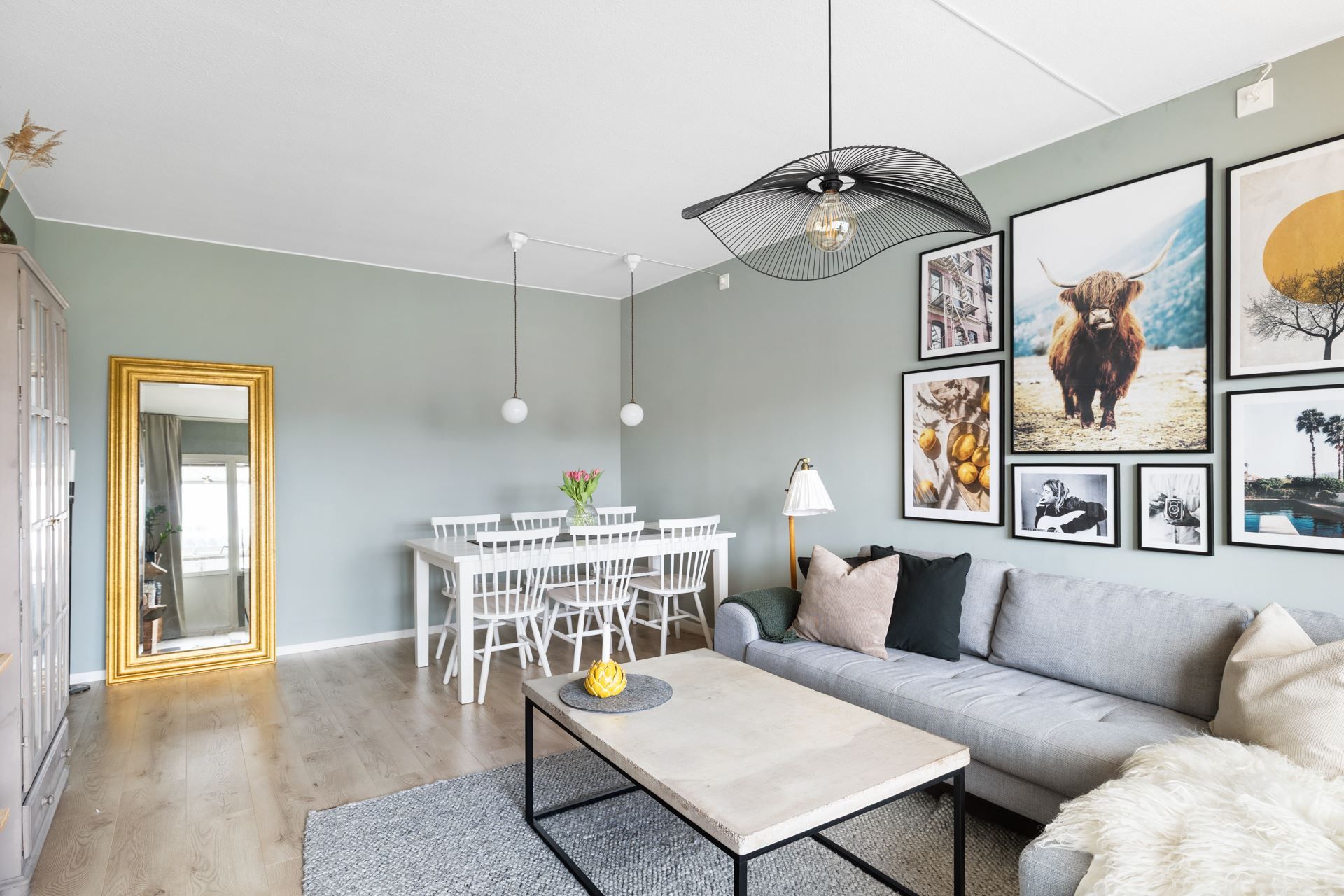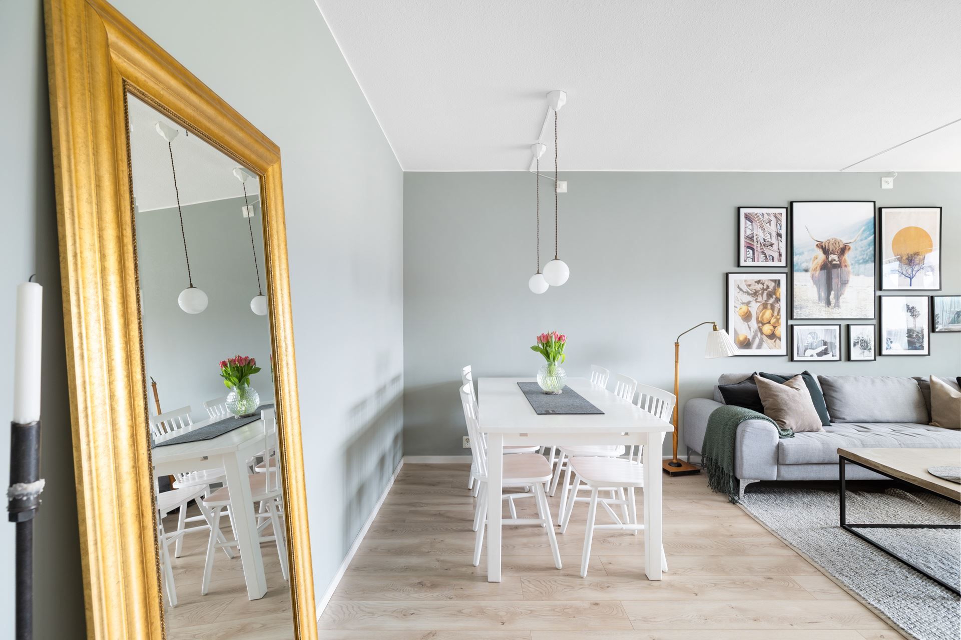 Hallen är välkomnande med vackert ljusinsläpp från två håll. Köket är funktionellt och välplanerat med gott om förvaring och arbetsytor. Naturlig matplats där hela familjen ryms. Vardagsrummet erbjuder gott om plats för både soffgrupp och umgänge, och den öppna känslan gör rummet lättmöblerat. Härifrån når du även balkongen, och genom fönstren får du utsikt mot grönska och föreningens aktivitetsytor. Badrummet är inrett i sobra toner, bjuder badkar och tvättmaskin som löser vardagstvätten ypperligt.