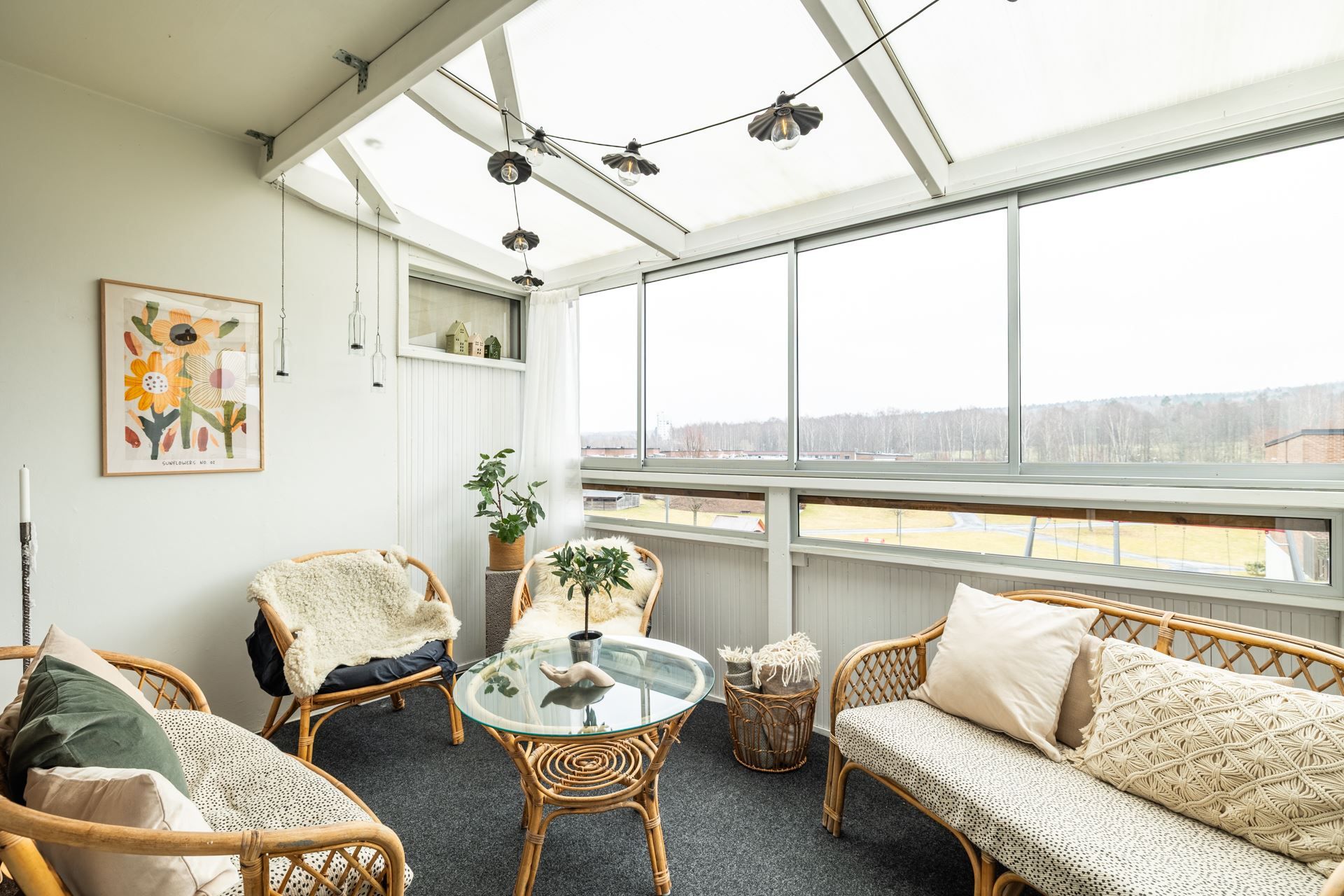 Bostaden är i gott skick och har ett trevligt läge i föreningen. Denna fyrarummare disponeras idag som tre rum och här finns dessutom två balkonger, vilket ger fina möjligheter att följa solen under dagen. Den ena balkongen är inglasad och generöst tilltagen – en plats där hela familjen ryms runt bordet eller där du kan skapa en avslappnad loungekänsla med utemöbler. Tack vare inglasningen kan balkongen användas under stora delar av året. Den andra balkongen i västerläge är inte inglasad och är underbar att sitta på kvällstid när solen börjar gå ner.