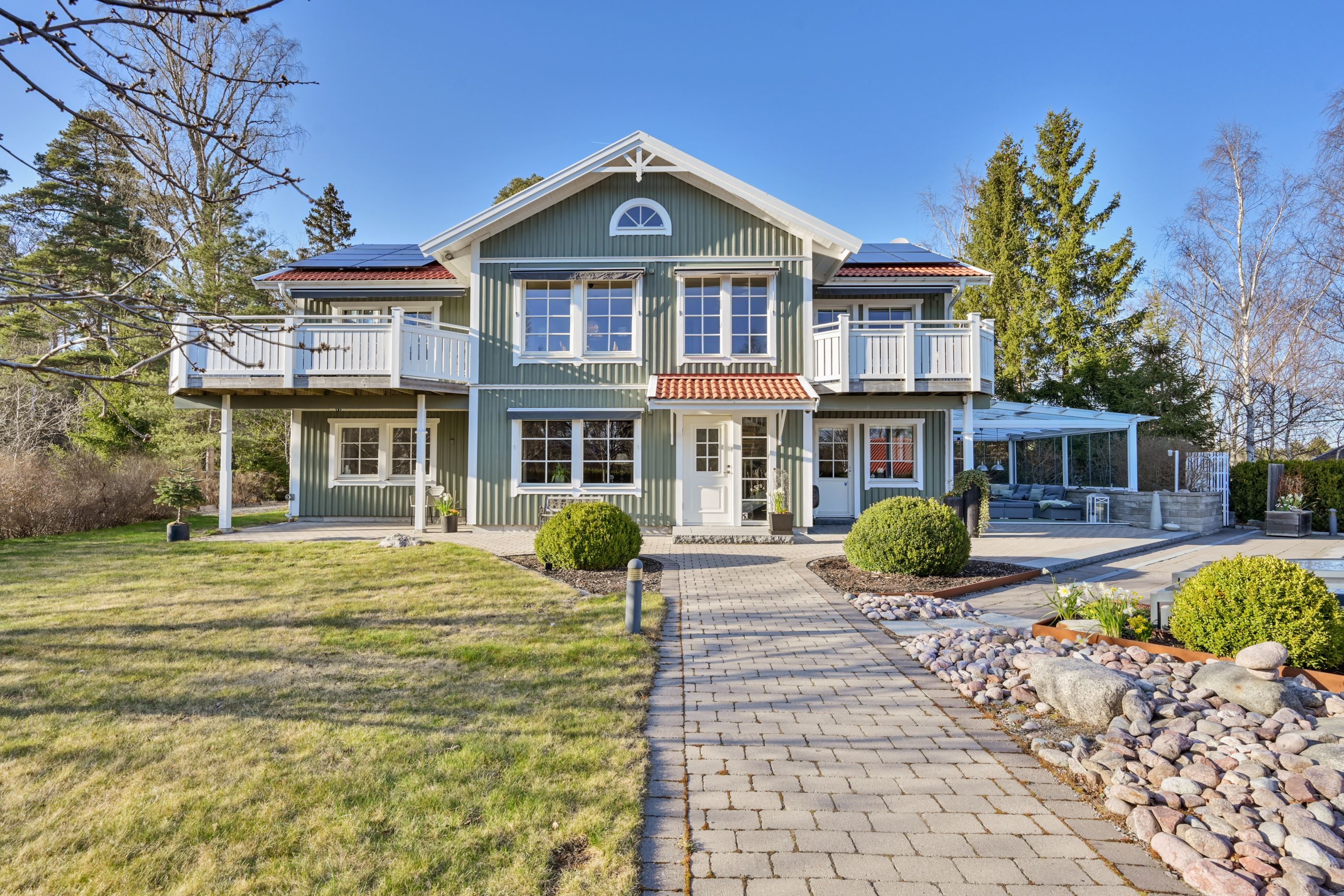 Välkommen till denna enastående fastighet på Norrö – en plats där genomtänkt design, komfort och naturskön omgivning samspelar i perfekt harmoni. Till den natursköna halvön Norrö tar du dig längs Åkers kanal genom genuin Roslagsidyll. Vägen slingrar sig rofyllt fram mellan hästhagar, ängar och charmiga kulturhistoriska byggnader, där naturen hela tiden gör sig påmind. Genom elstyrda grindar rullar du in på den imponerande uppfarten, där en vändplats framför det rymliga dubbelgaraget ger ett pampigt första intryck. Den vackra stenläggningen leder upp till det välbyggda Vårgårdahuset och den oslagbara uteplatsen med pool, inglasat uterum och utekök.