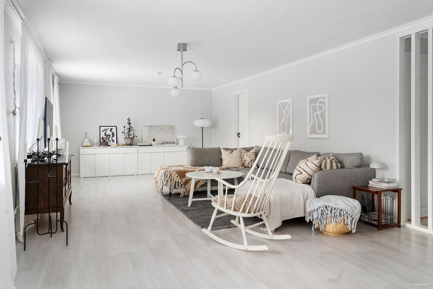 Villan om 223 kvm är fördelade på två plan och ger generös yta för familjelivet. Entréplanet erbjuder ett renoverat kök med ljusa ytskikt och skåpsluckor samt delvis nya vitvaror. Rymlig matplats intill finns för att kunna samla familj och vänner. Vardagsrummet har öppen planlösning och skapar perfekta sällskapsytor och en inbjudande atmosfär.
