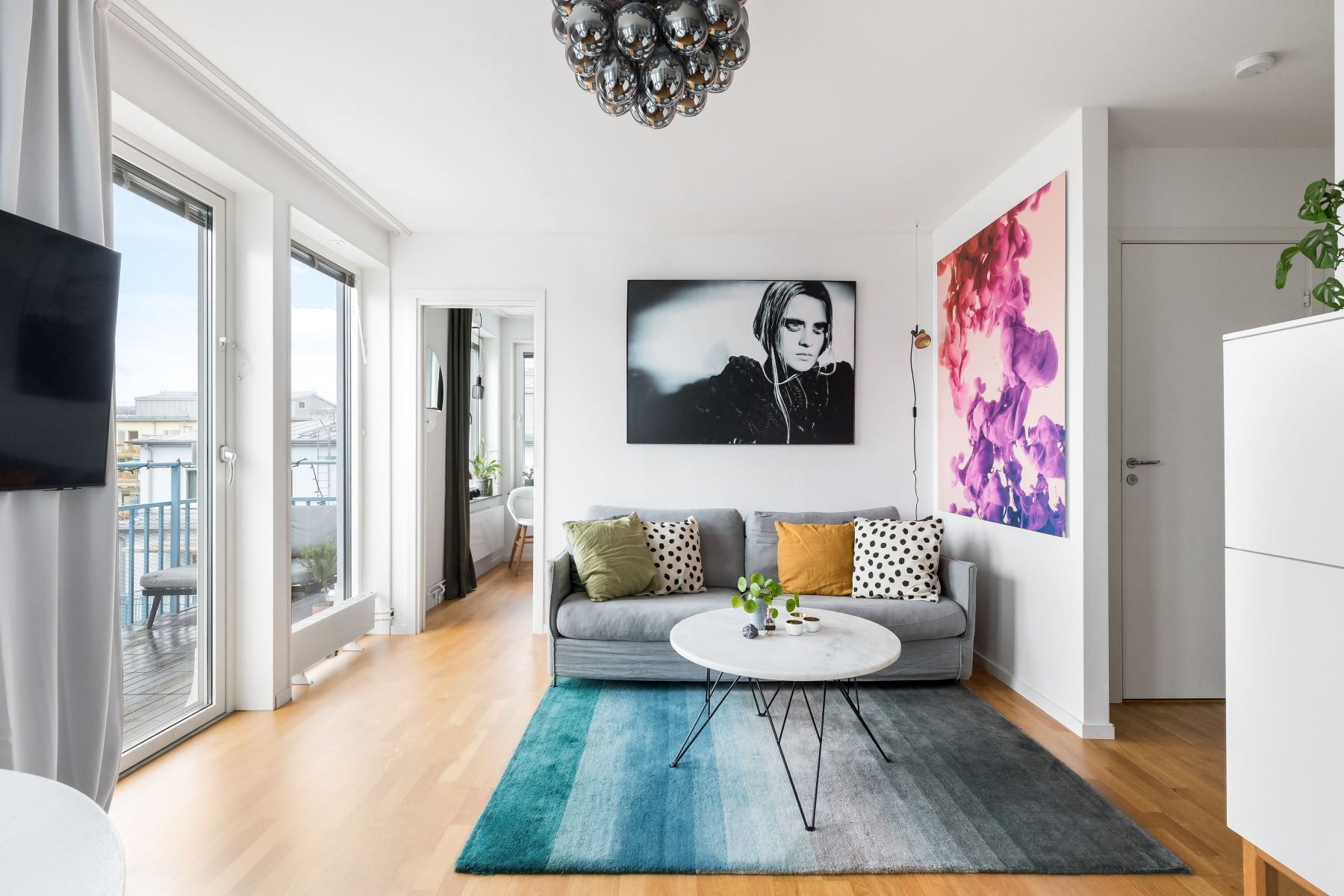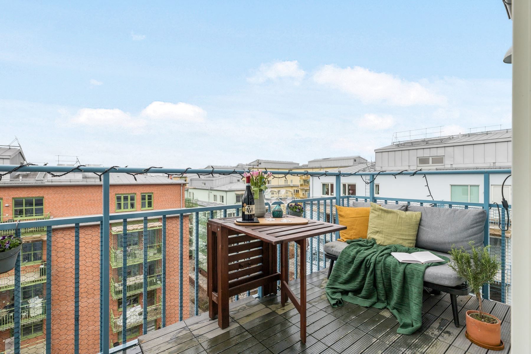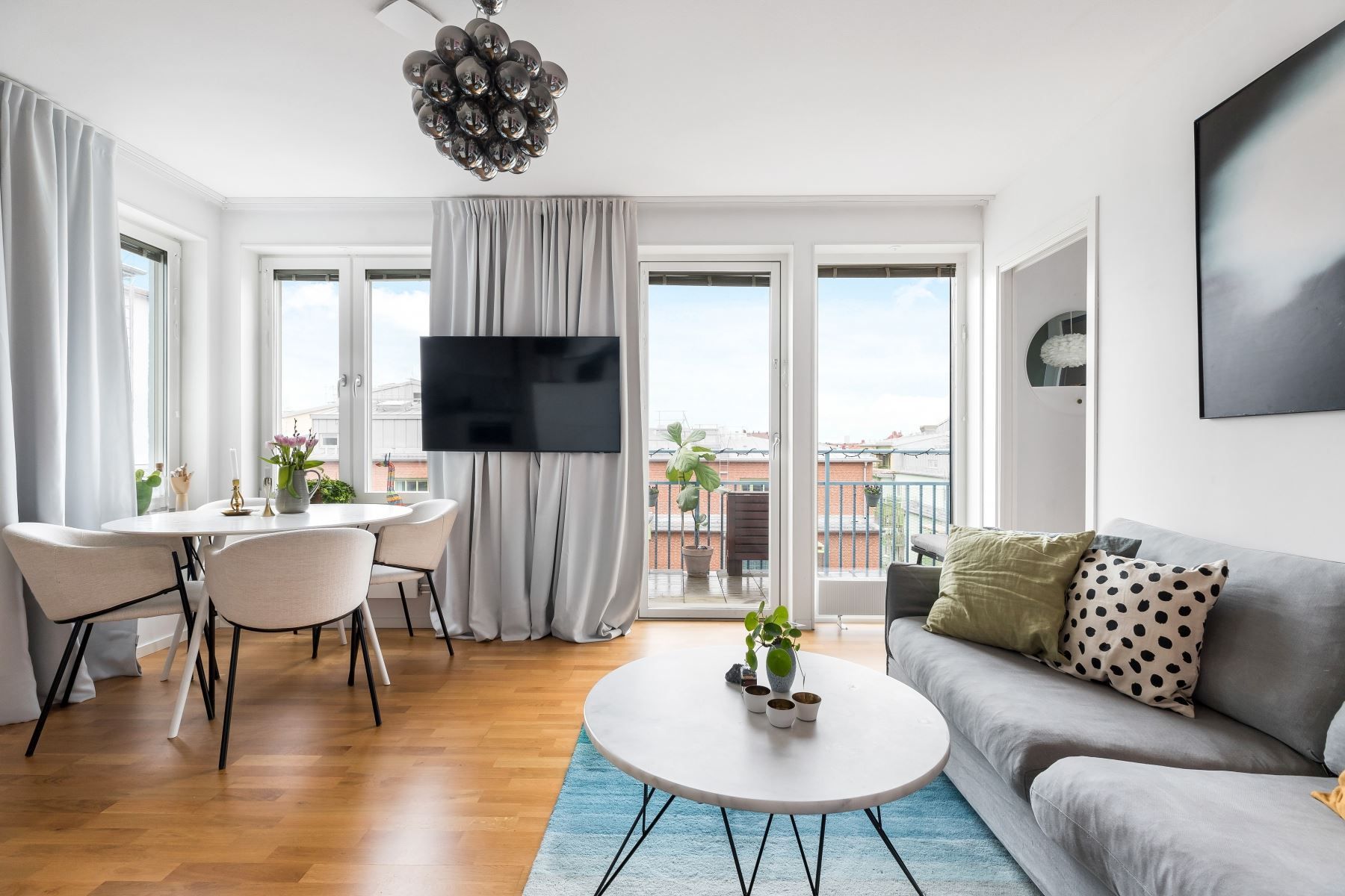 Högt beläget i huset med generösa fönsterpartier, erbjuder denna effektiva 2:a på 43 kvadratmeter en lysrik miljö. Boendet rymmer både ett sovrum och en väl tilltagen social yta perfekt för långa middagar och sällskap. Dessutom finns en balkong i sydvästläge där du kan njuta av eftermiddags- och kvällssolen.