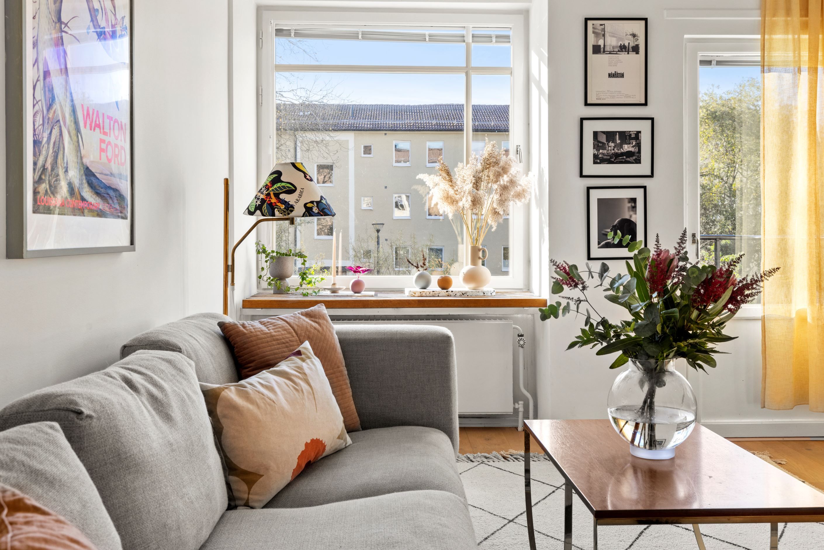 Bostaden som andas funkis i symbios med kvalité är genomtänkt och i utmärkt skick. Den nyrenoverade vackra balkongen vätter mot en lummig och grönskande innergård i västlig riktning. Lägenhetens andra del vätter mot ännu en mysig innergård med trädgårdsodlingar och uteplats. Lägenheten är perfekt både för den mindre och större familjen och belägen i ett lugnt område.