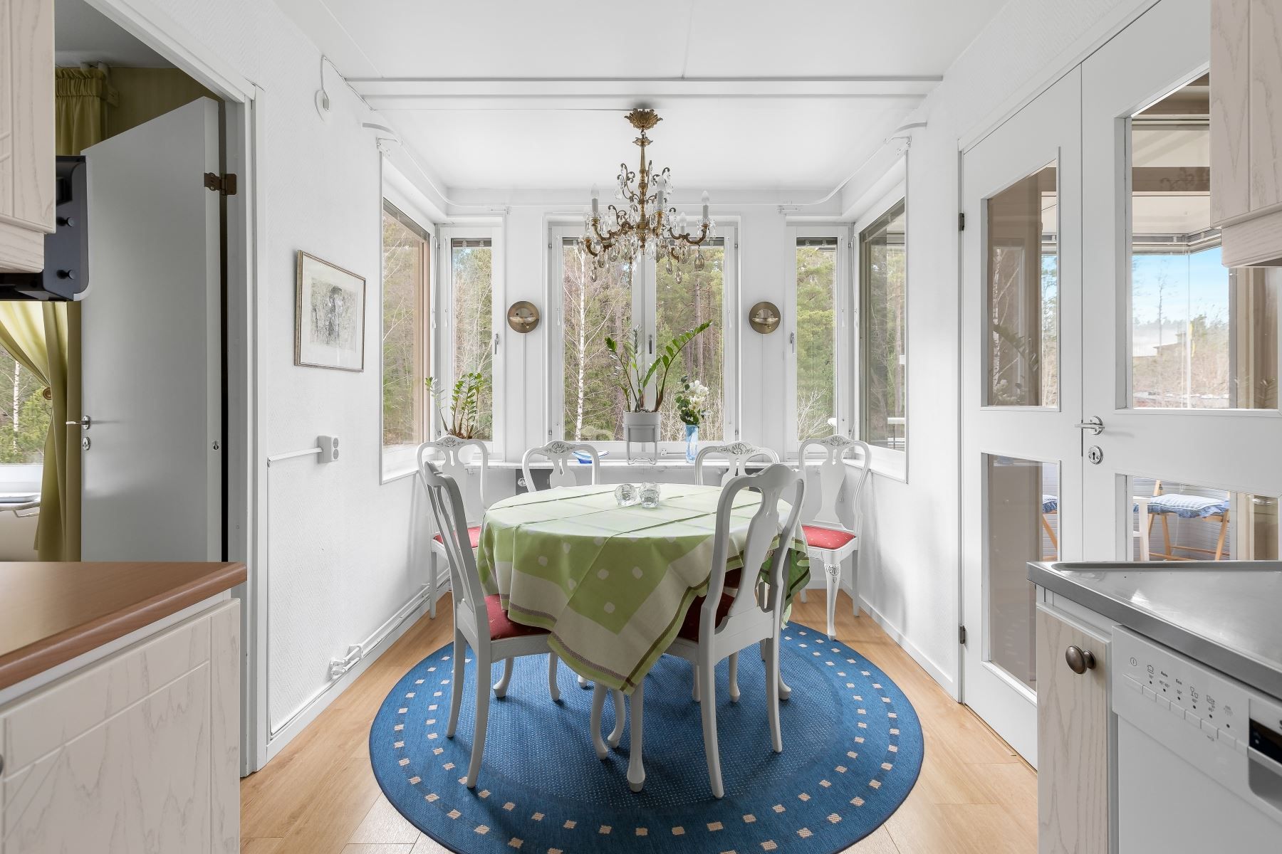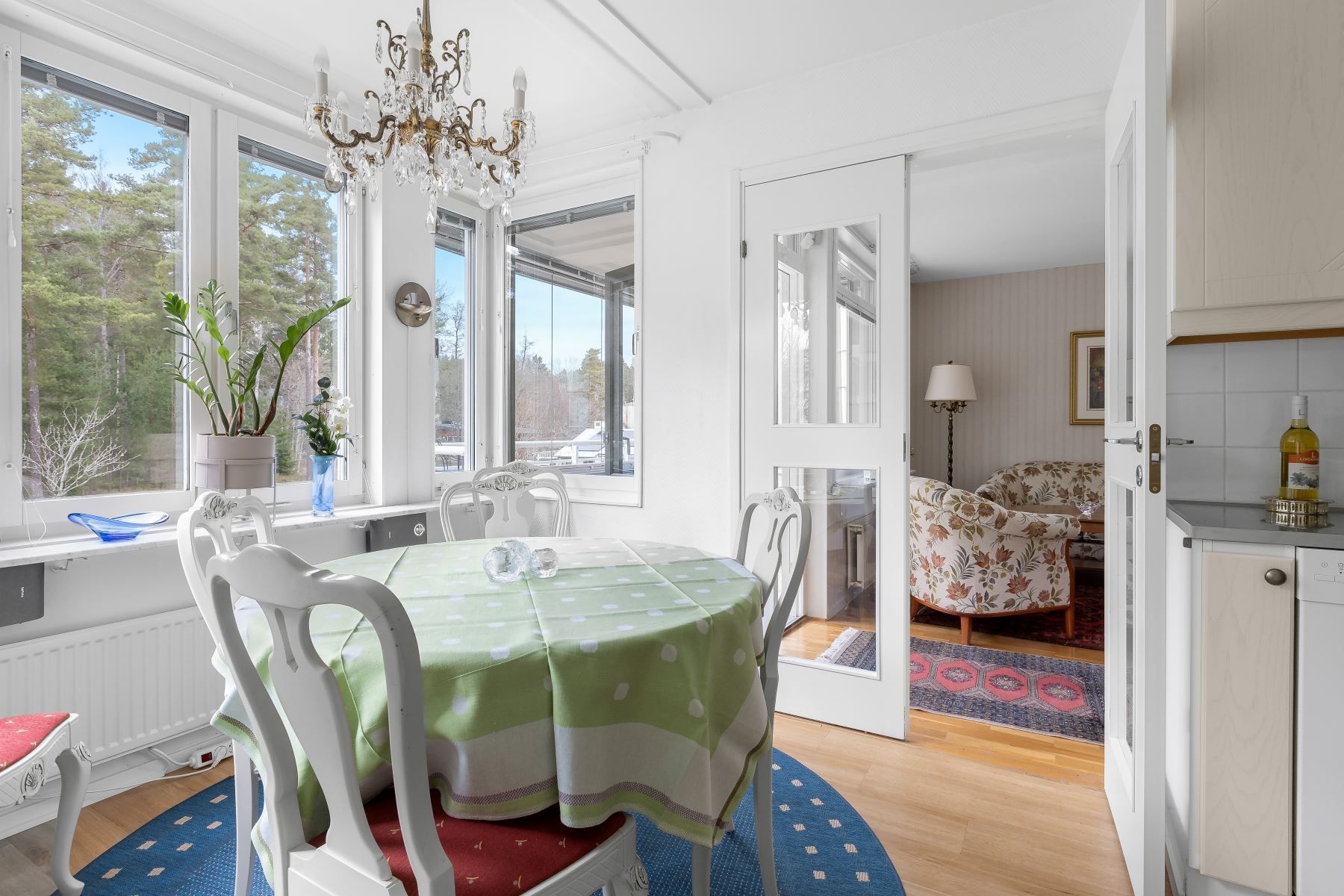 Täby centrum med sitt rika utbud av service och butiker finns inom bekvämt gångavstånd, och närtrafiksbussen stannar precis vid området för enkel och smidig kommunikation. För den som vill ta sig längre bort finns flera bussar som går mot Täby C, Danderyds sjukhus och Vallentuna, samt Roslagsbanan som ligger bara 10 minuters promenad bort.