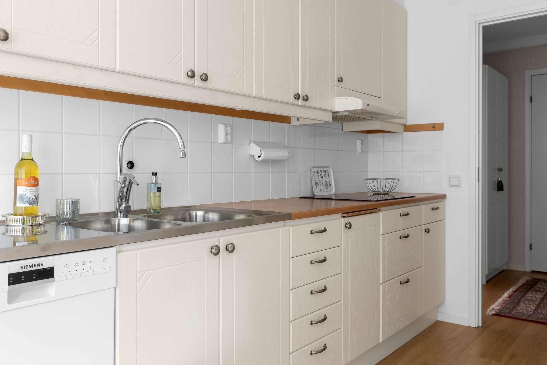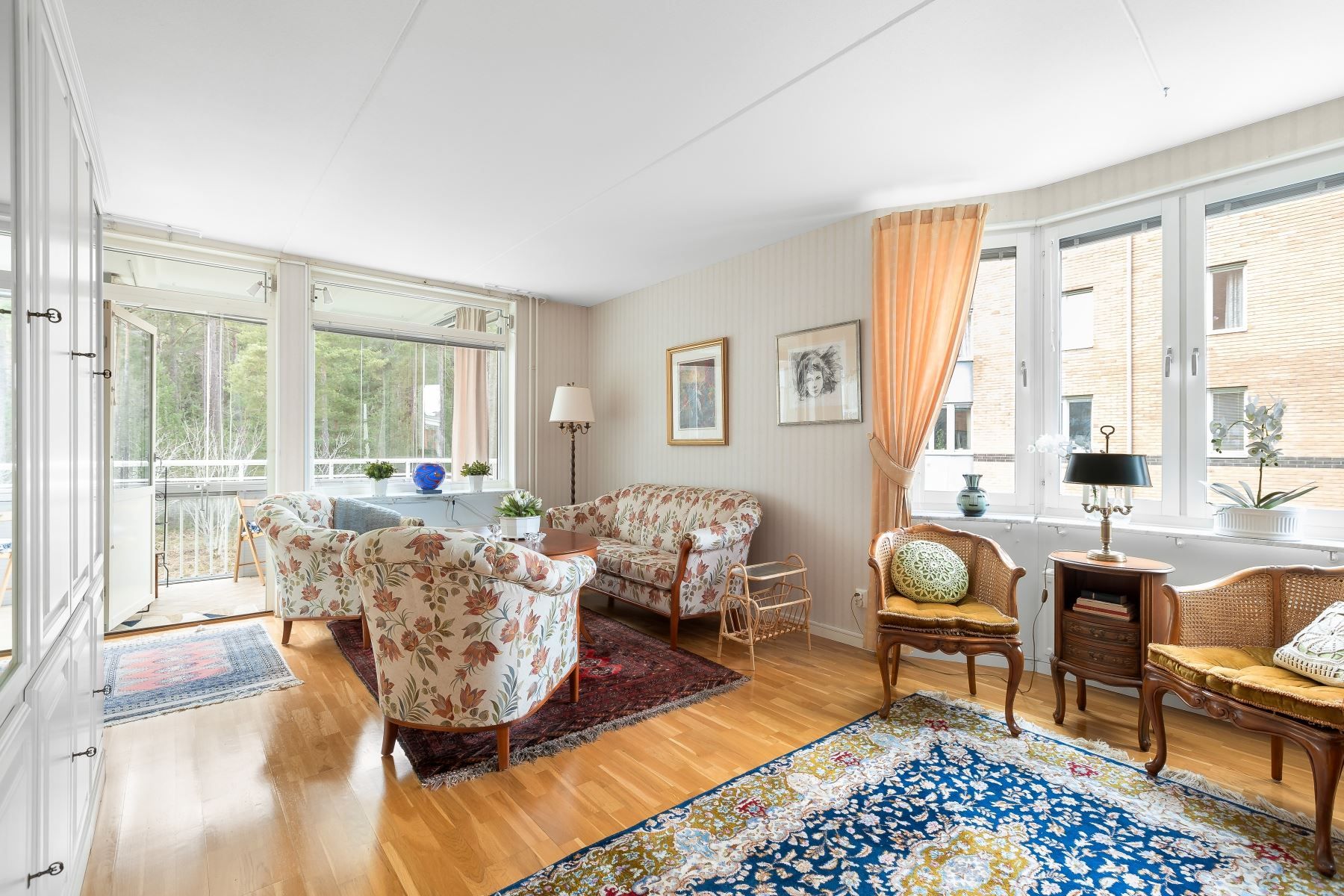 Denna gavellägenhet om 3 rum och kök erbjuder en öppen och ljus planlösning, där varje detalj är noggrant utformad för att skapa en harmonisk atmosfär. Med burspråk både i köket och vardagsrummet får du en extra dimension av ljus och rymd. Från den stora balkongen kan du njuta av en fri utsikt över boulebana, skogsparti och innergård med naturen omkring dig, vilket ger en känsla av lugn och avkoppling mitt i staden på landet Täby.