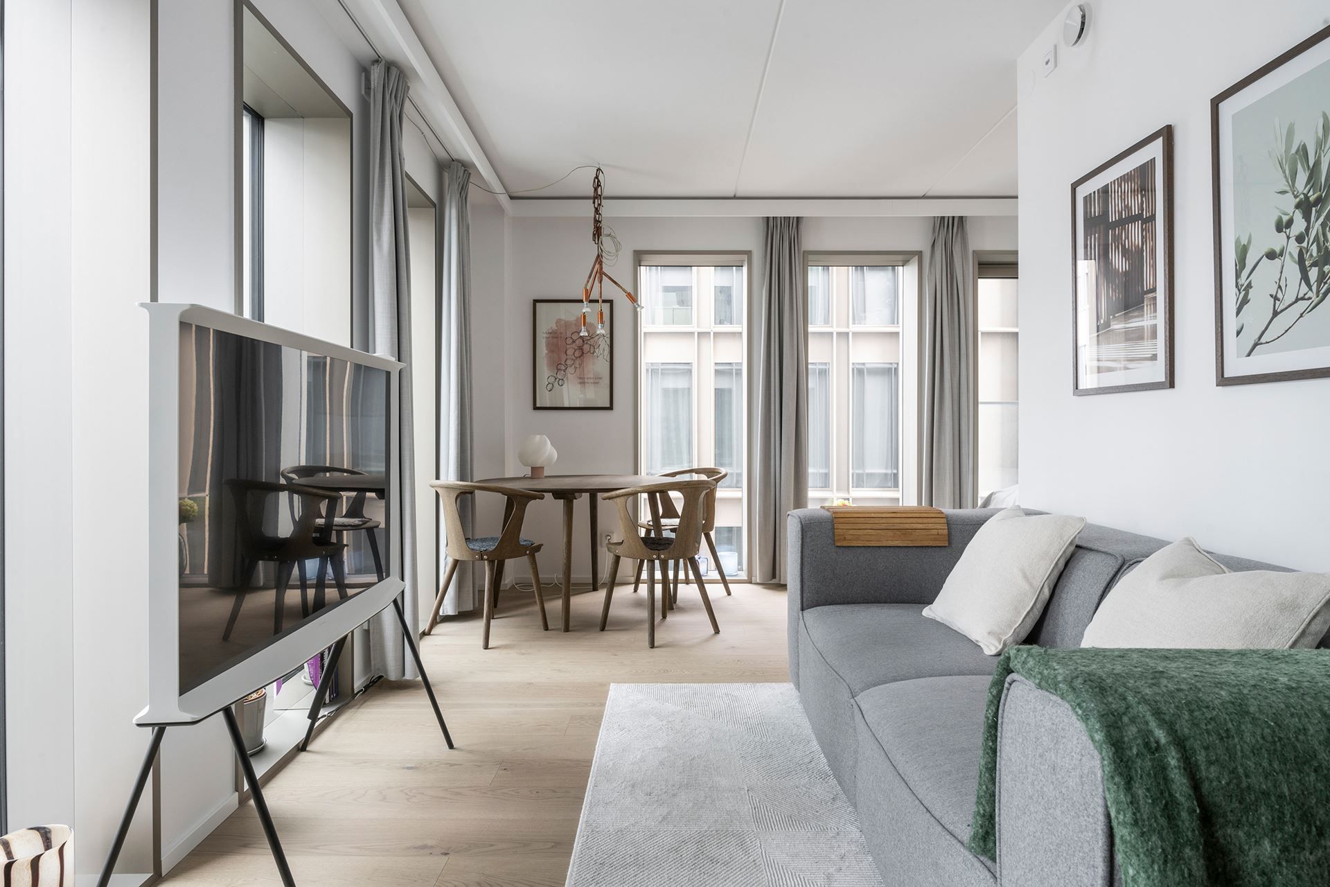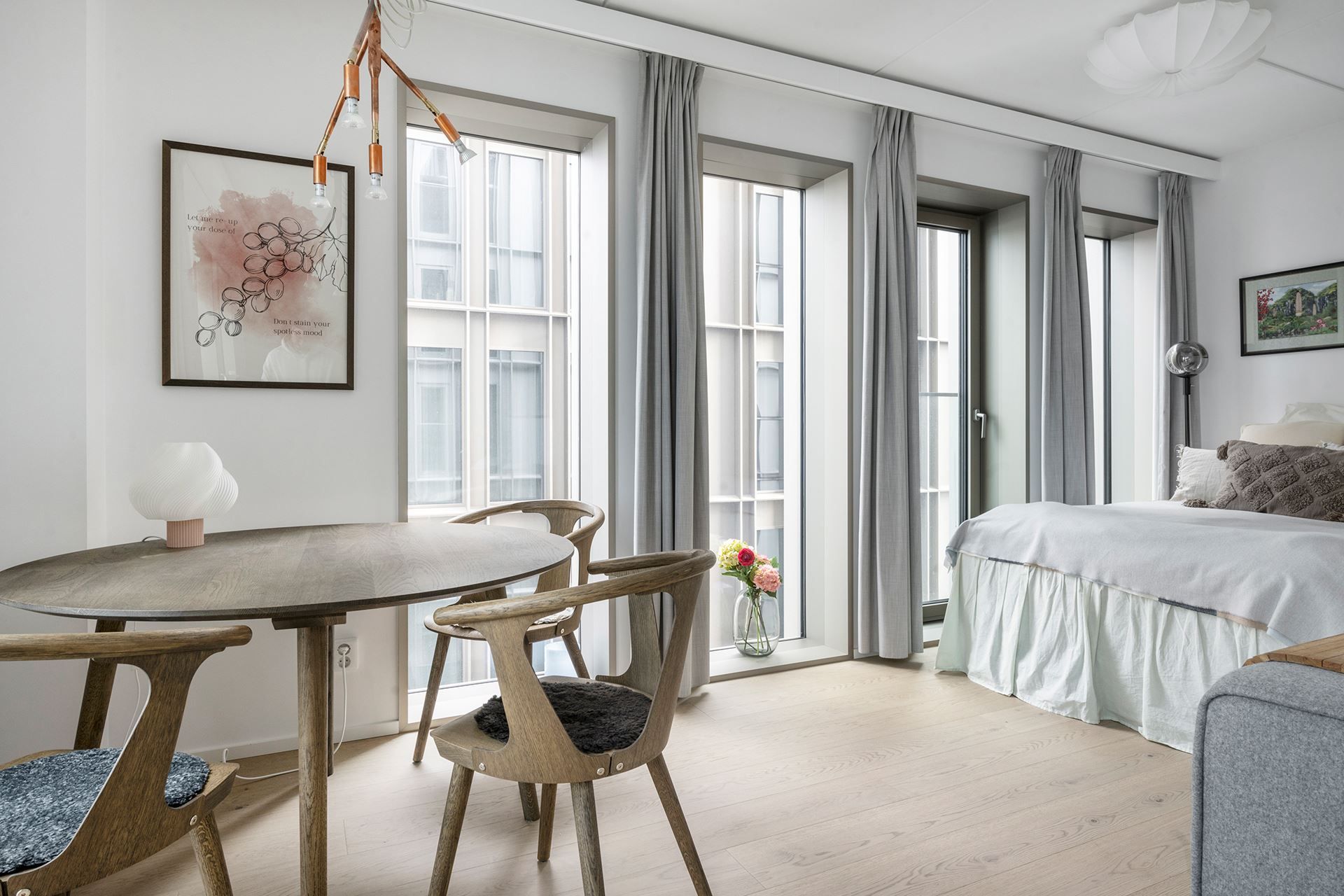 Här bor eller äger ni en bostad med bästa läget i området, där Norra stationsparken öppnar upp sig i syd/väst. Denna fantastiska hörnbostad ligger i den första fastigheten i två väderstreck mot innergård och Nini Kronbergs gata, med direkt närhet till blivande park och torg.