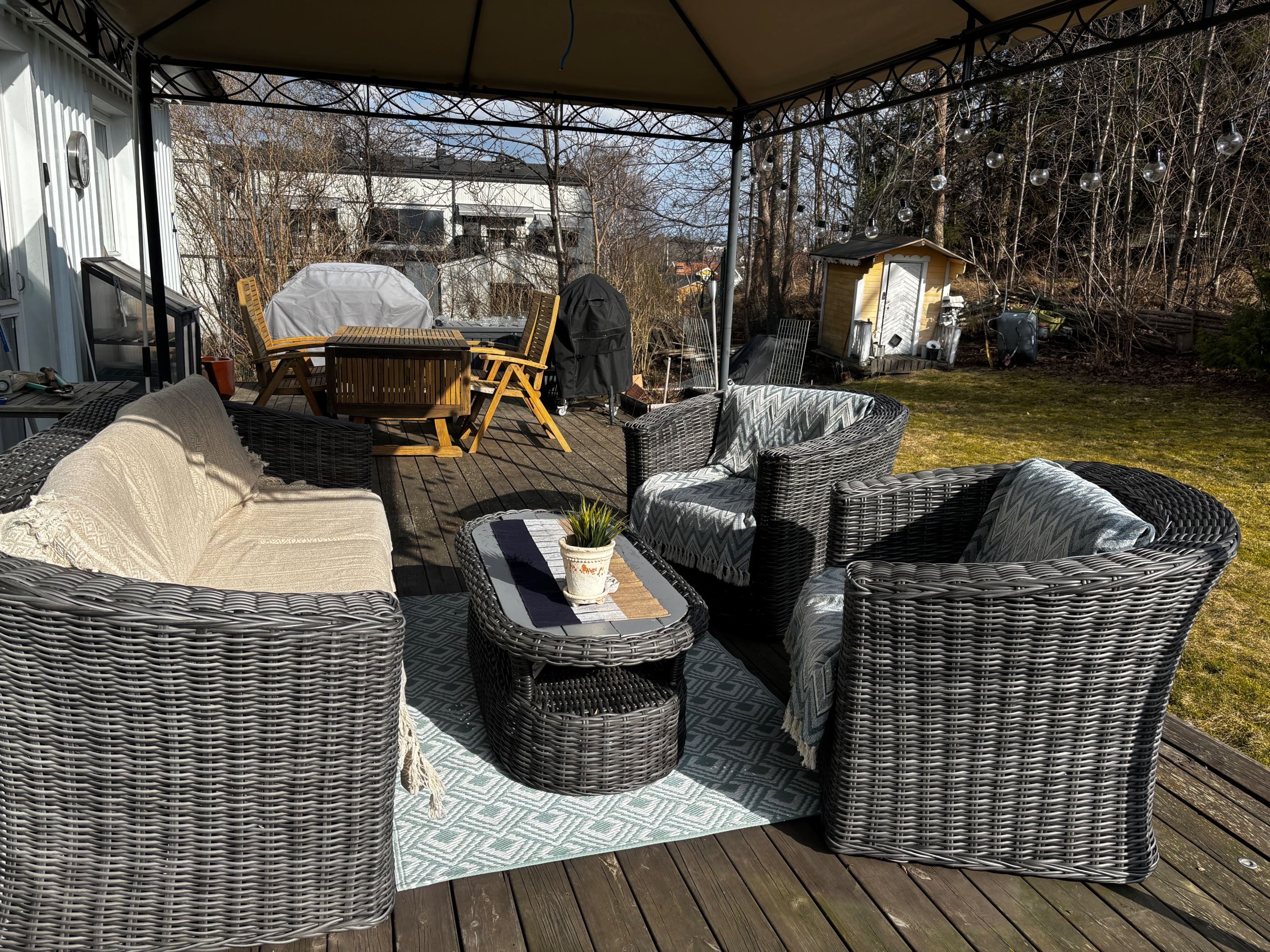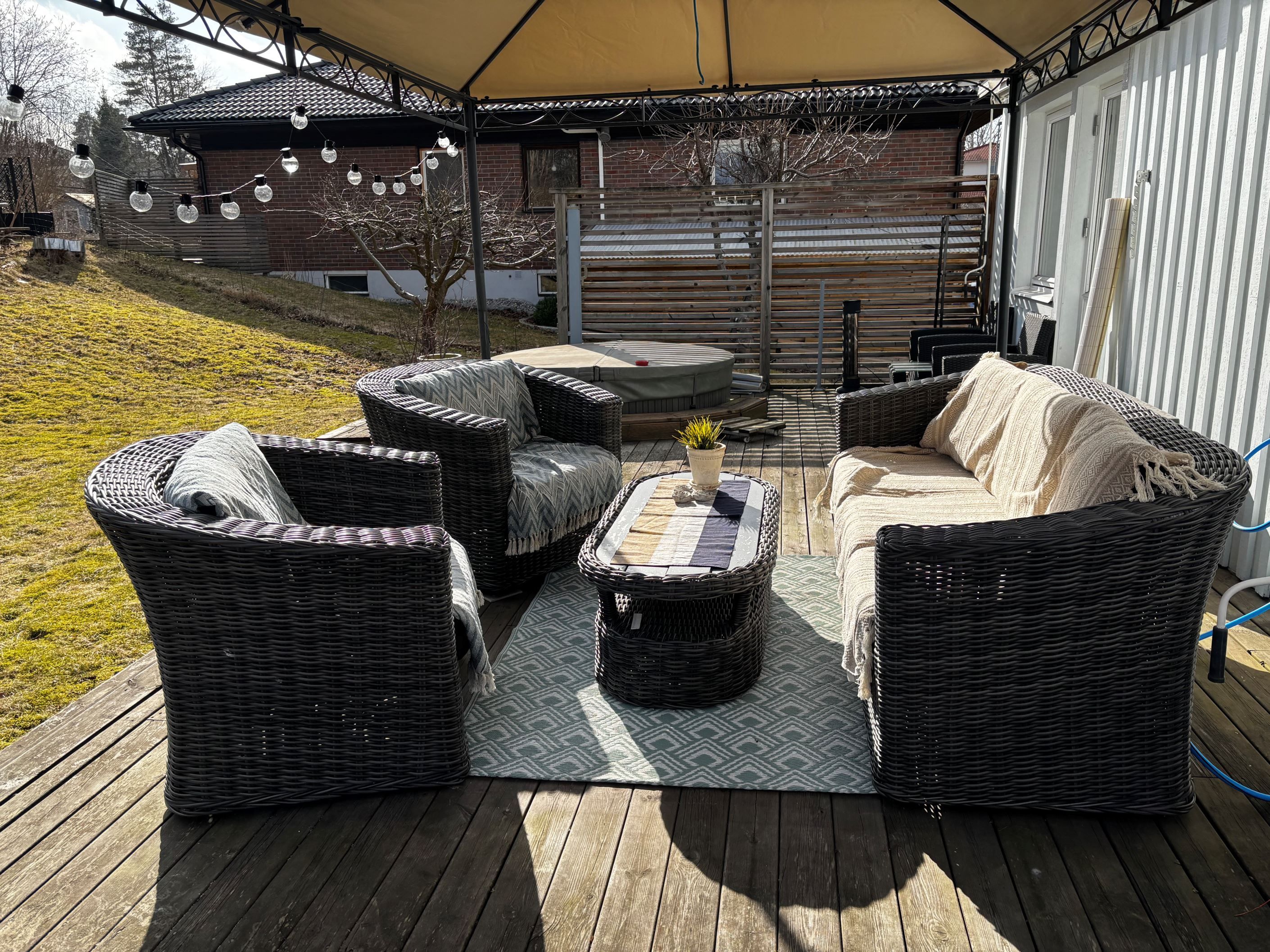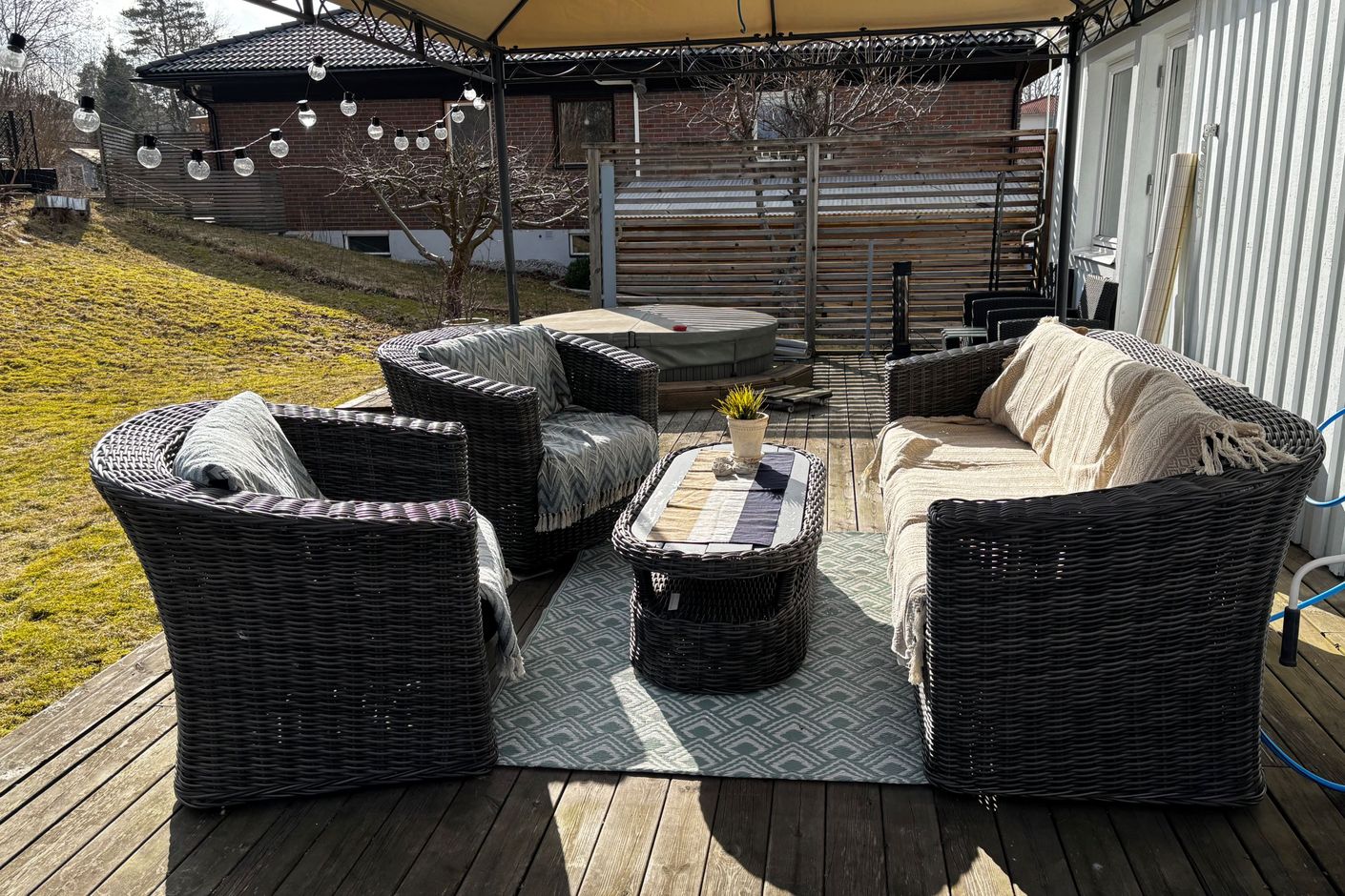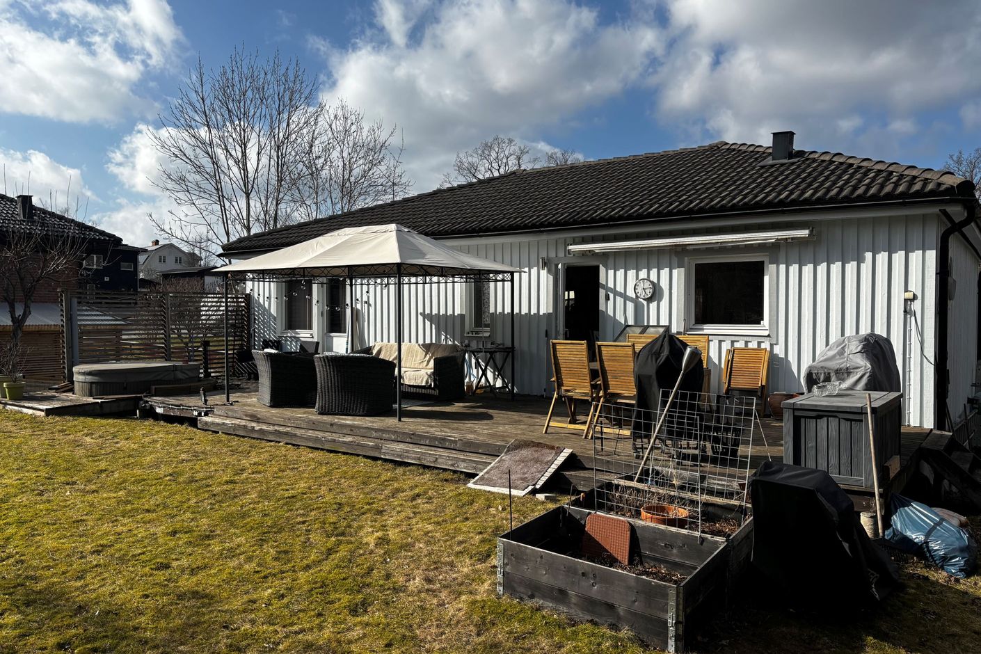 Här erbjuds totalt 135 + 65 kvm med generösa ytor för både vardagsliv och sociala tillställningar. Den soliga tomten är en riktig oas med en stor trälagd uteplats där du kan njuta av långa sommardagar. Här finns gott om plats för både matgrupp och loungehörna samt ett härligt spabad som förhöjer känslan av vardagslyx.