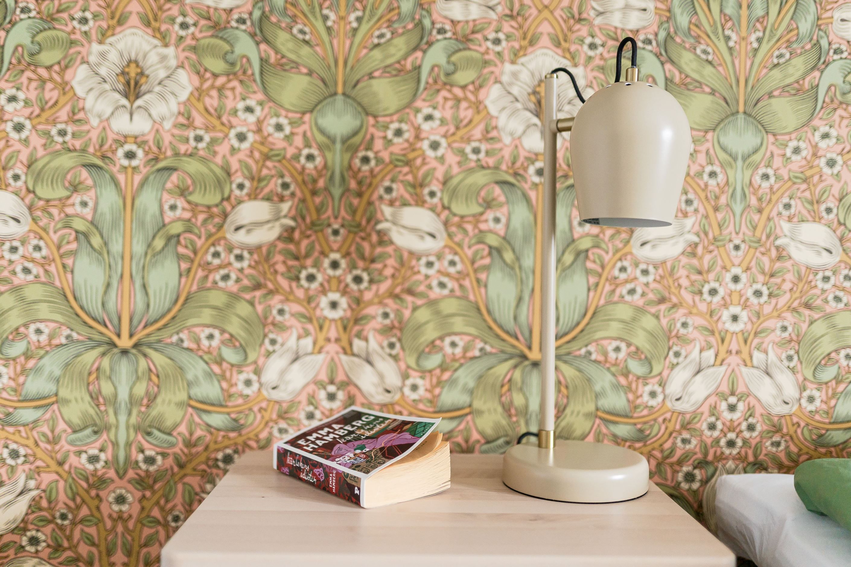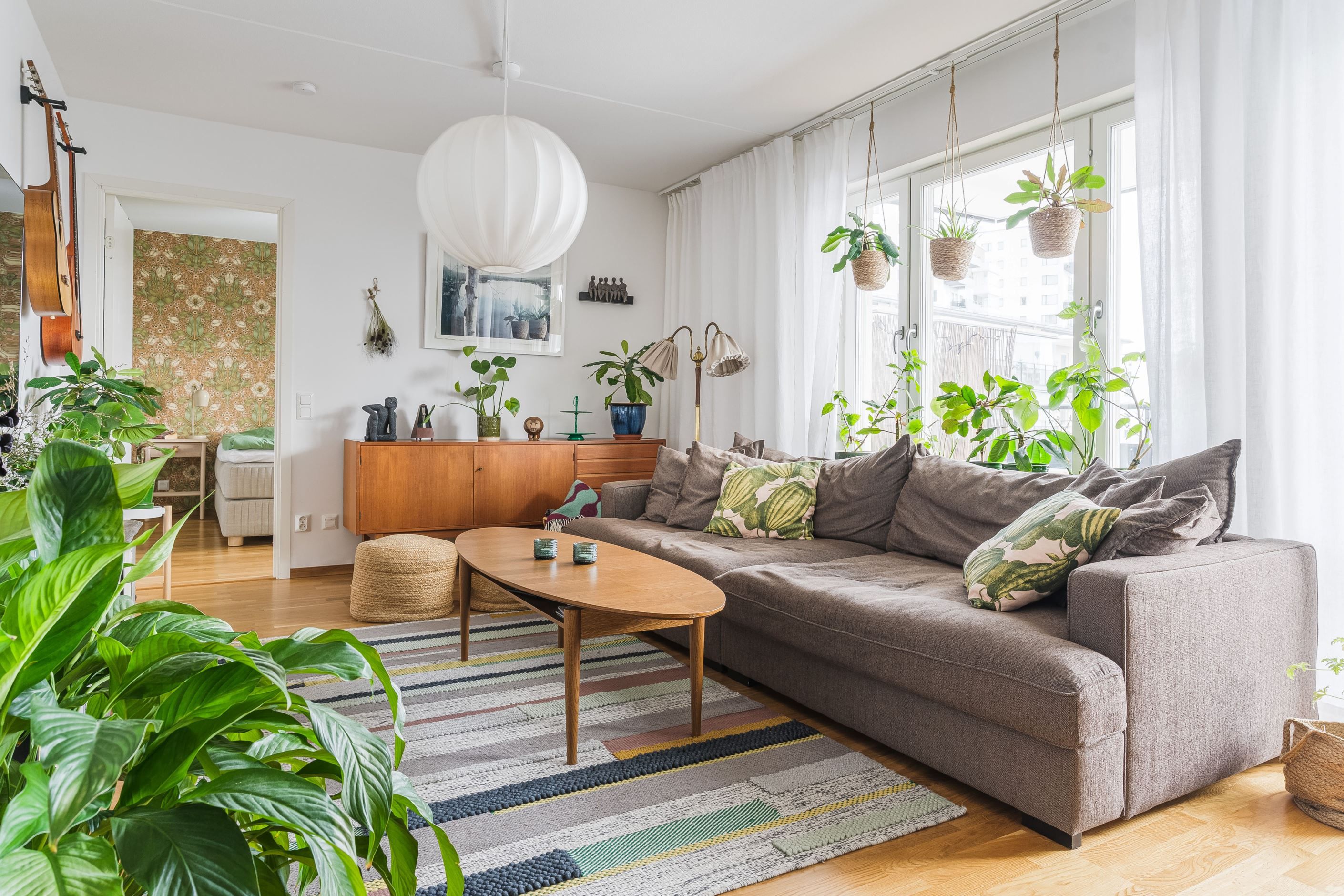 Det här är en bostad om 3 rum och kök, på 73 kvm, där materialval och färgsättning skapar ett hem som känns varmt, levande och genomtänkt. Genomgående oljade ekgolv, harmoniskt målade väggar och noggrant utvalda tapeter ger karaktär utan att ta över.