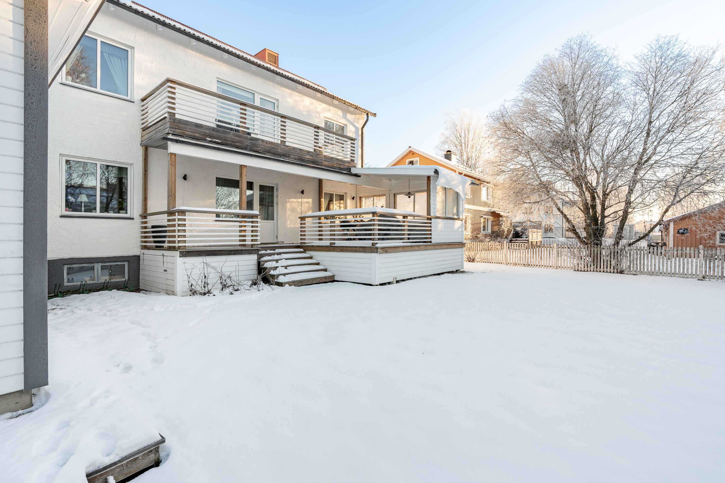 Vill man koppla av i solen om somrarna erbjuder husets baksida er en rymlig altan där familj, släkt och vänner stålar ikapp med solen under de sociala tillställningarna.