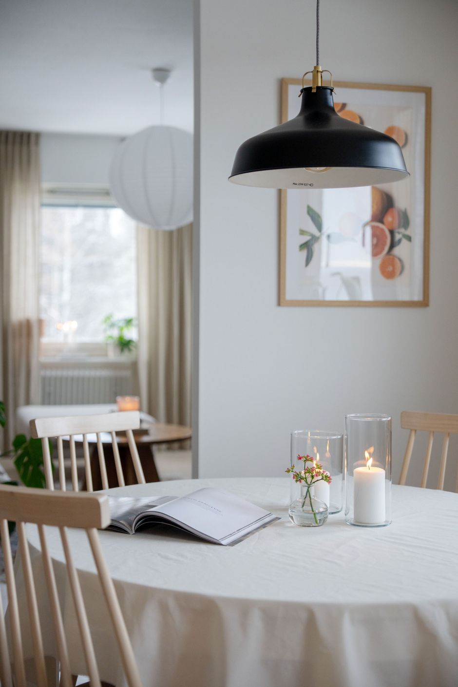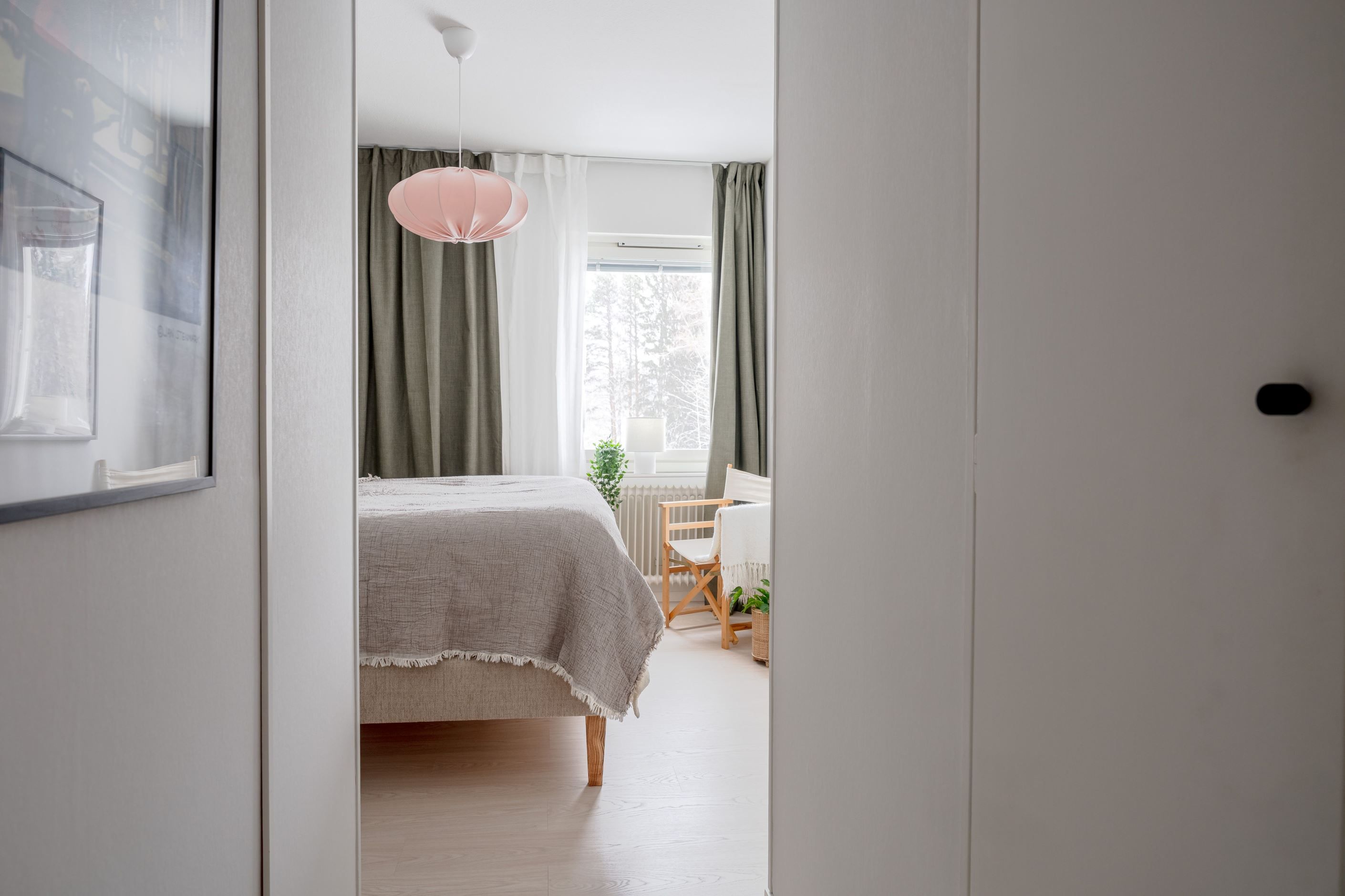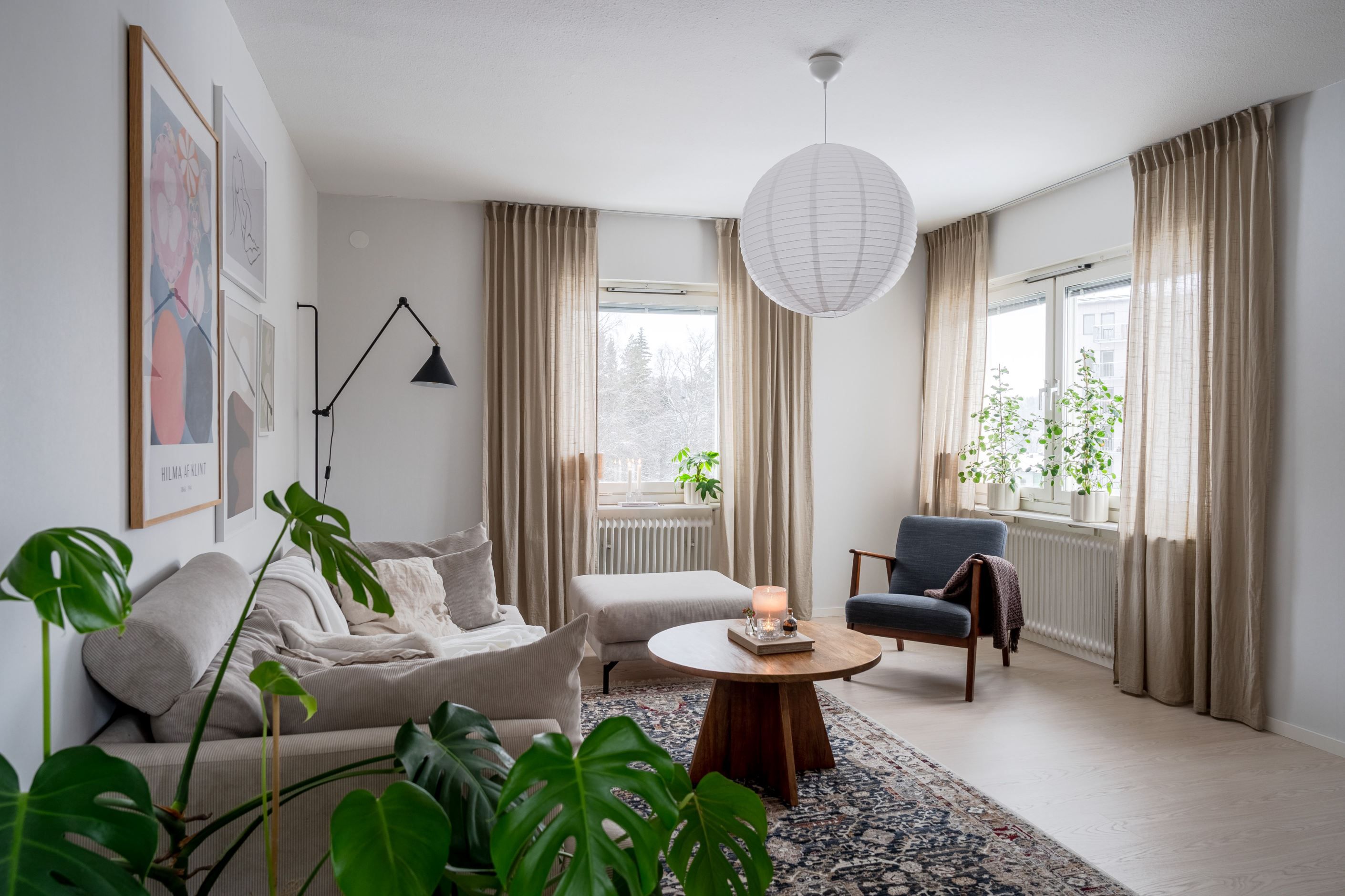 Vardagsrummet ligger i direkt anslutning till köket och präglas av ett härligt ljusinsläpp från flera fönster. Här bor du insynsskyddat med utsikt mot både skogspartier och Skellefteå stad - en ovanlig kombination som skapar en känsla av lugn mitt i vardagen.