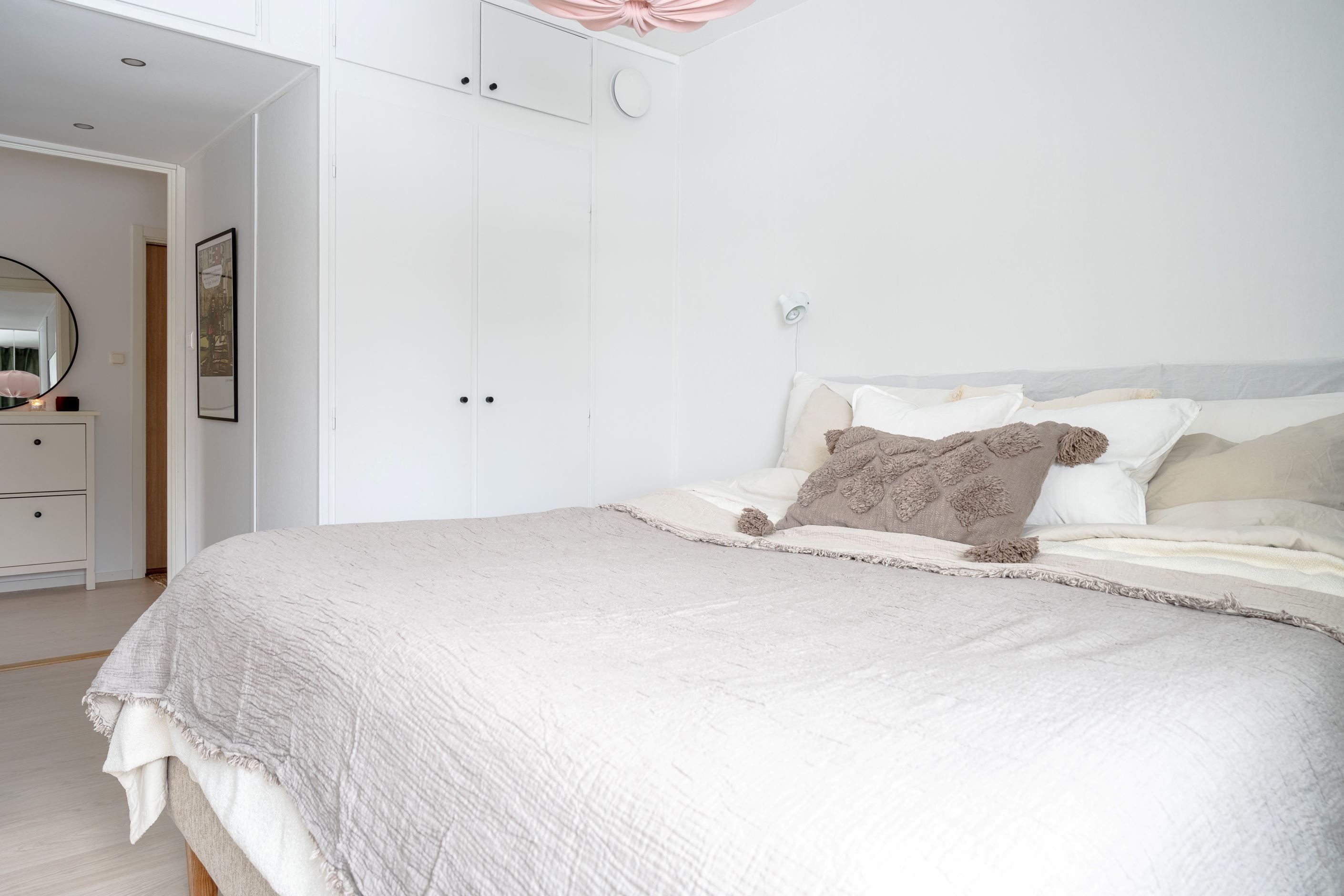 Bostaden erbjuder två välplanerade och generösa sovrum, båda med inbyggda garderober som ger utmärkta förvaringsmöjligheter. Ett hem som är lika praktiskt som det är estetiskt tilltalande.