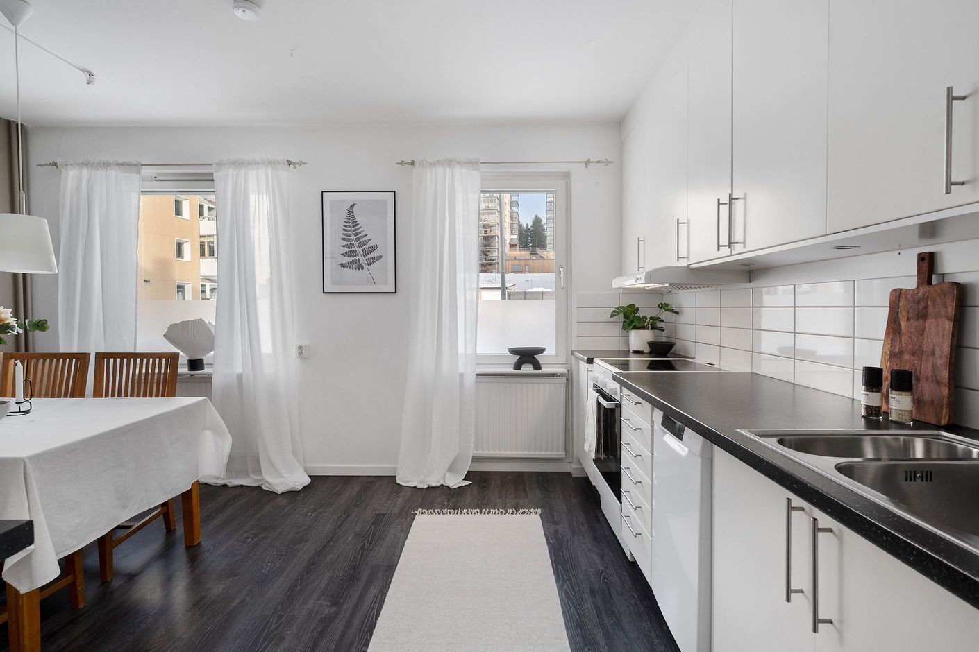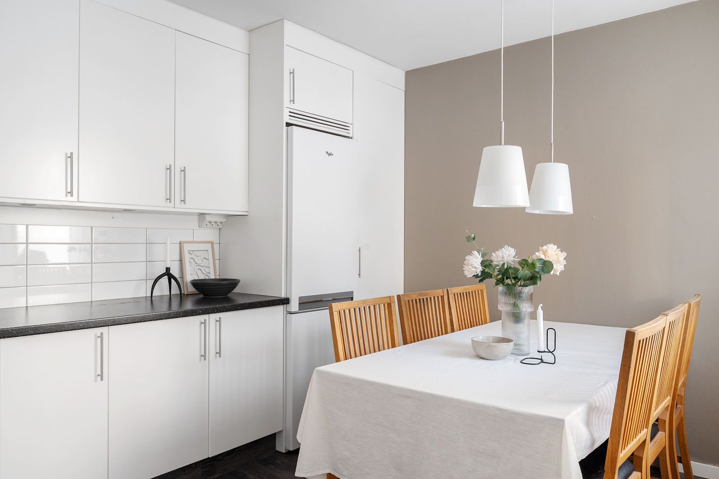 Köket är hemmets naturliga samlingsplats - generöst i storlek med plats för större matgrupp och sociala middagar. De öppna ytorna tillsammans med det fina ljusinsläppet skapar en inbjudande atmosfär där det är lätt att trivas.