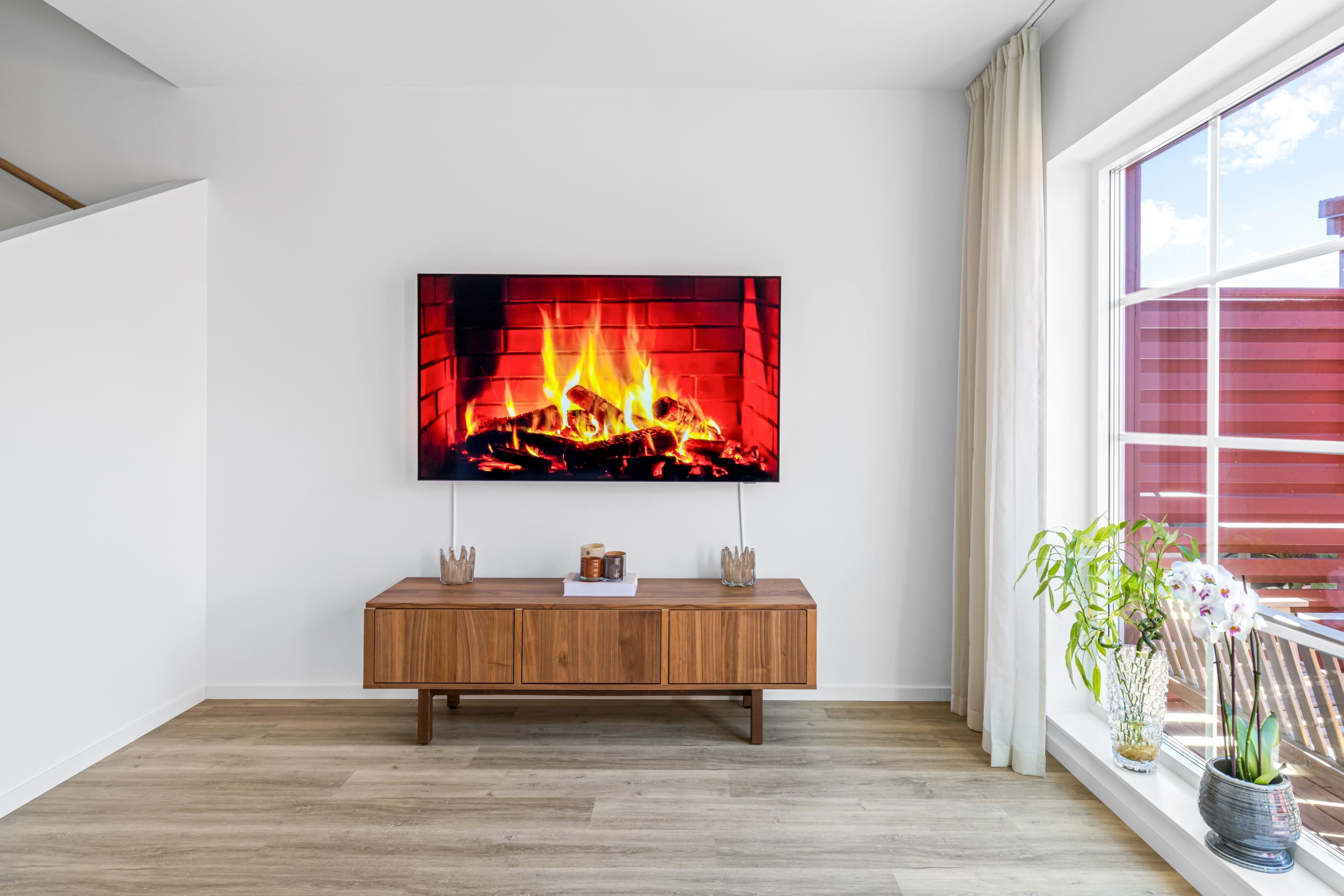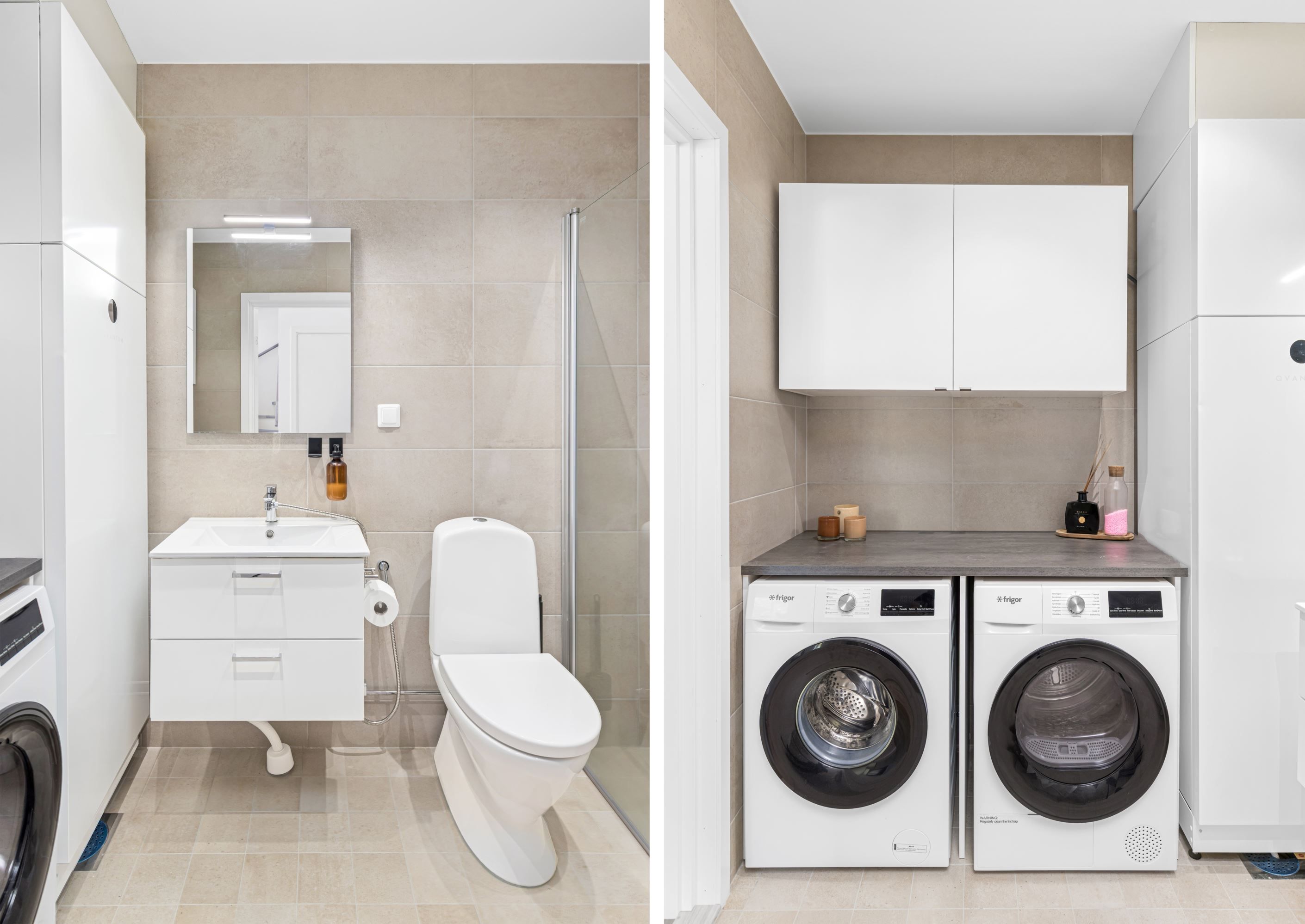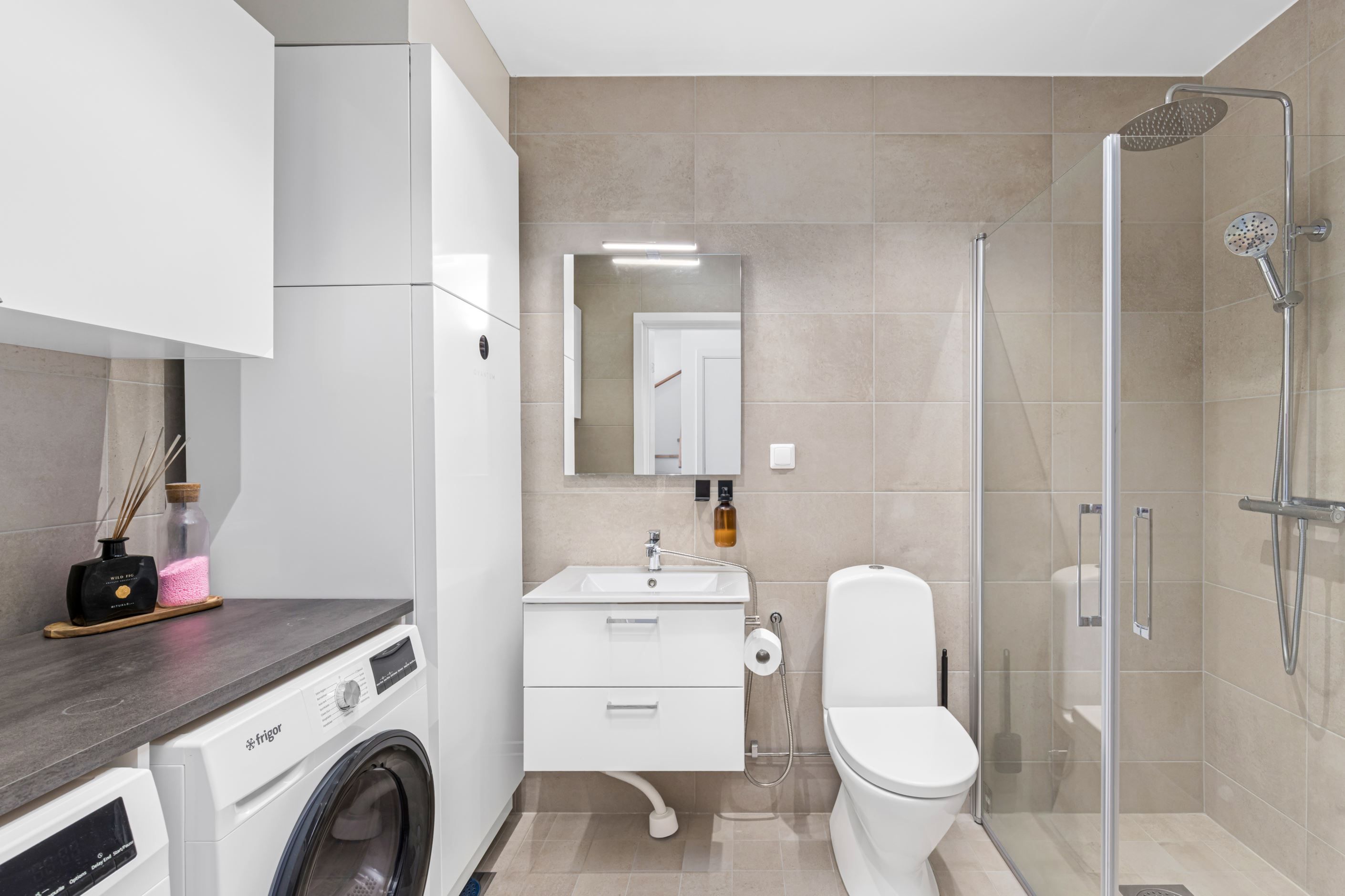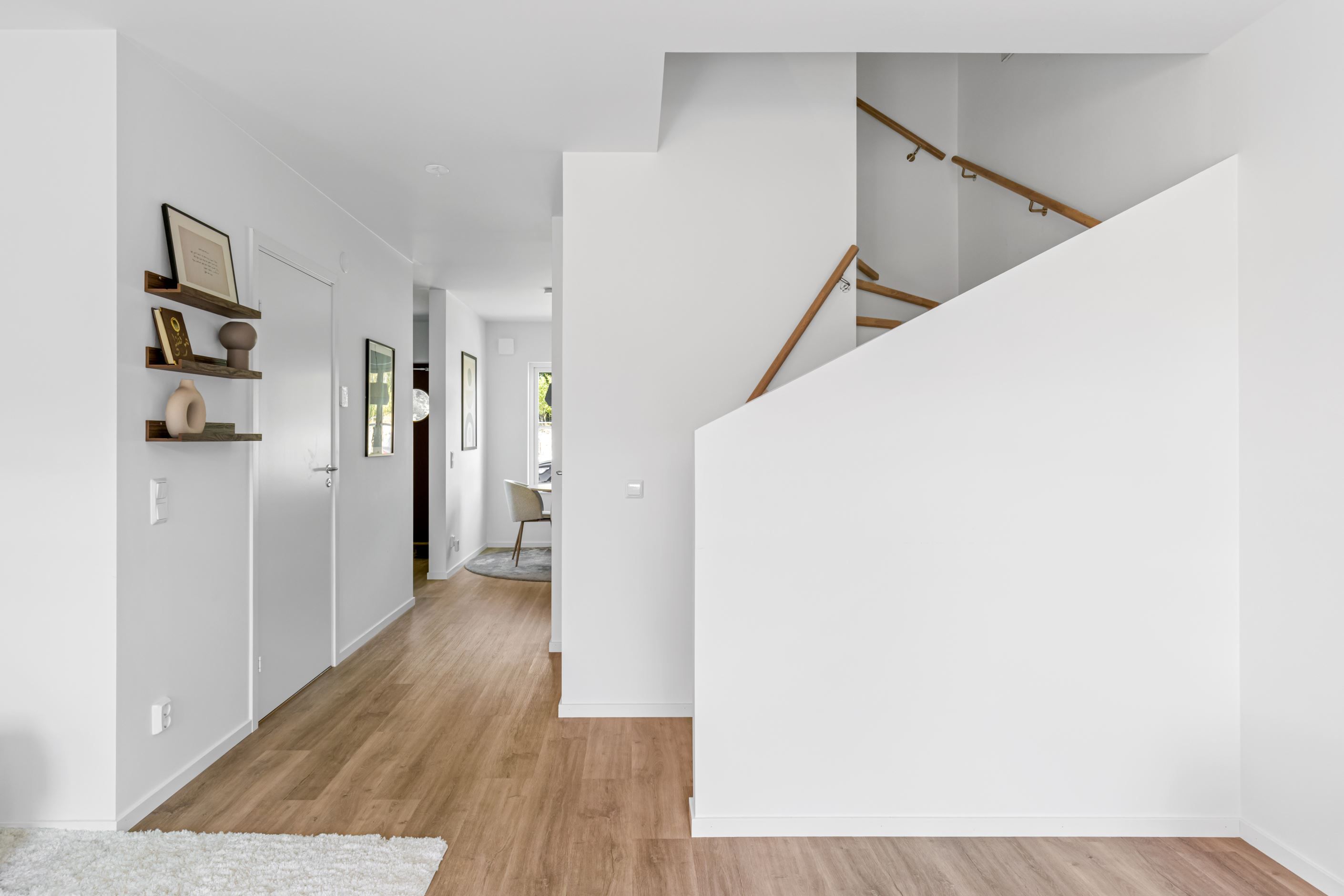 Materialvalen är noggrant utvalda för att skapa en harmonisk och hållbar inredning med produkter från välkända varumärken som står sig över tid. Bostaden har låga driftskostnader tack vare en effektiv frånluftsvärmepump med vattenburen värme, golvvärme på entréplan och element på övre plan.