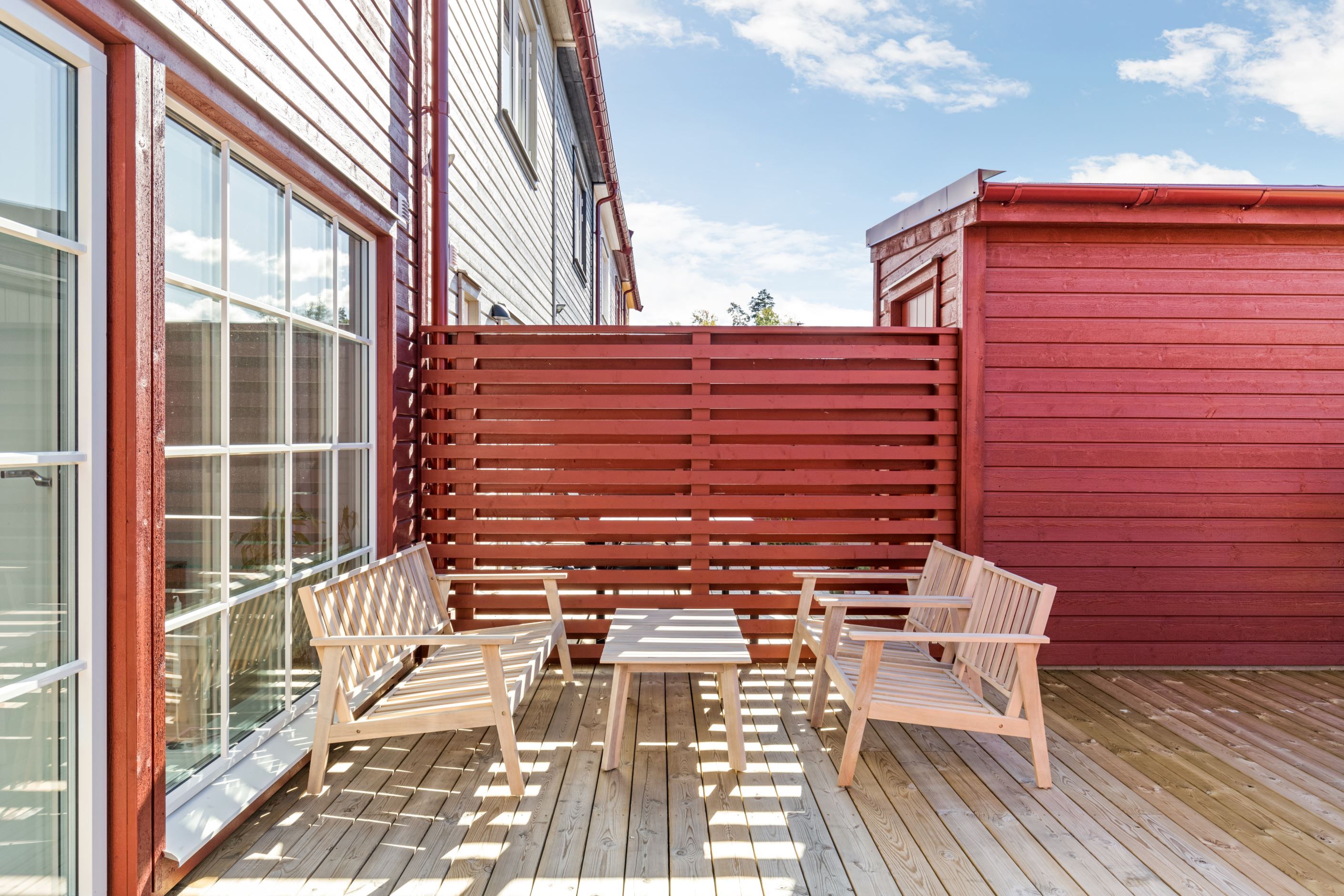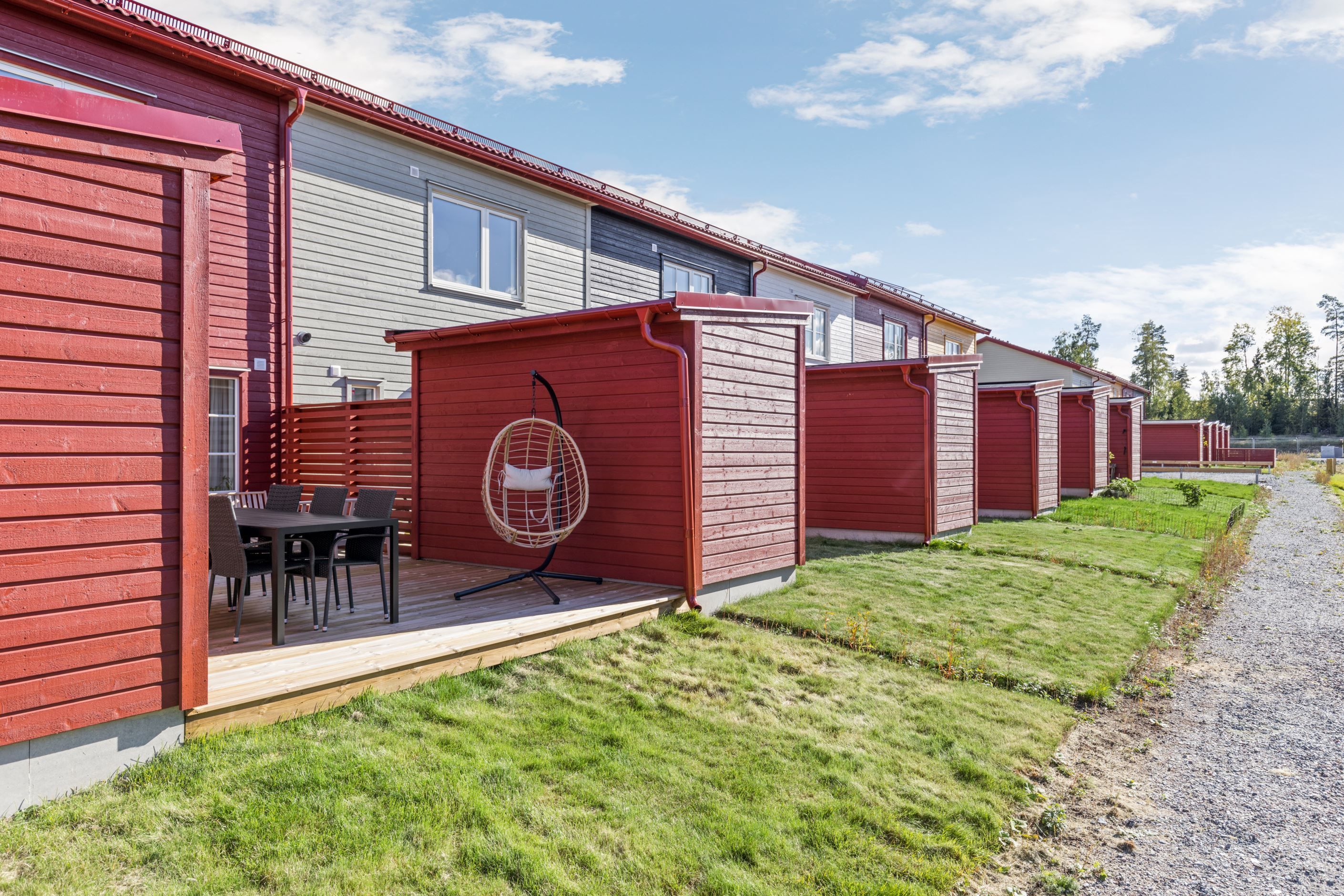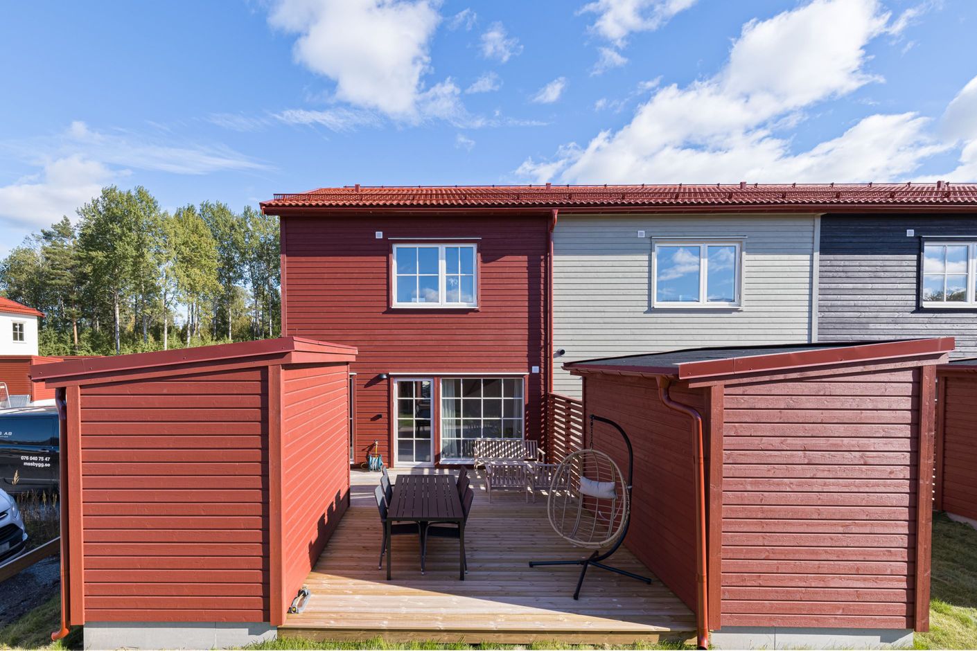 Utanför huset mot trädgården väntar en egen stor härlig uteplats – perfekt för lata sommardagar – samt två parkeringsplatser varav den ena med laddstolpe för elbil som förenklar vardagen. I anslutning till altanen finns ett praktiskt förråd och en nyttjanderättstomt för den som vill odla, leka eller bara njuta av grönskan.