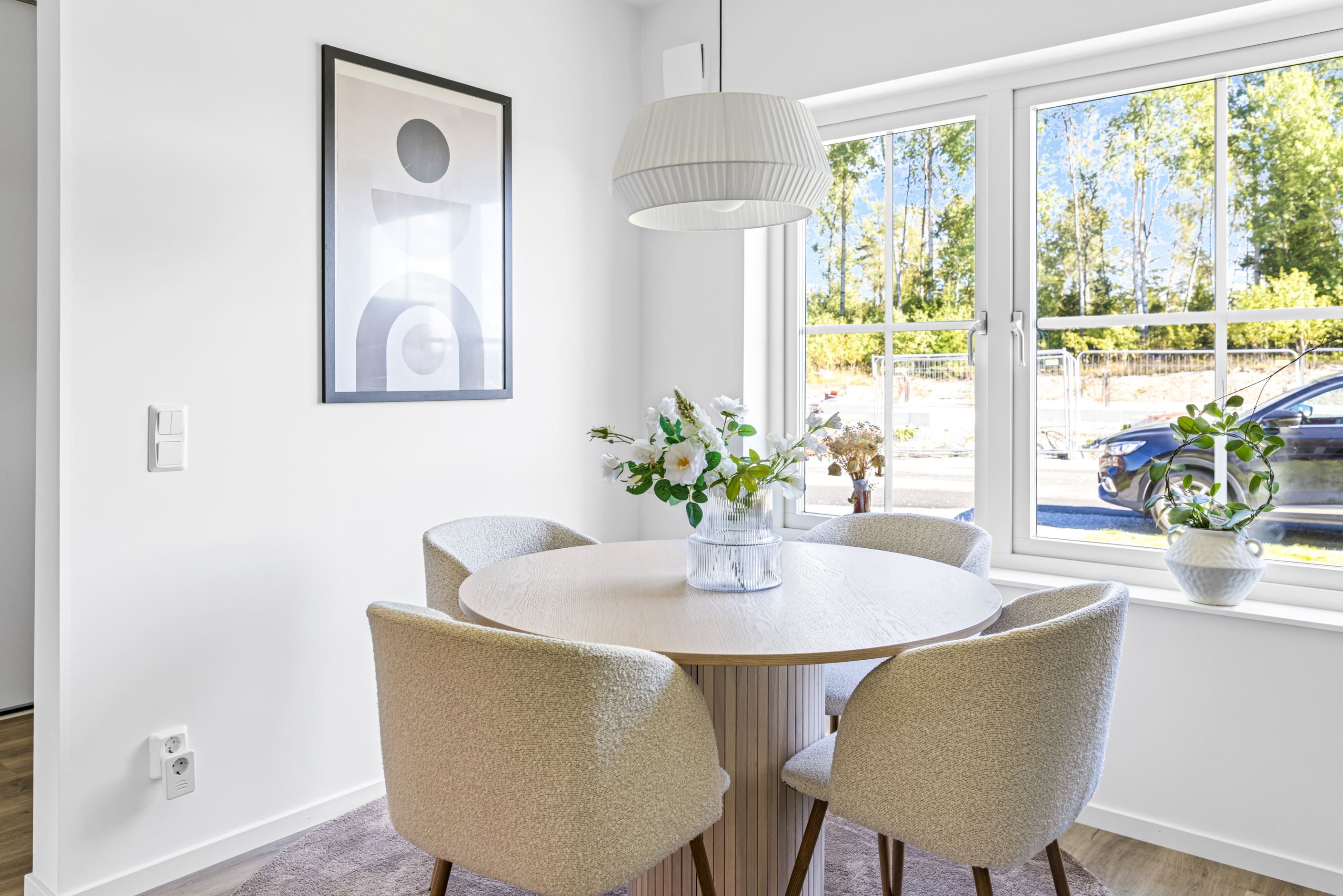 Nästan nytt gavelradhus med attraktivt läge – ett modernt hem med genomtänkt planlösning och tidlös design. Här bor du på 108 kvm fördelat på två plan med ljusa och luftiga sällskapsytor på entréplan och tre rofyllda sovrum på övre plan.